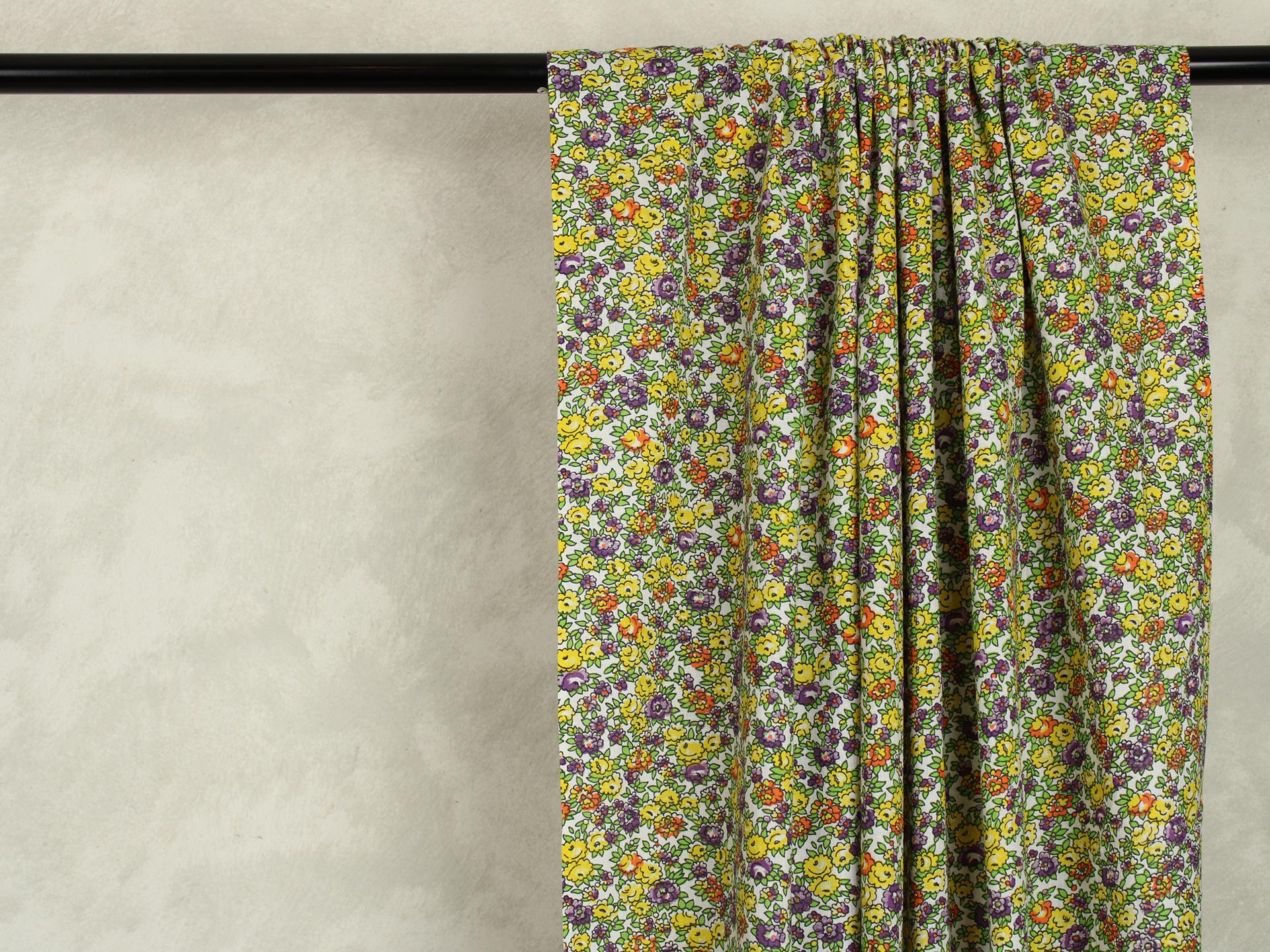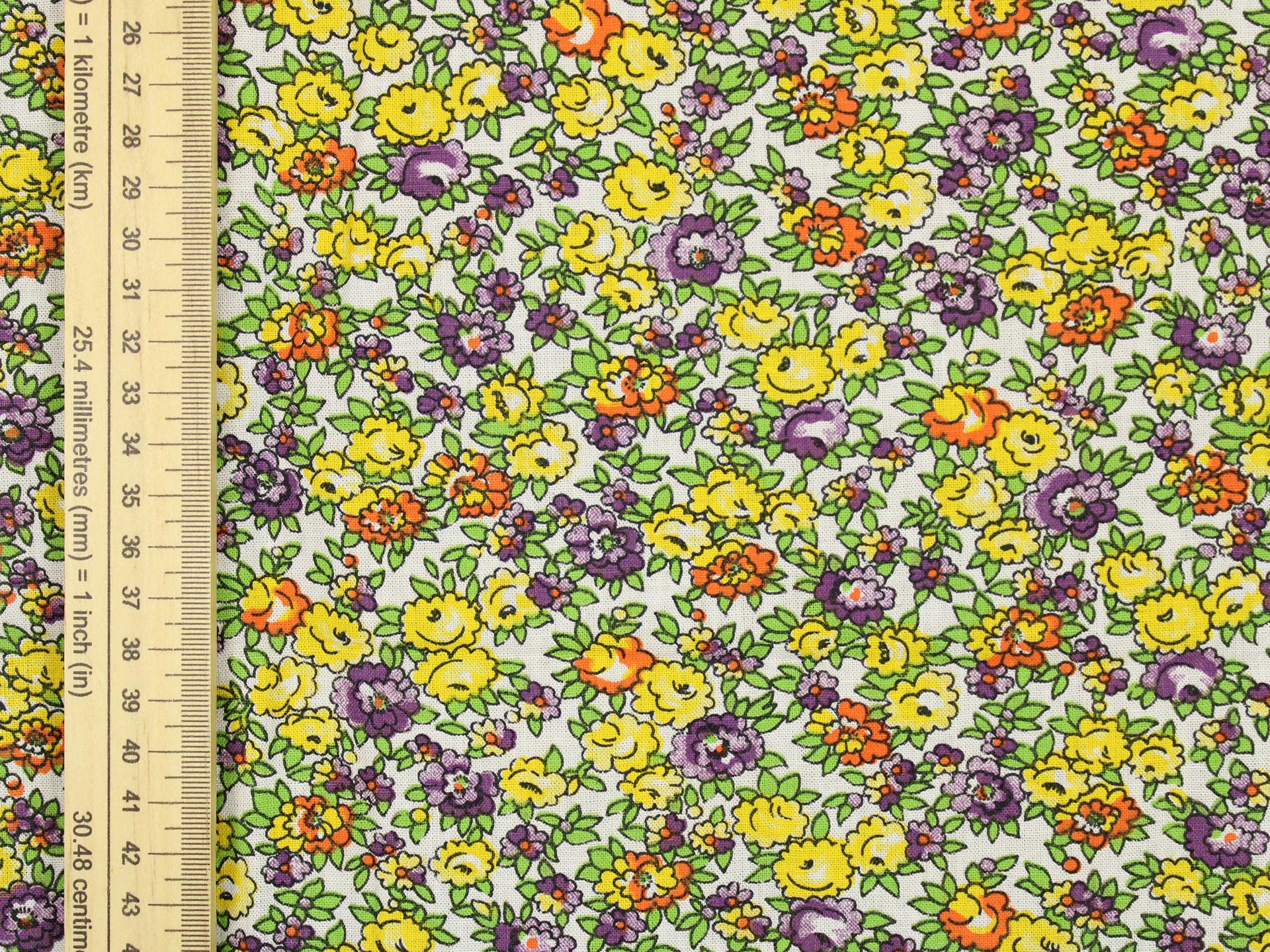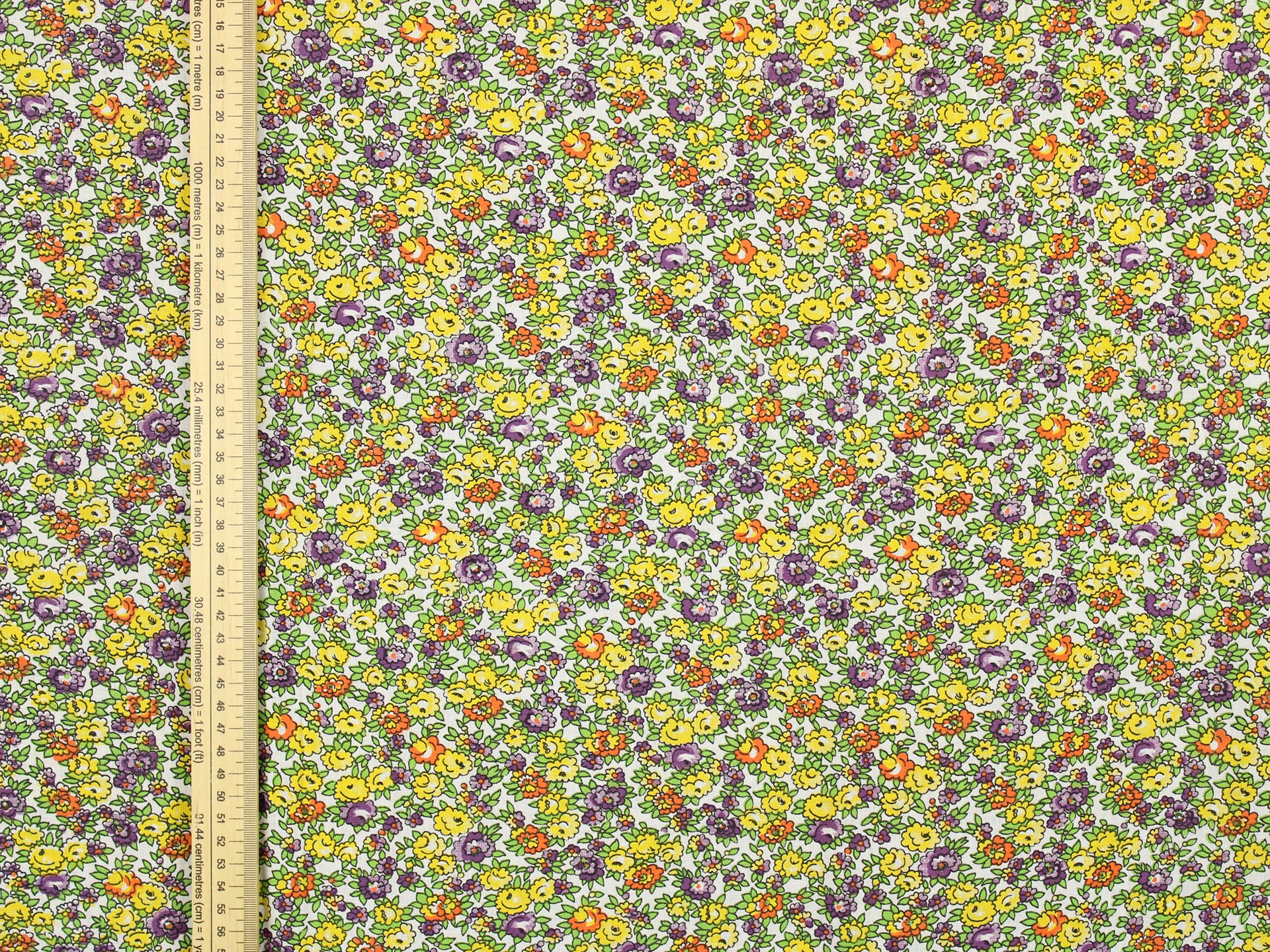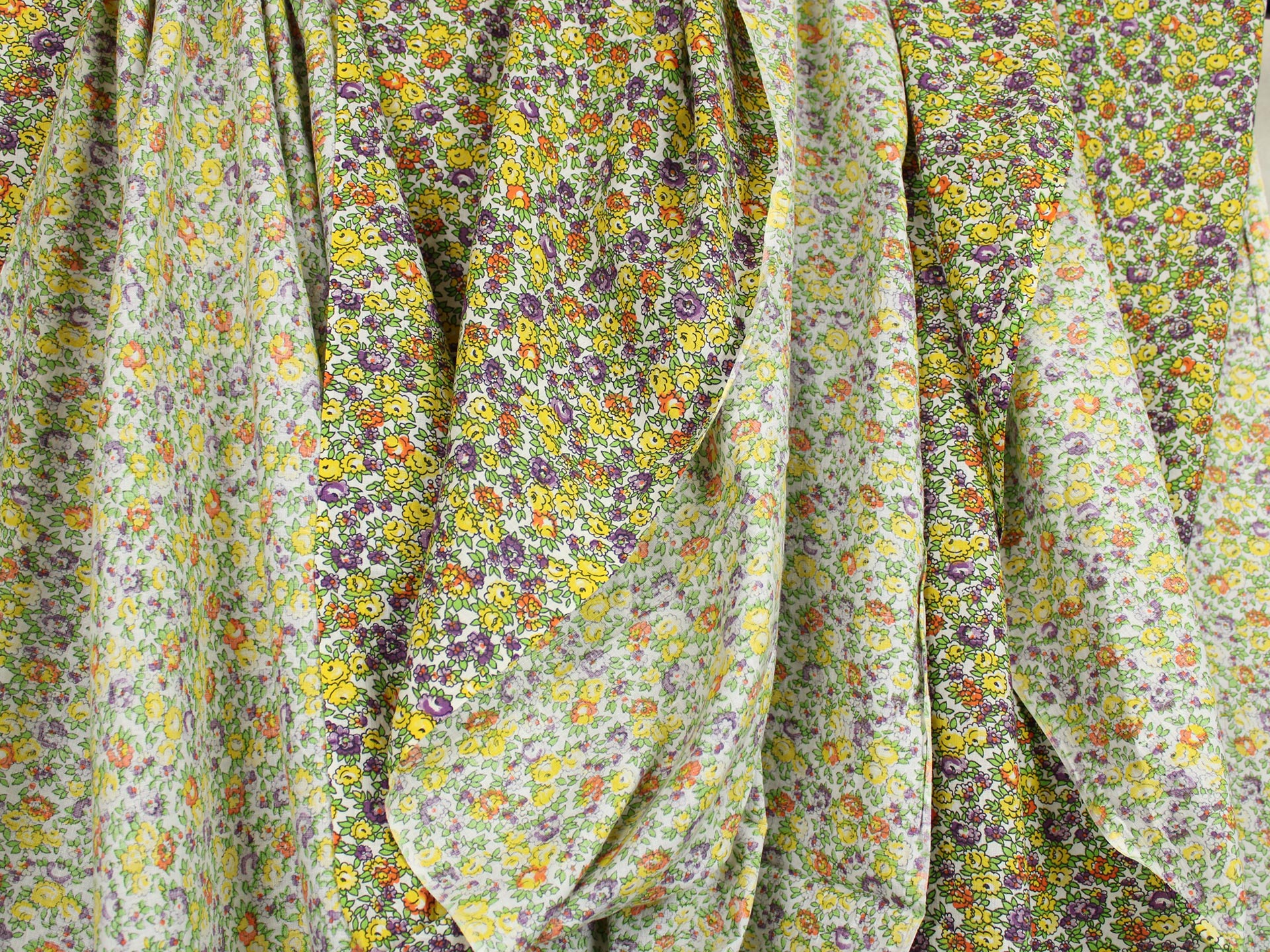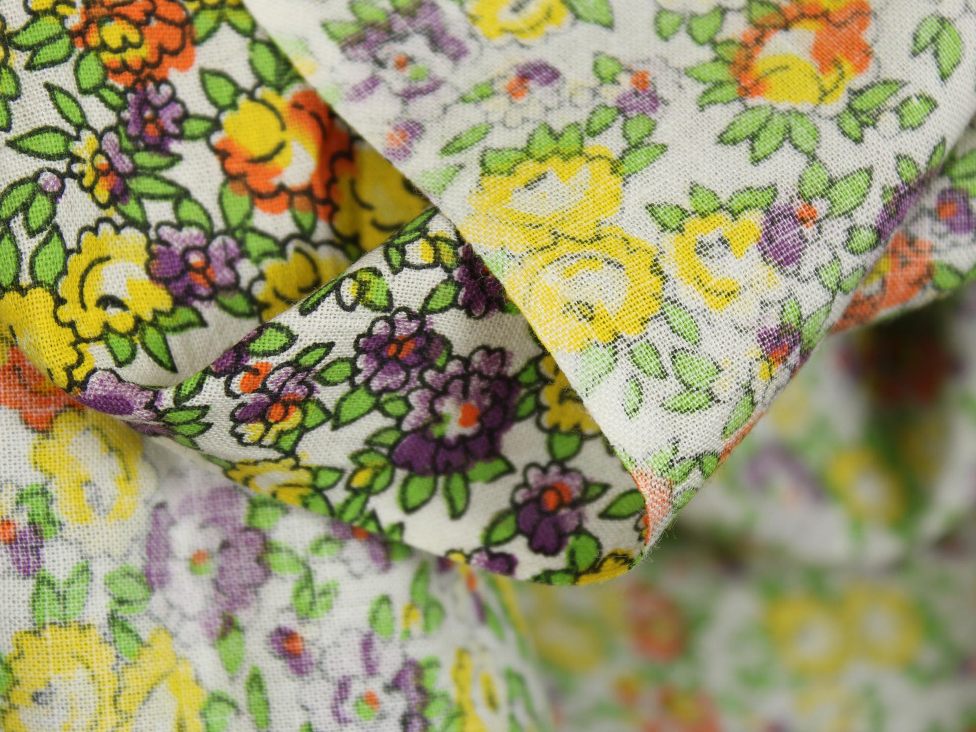 丸い花びら、細かなデザインの小花柄ファブリックです。