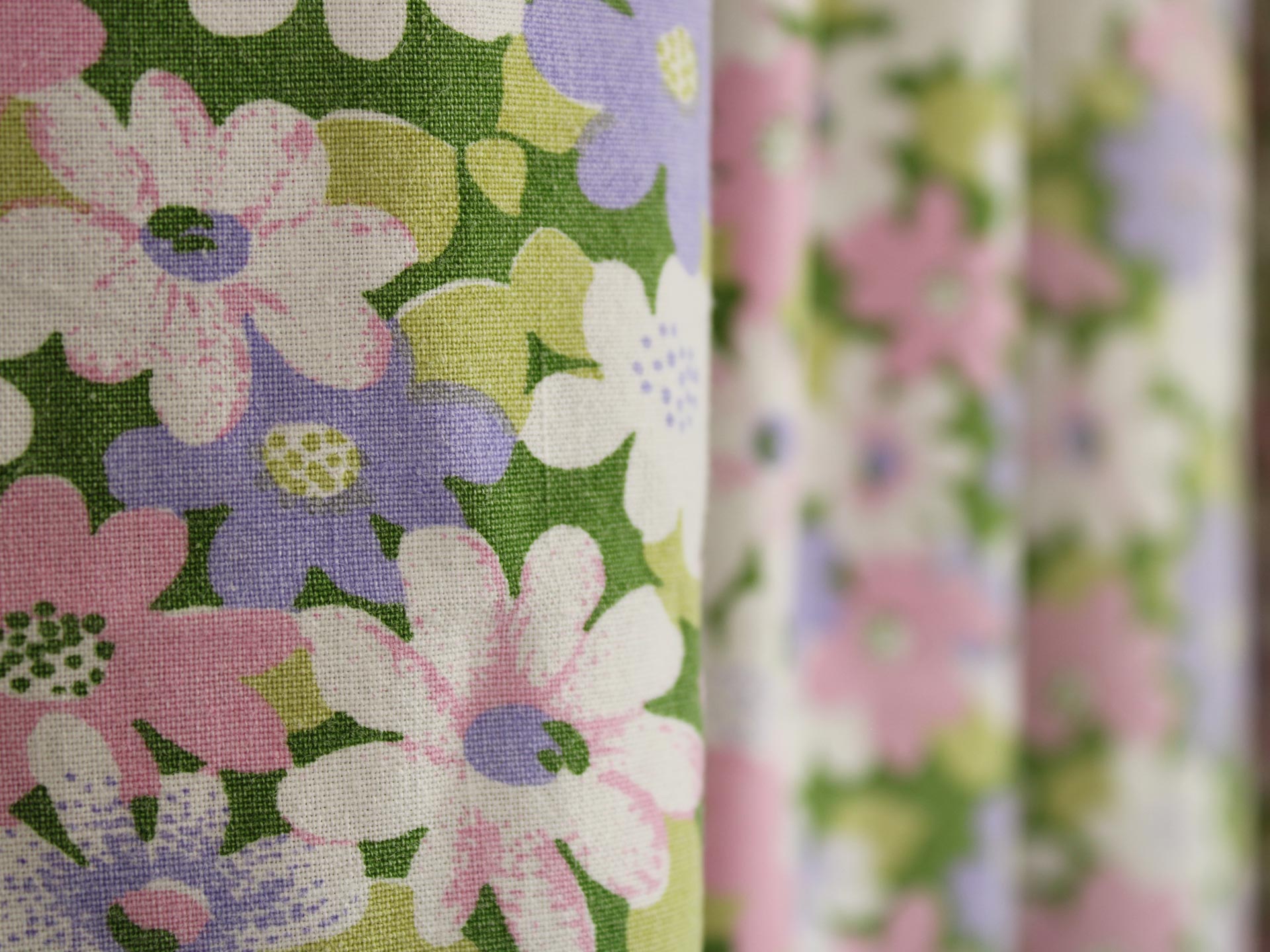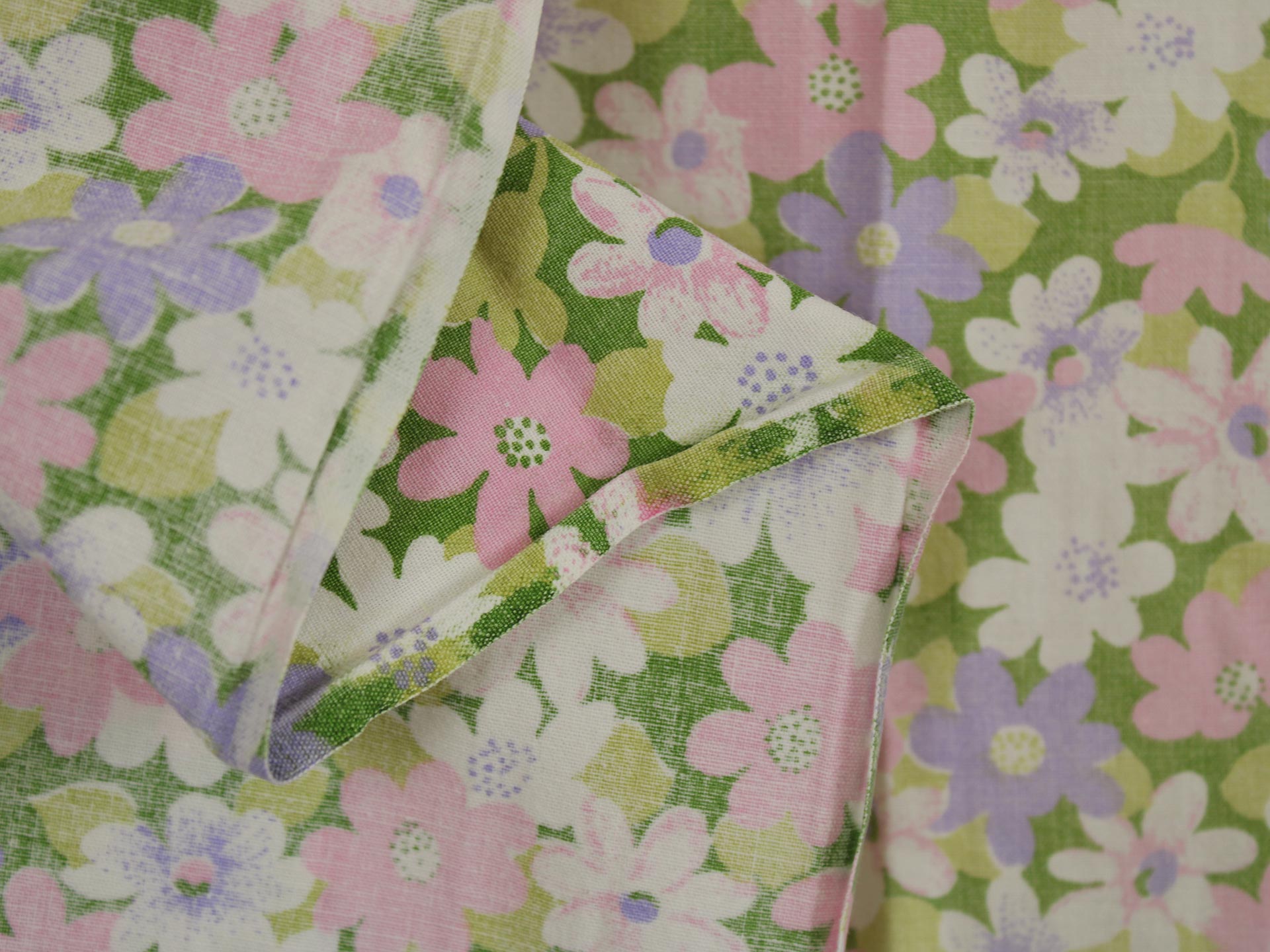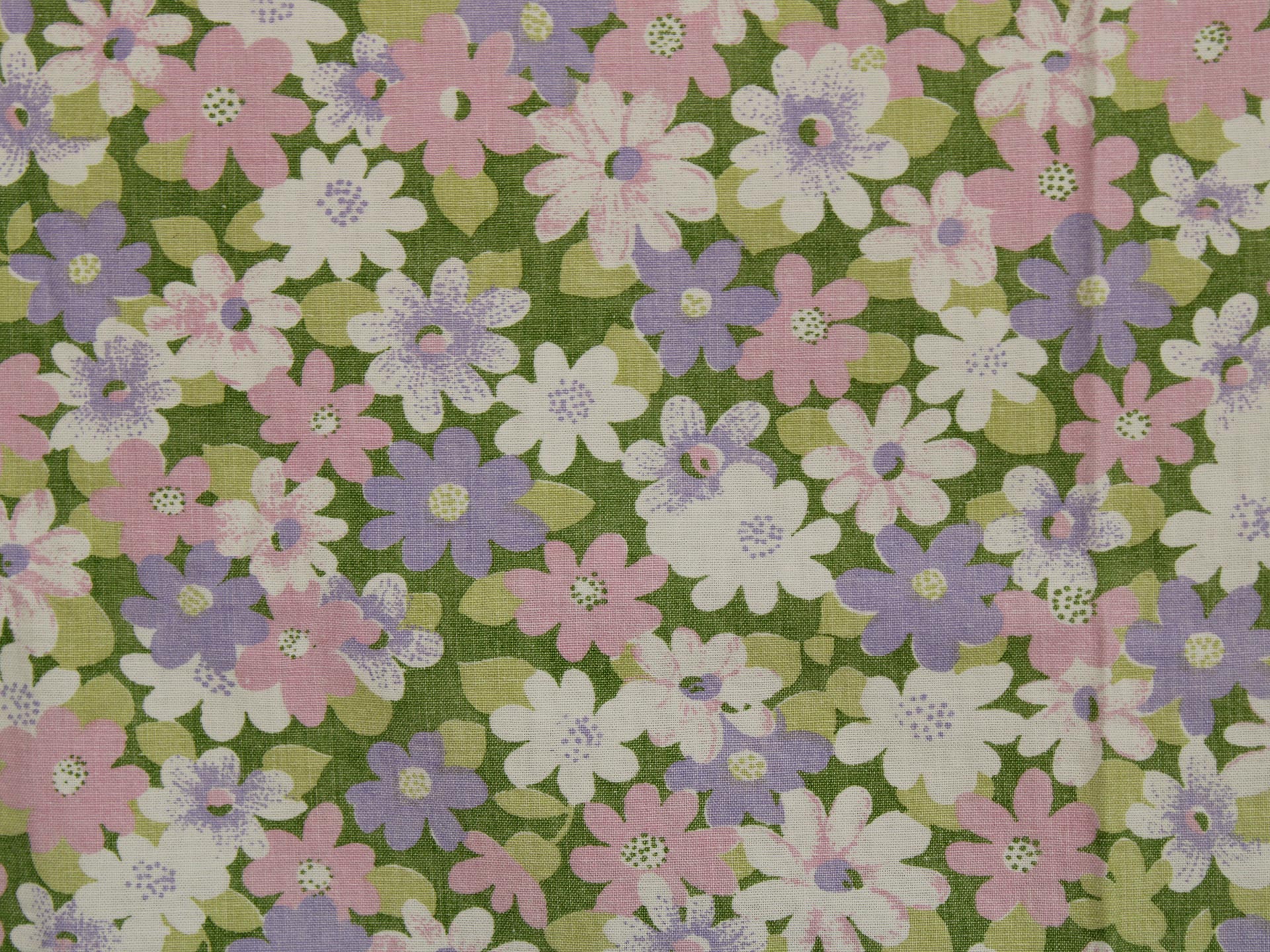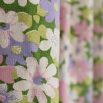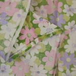 ピンク、紫、白のお花畑のようなファブリック。