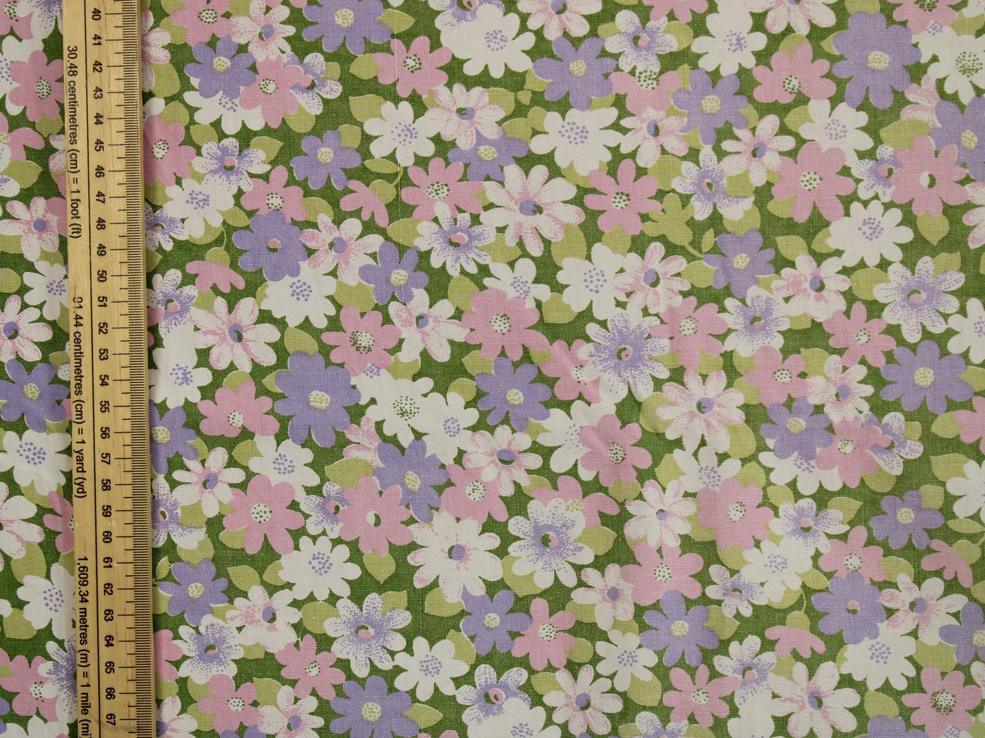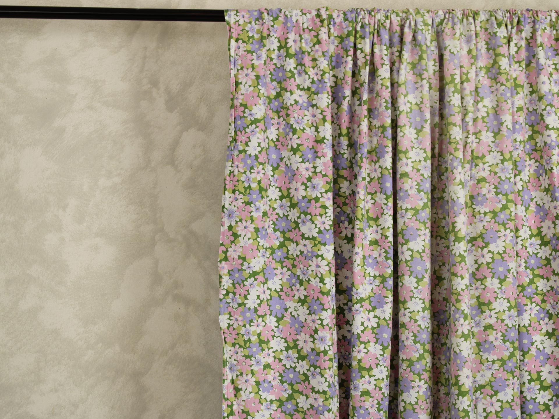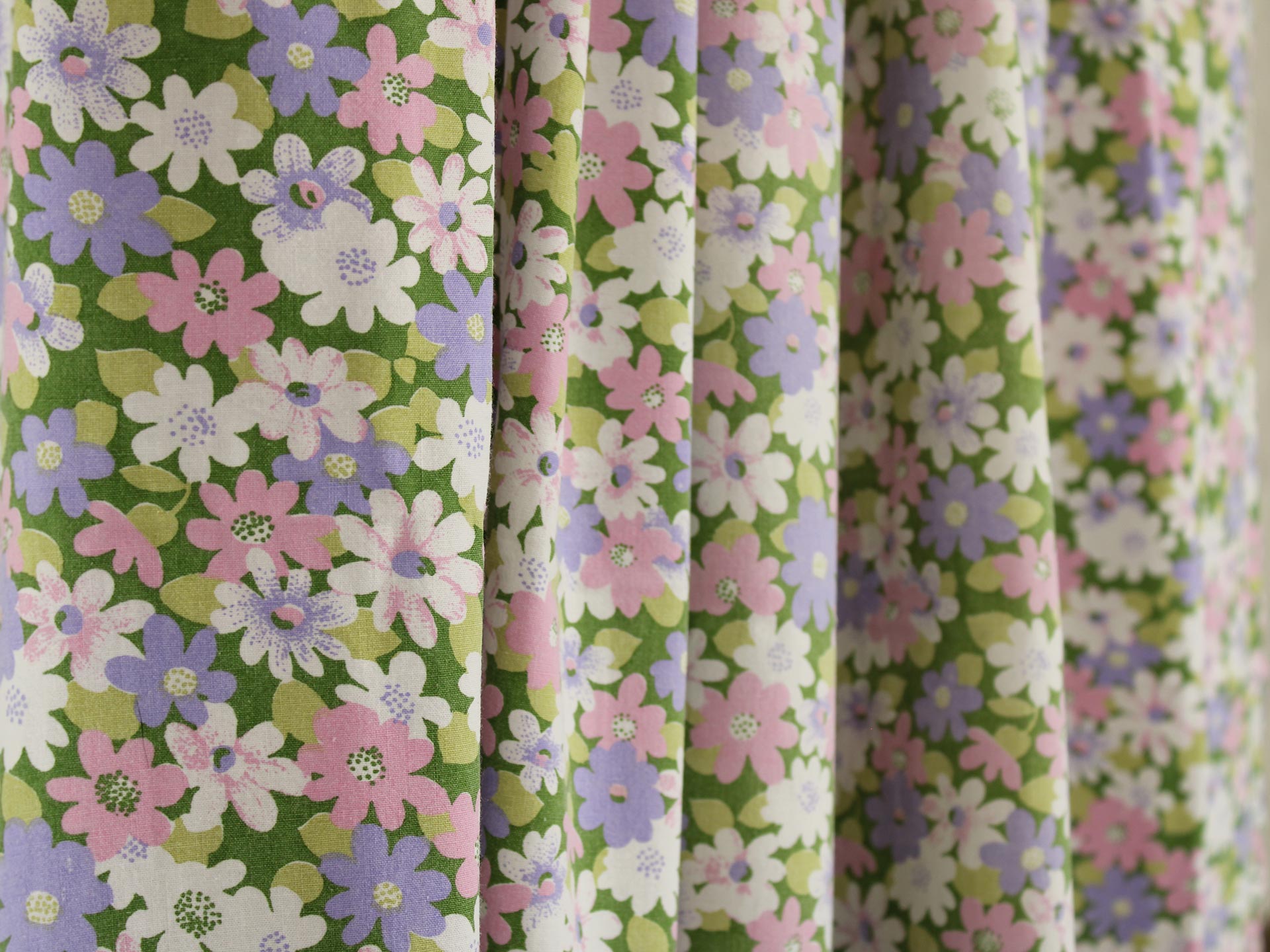 ピンク、紫、白のお花畑のようなファブリック。