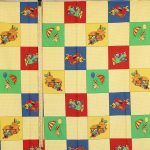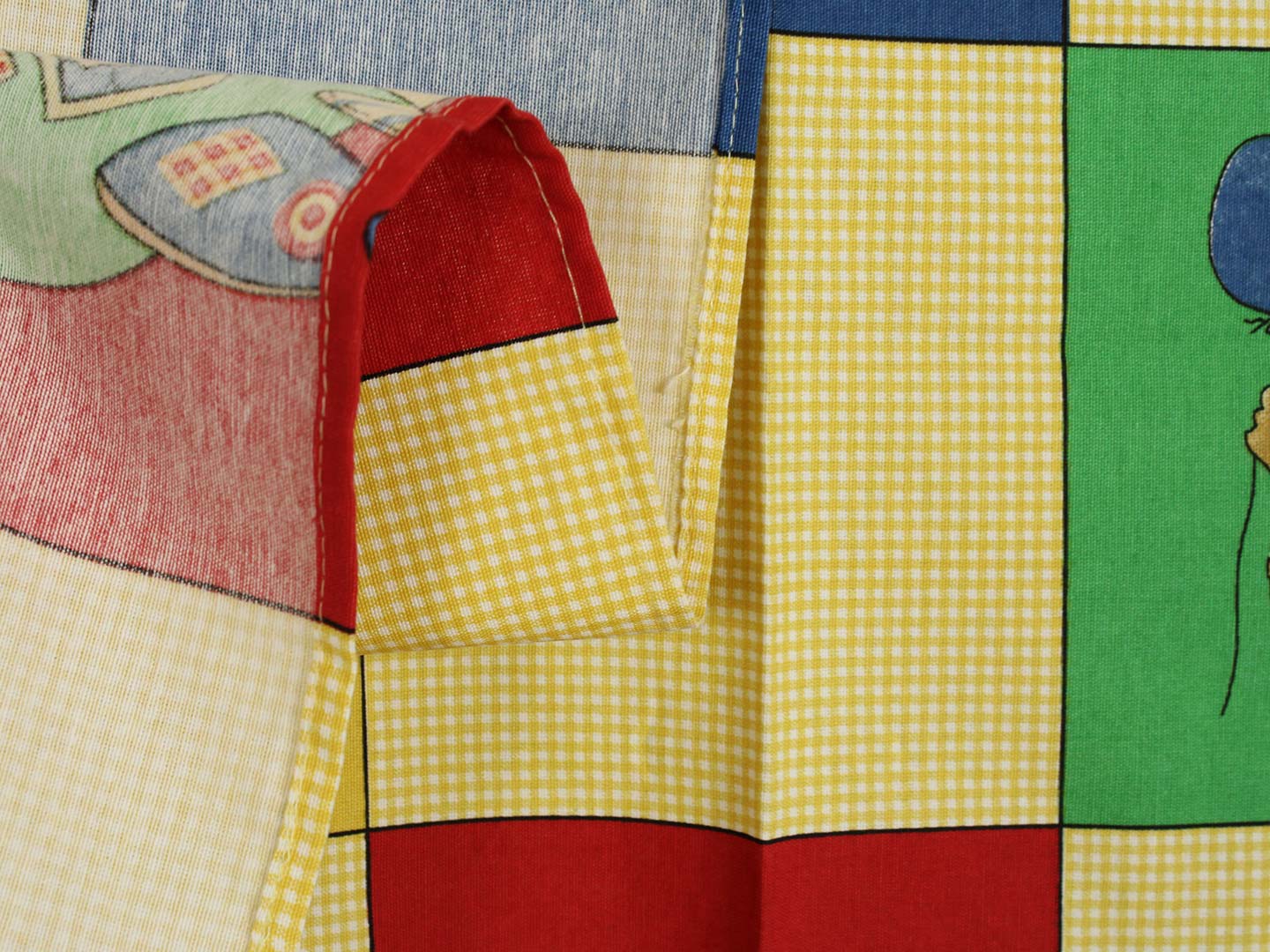 黄色のギンガムチェックと原色カラーの市松模様がポップなデザイン。