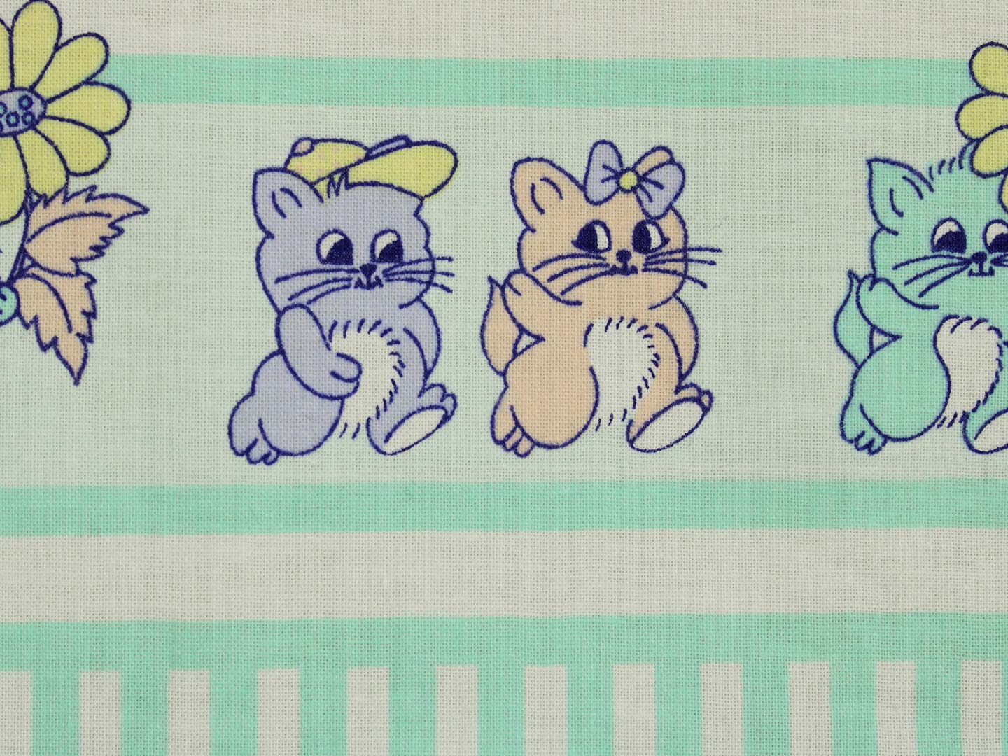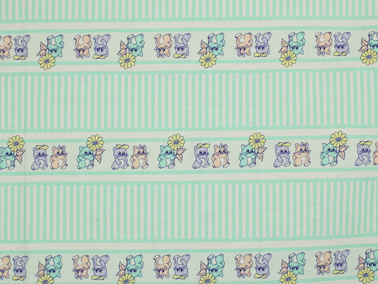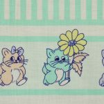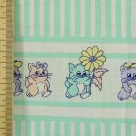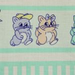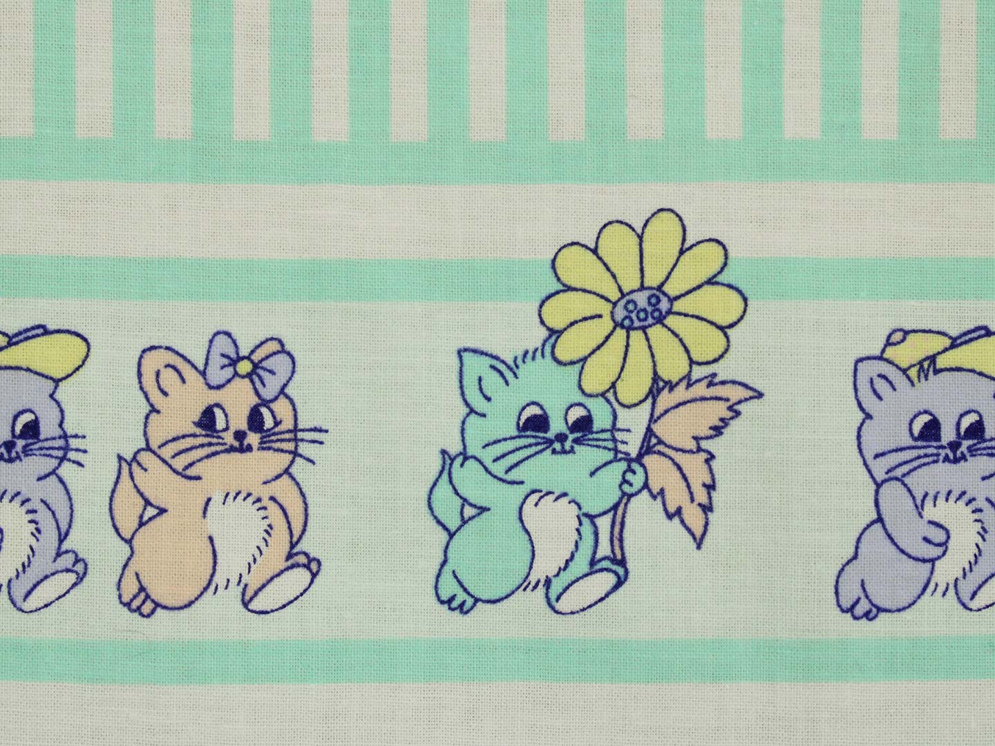 ミントグリーンのストライプと子猫たち。パステルカラーのレトロファンシーなデザインです。