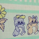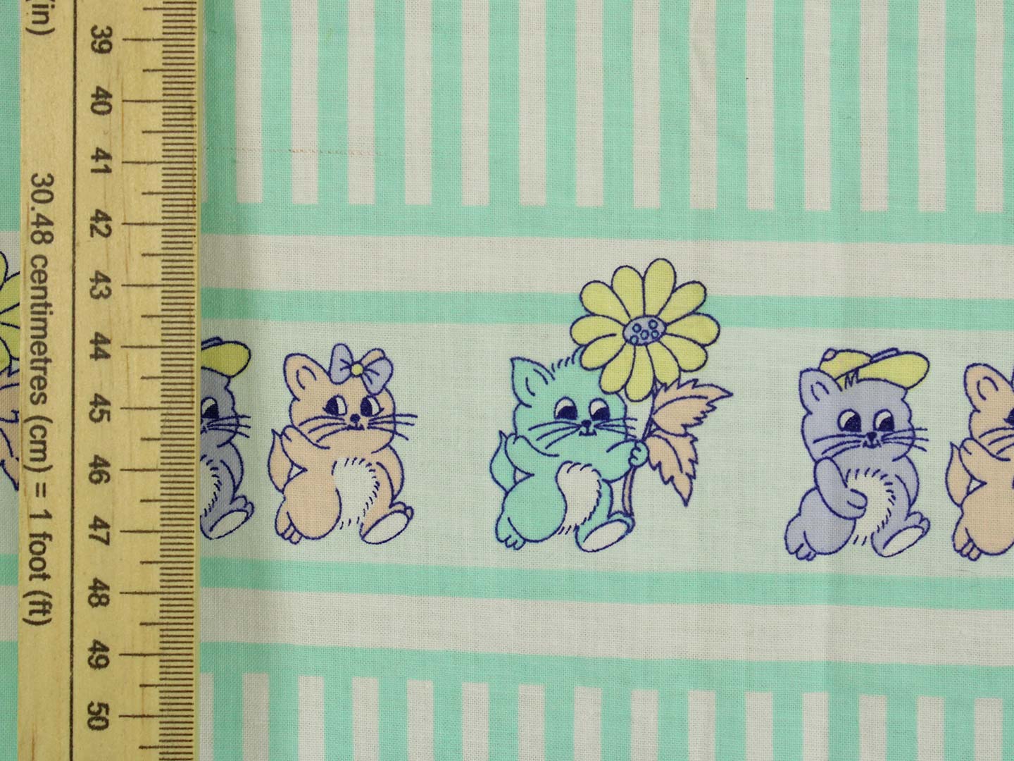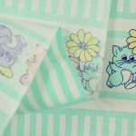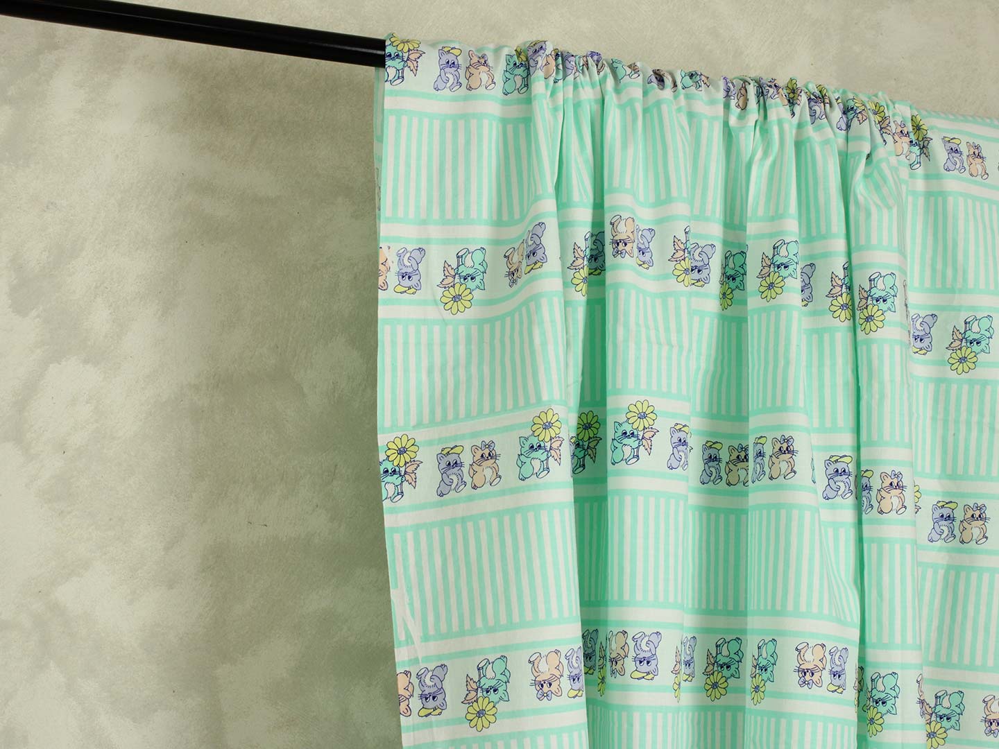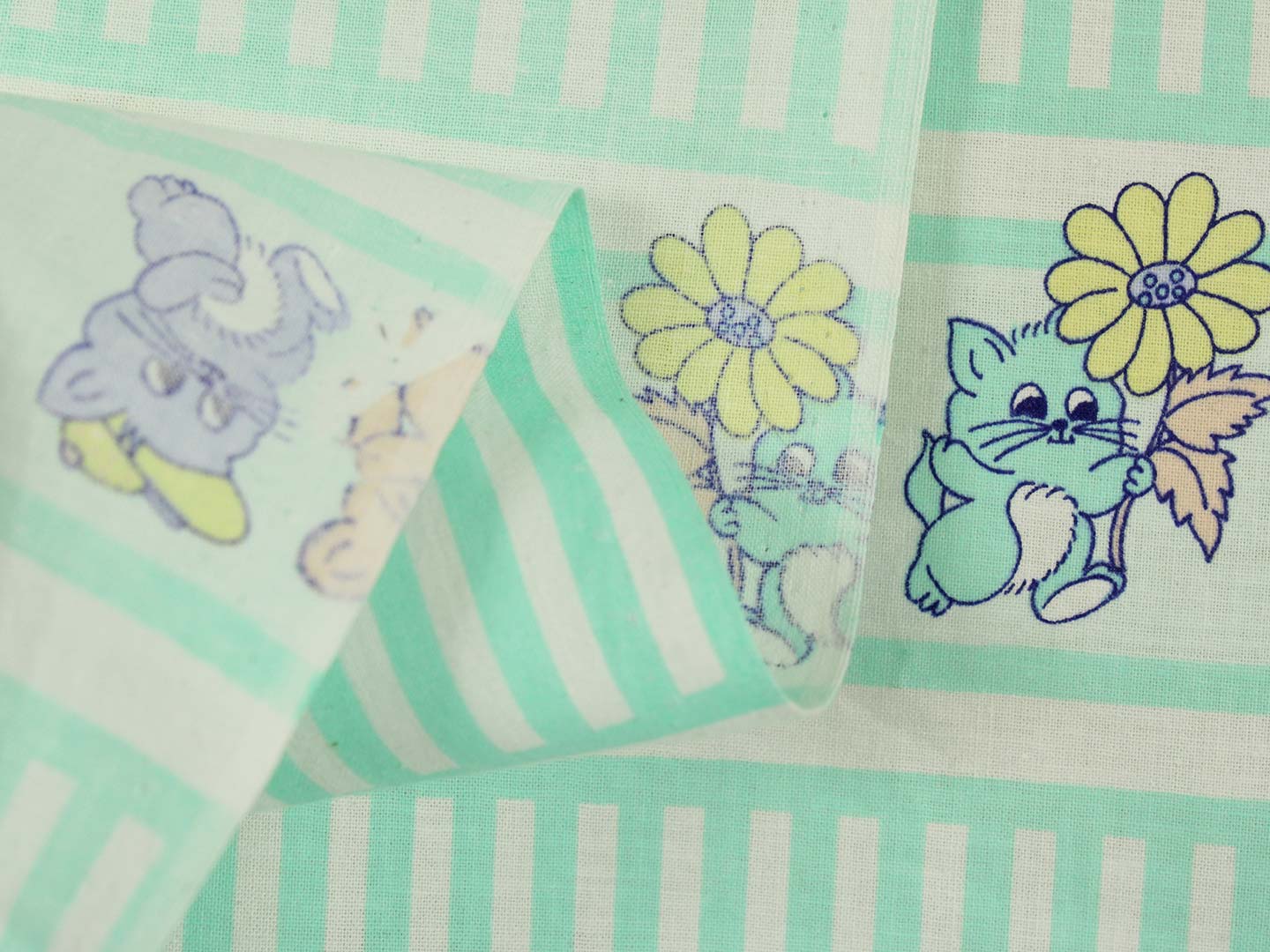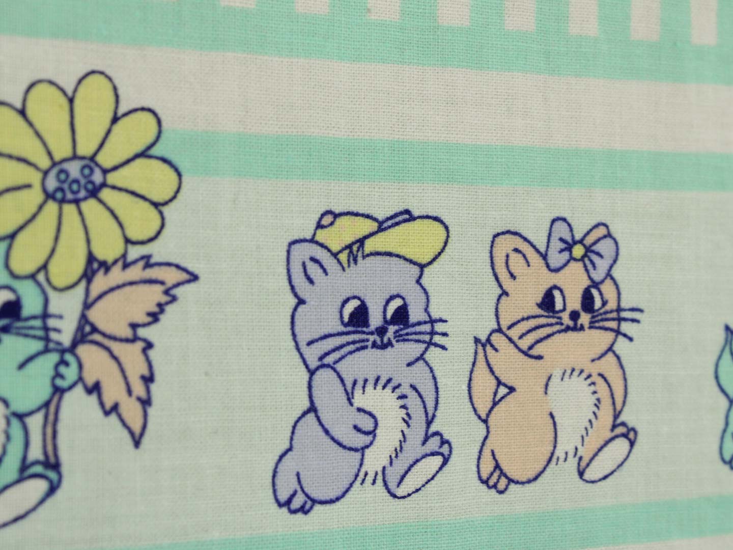 ミントグリーンのストライプと子猫たち。パステルカラーのレトロファンシーなデザインです。