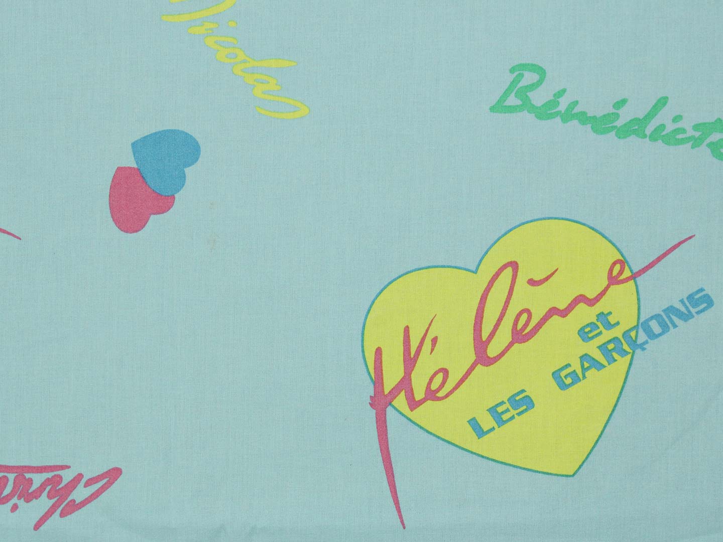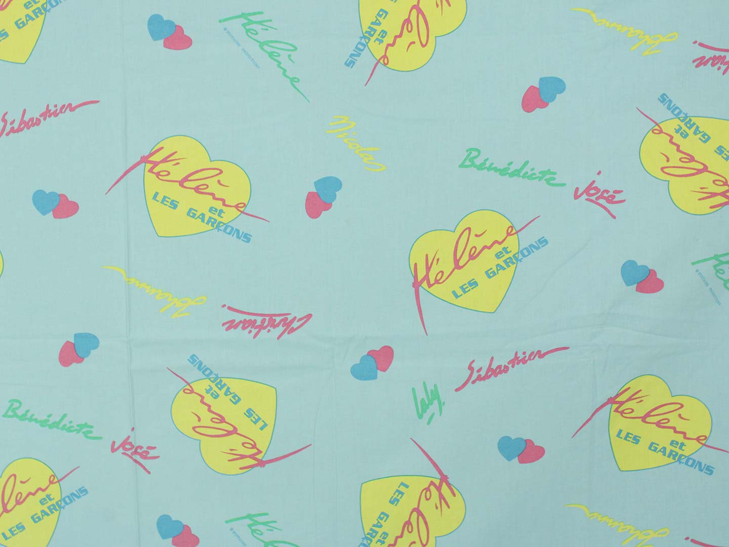 90年代フランスのテレビシリーズ Hélène et les Garçon のビンテージシーツです。ロゴや色合いがポップで可愛いデザイン。