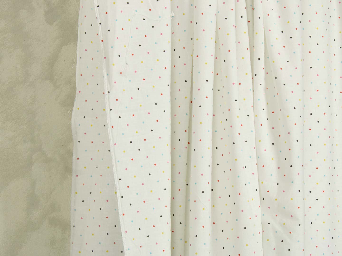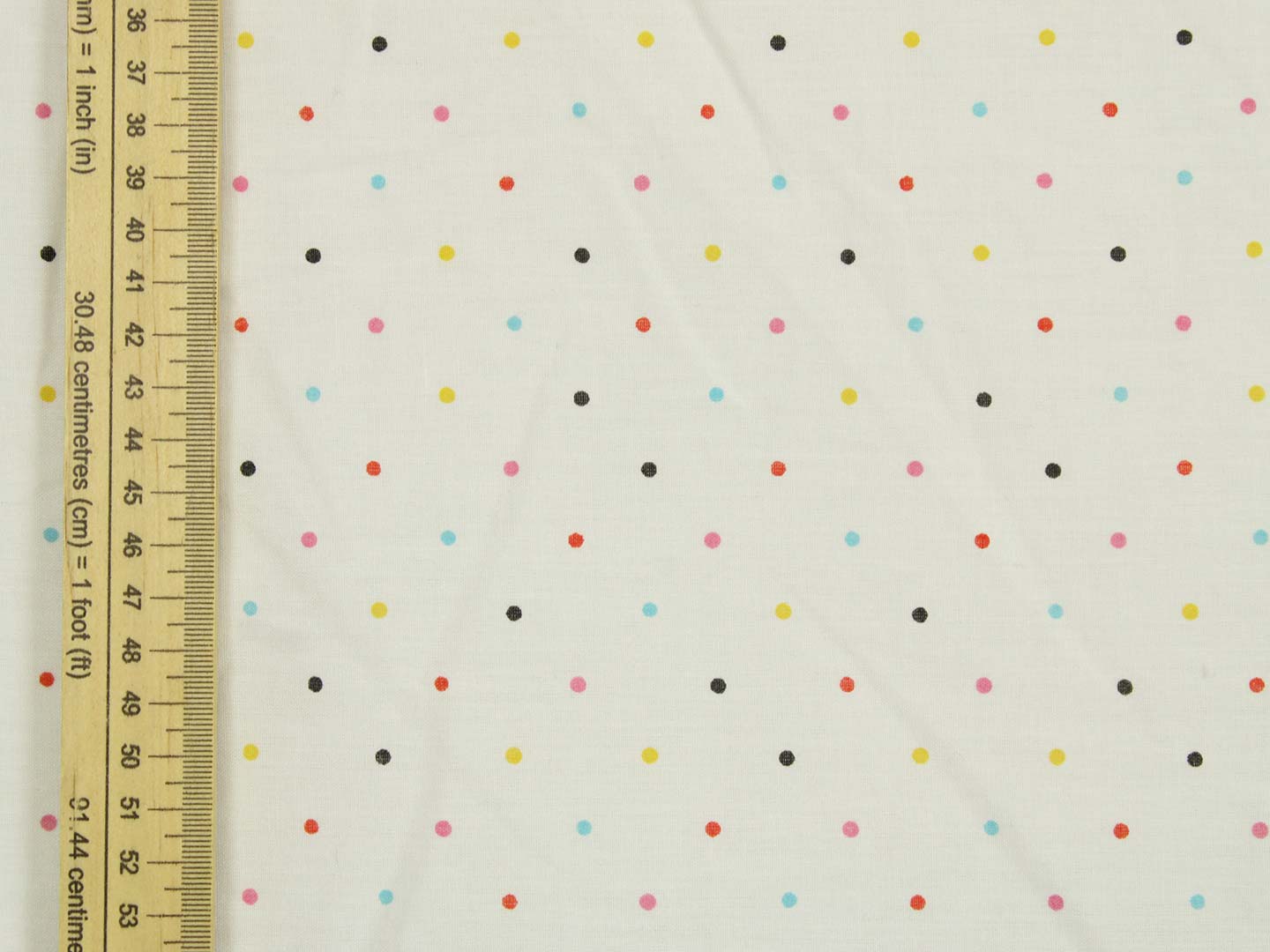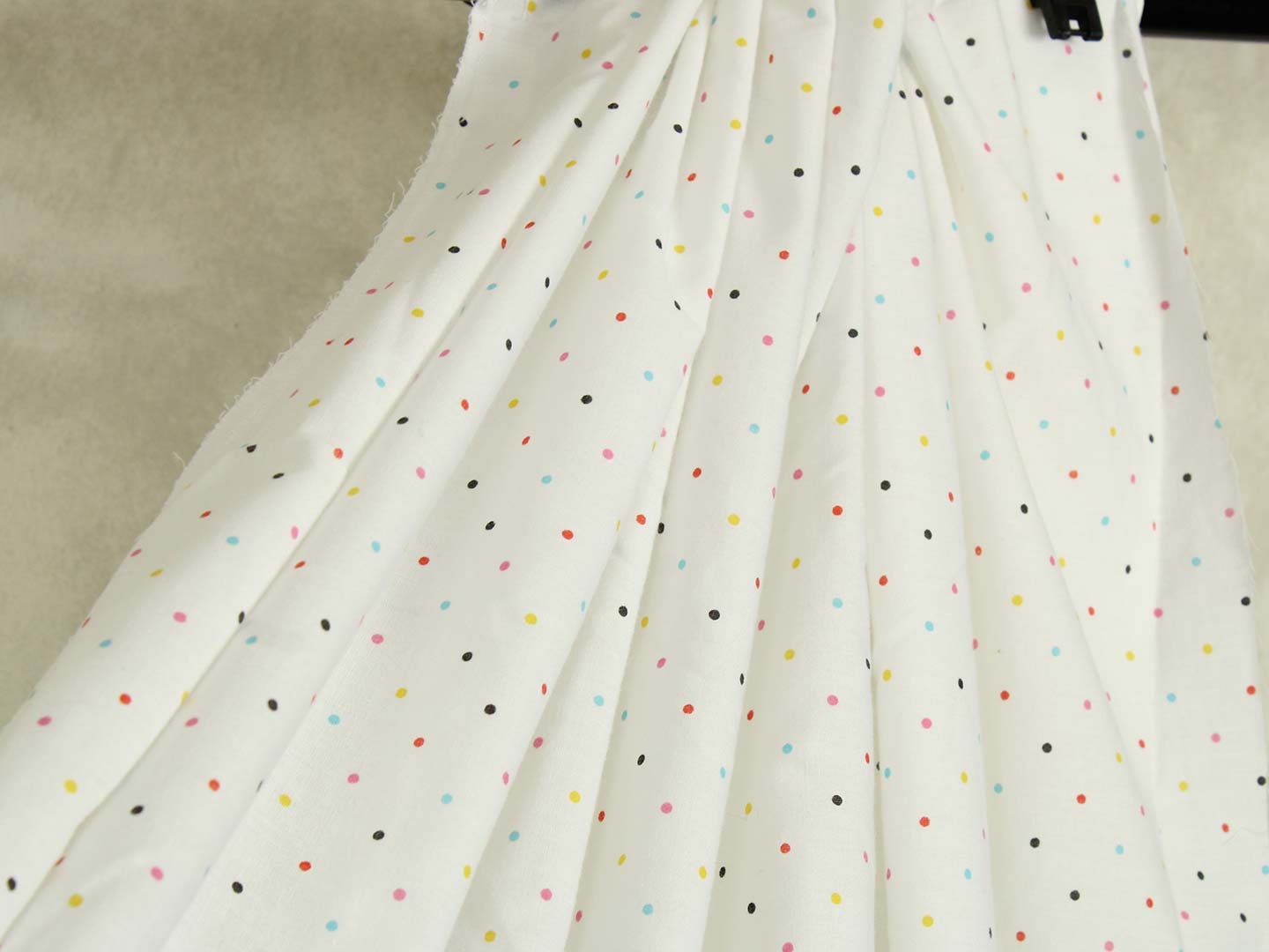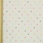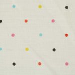 白地にカラフルなドット。レトロな色合いがポップなデザインです。