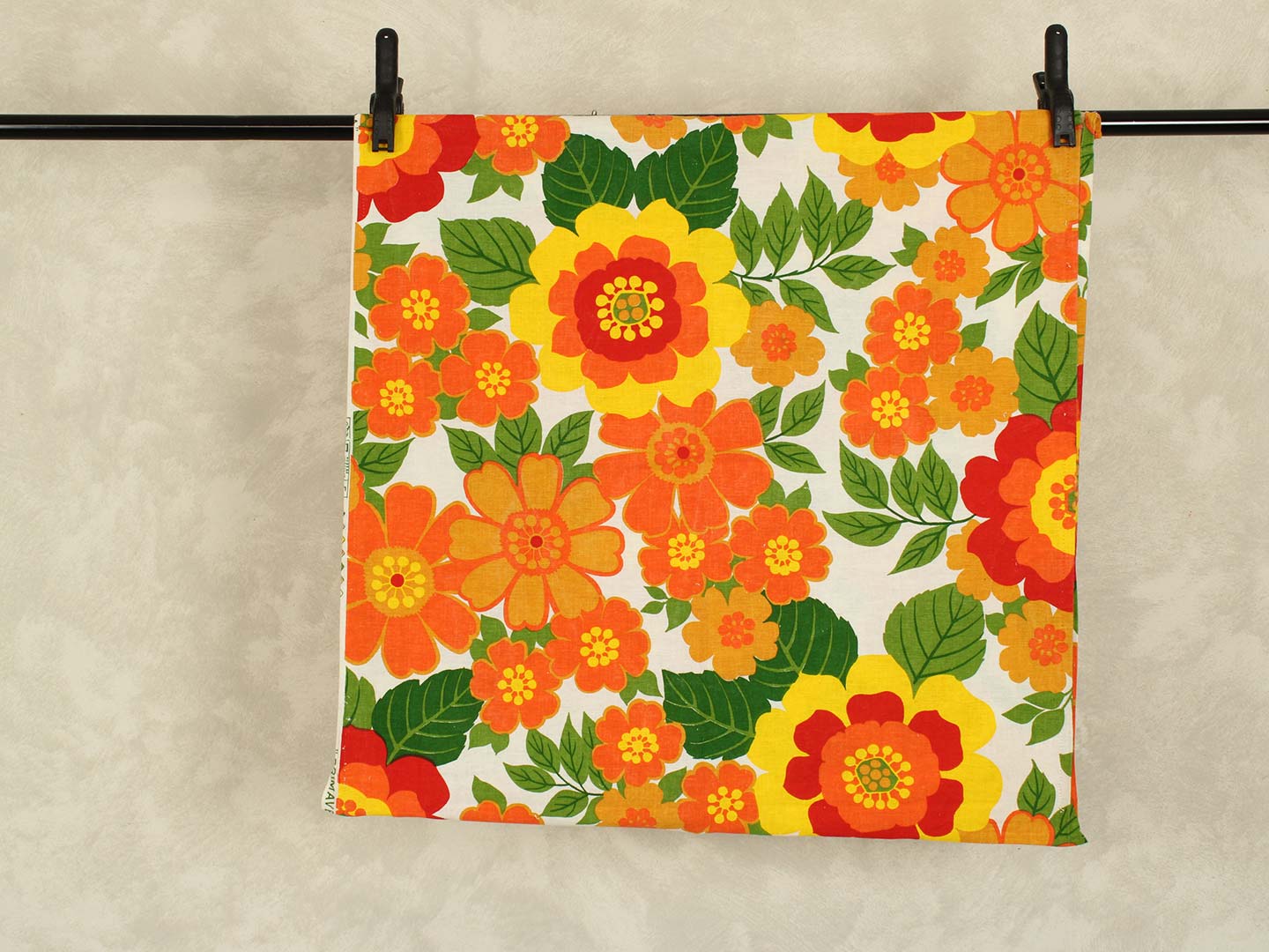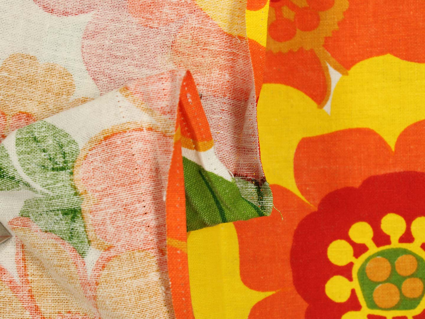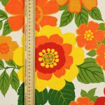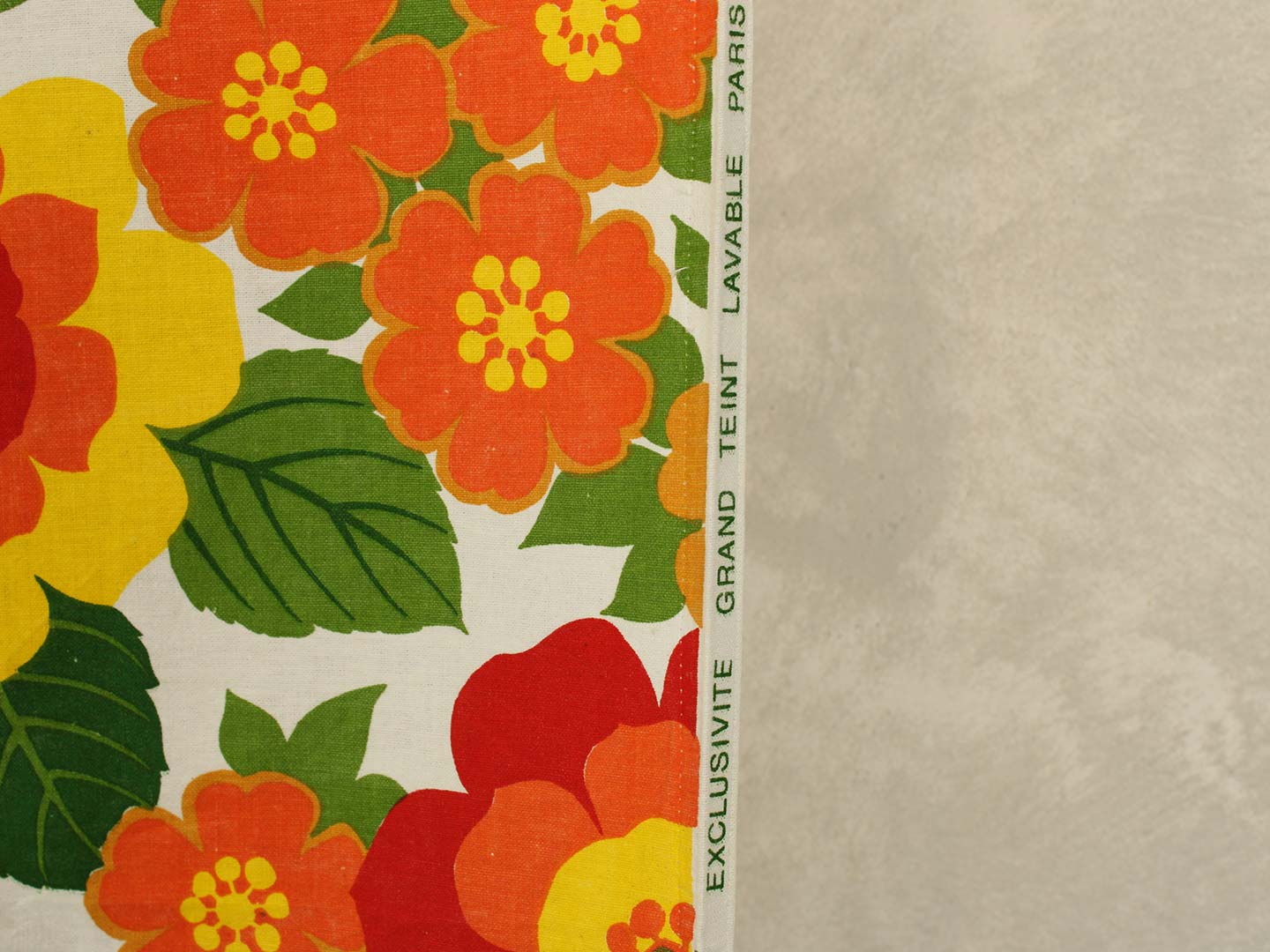 南国リゾートを思わせる、カラフルで大きな花柄のファブリック。