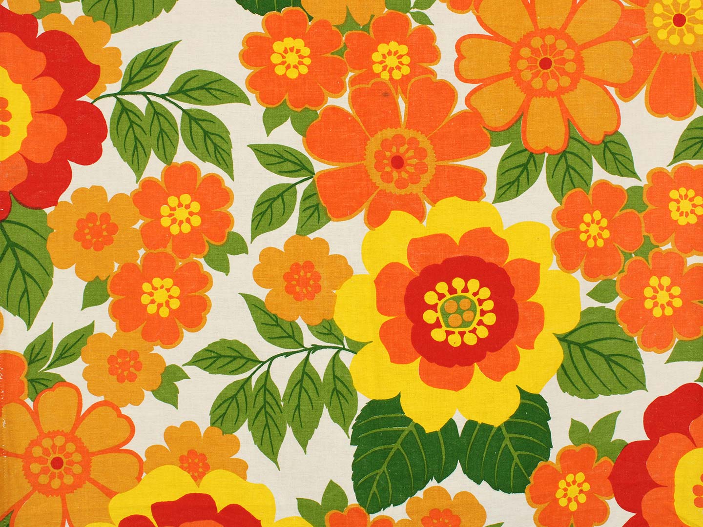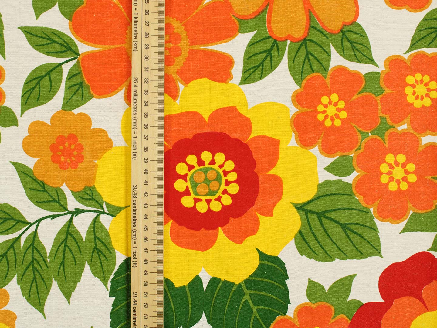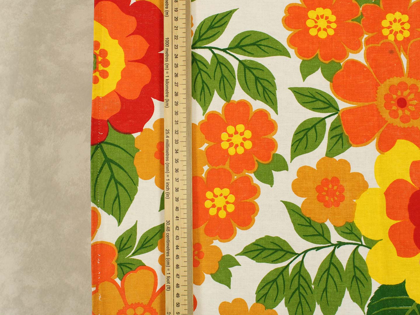 南国リゾートを思わせる、カラフルで大きな花柄のファブリック。