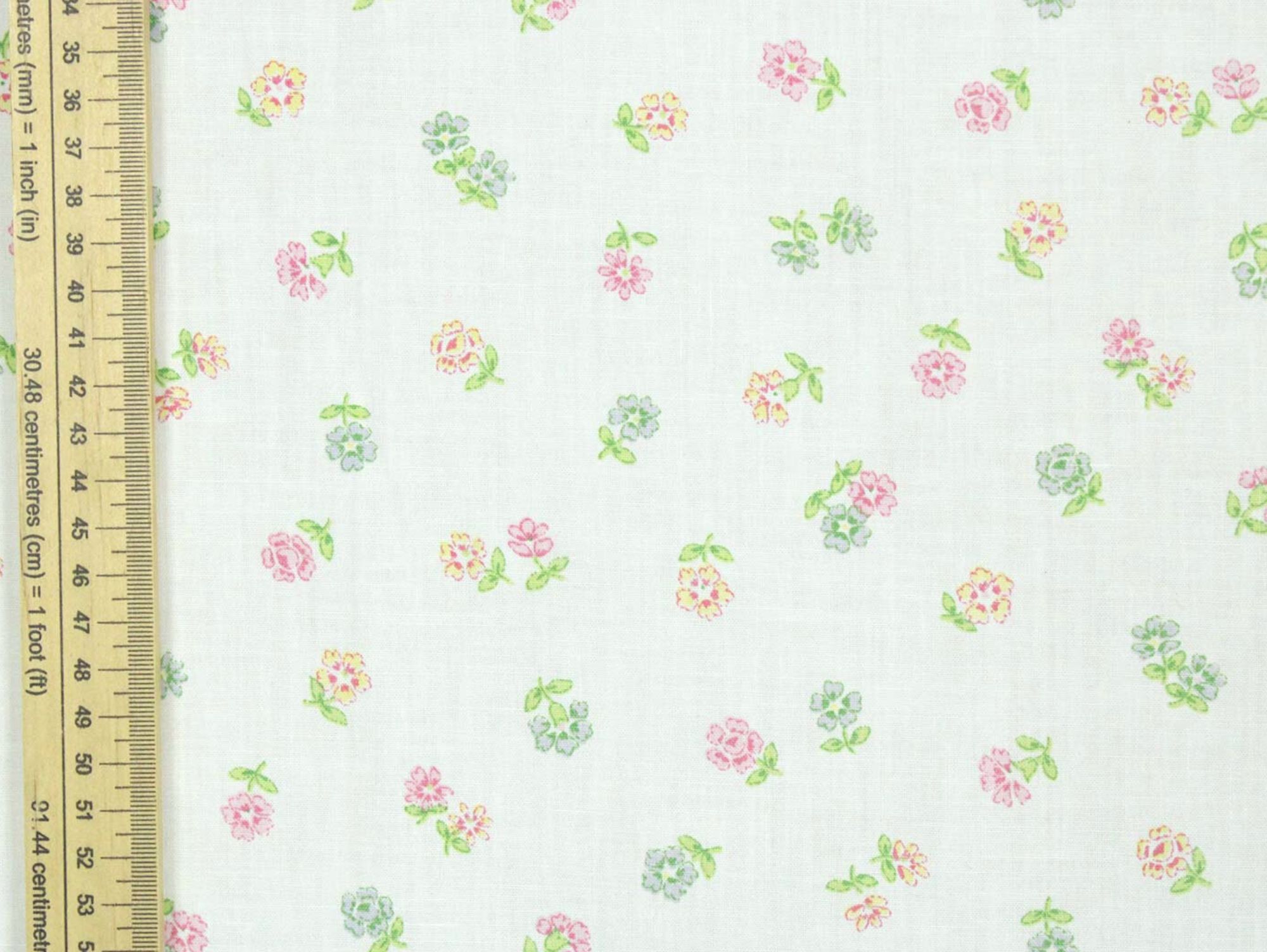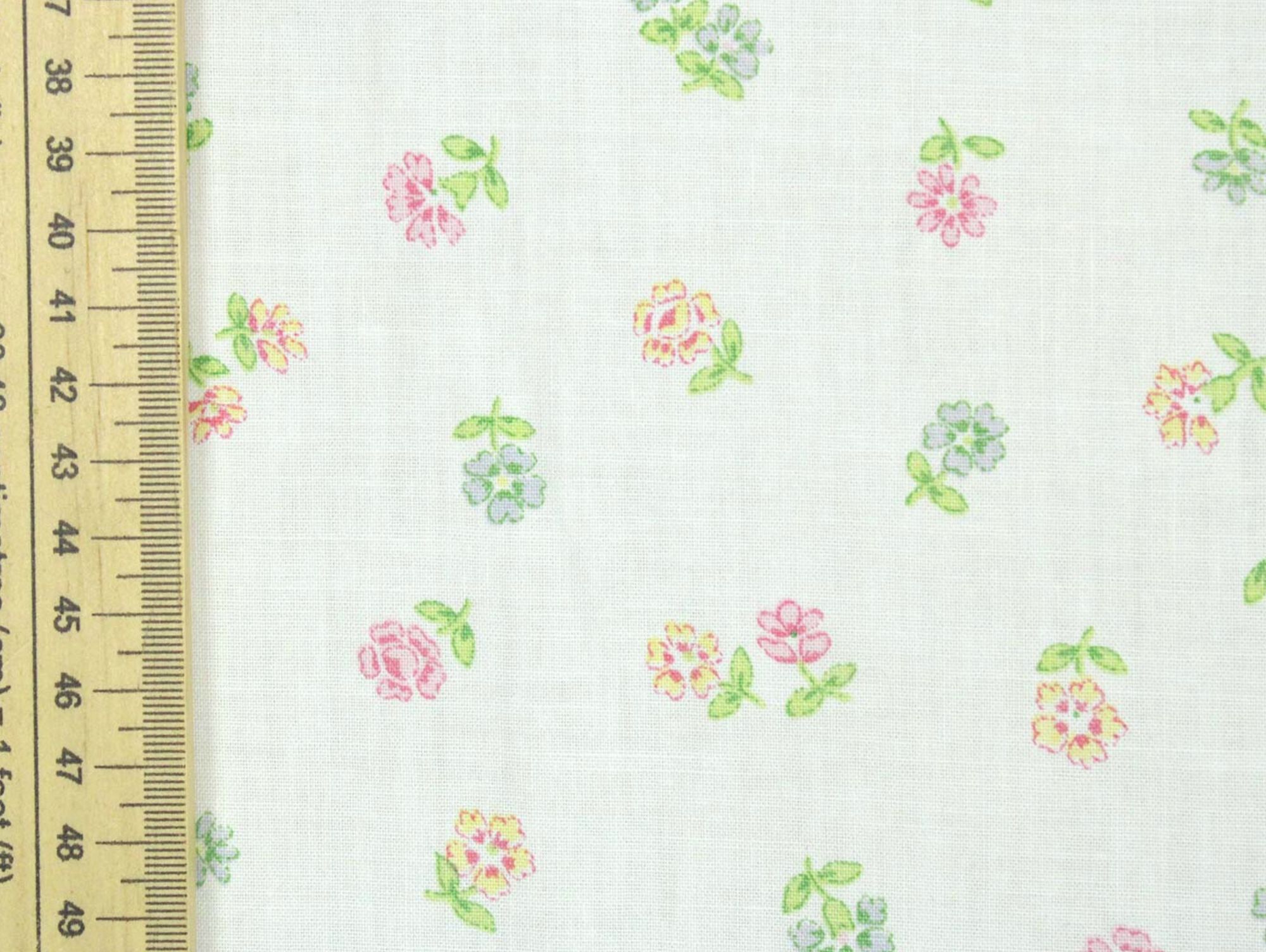 白地にパステルカラーの小さな花柄。地色は真っ白です。