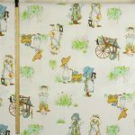乳母車や糸巻きが描かれたファブリックです。