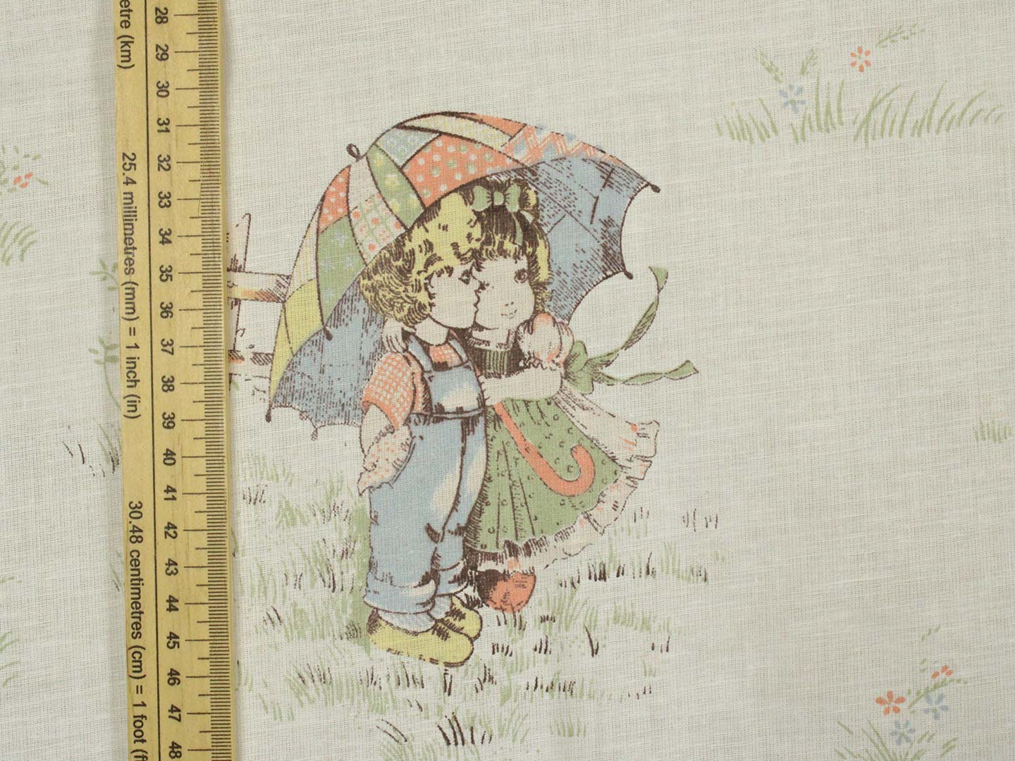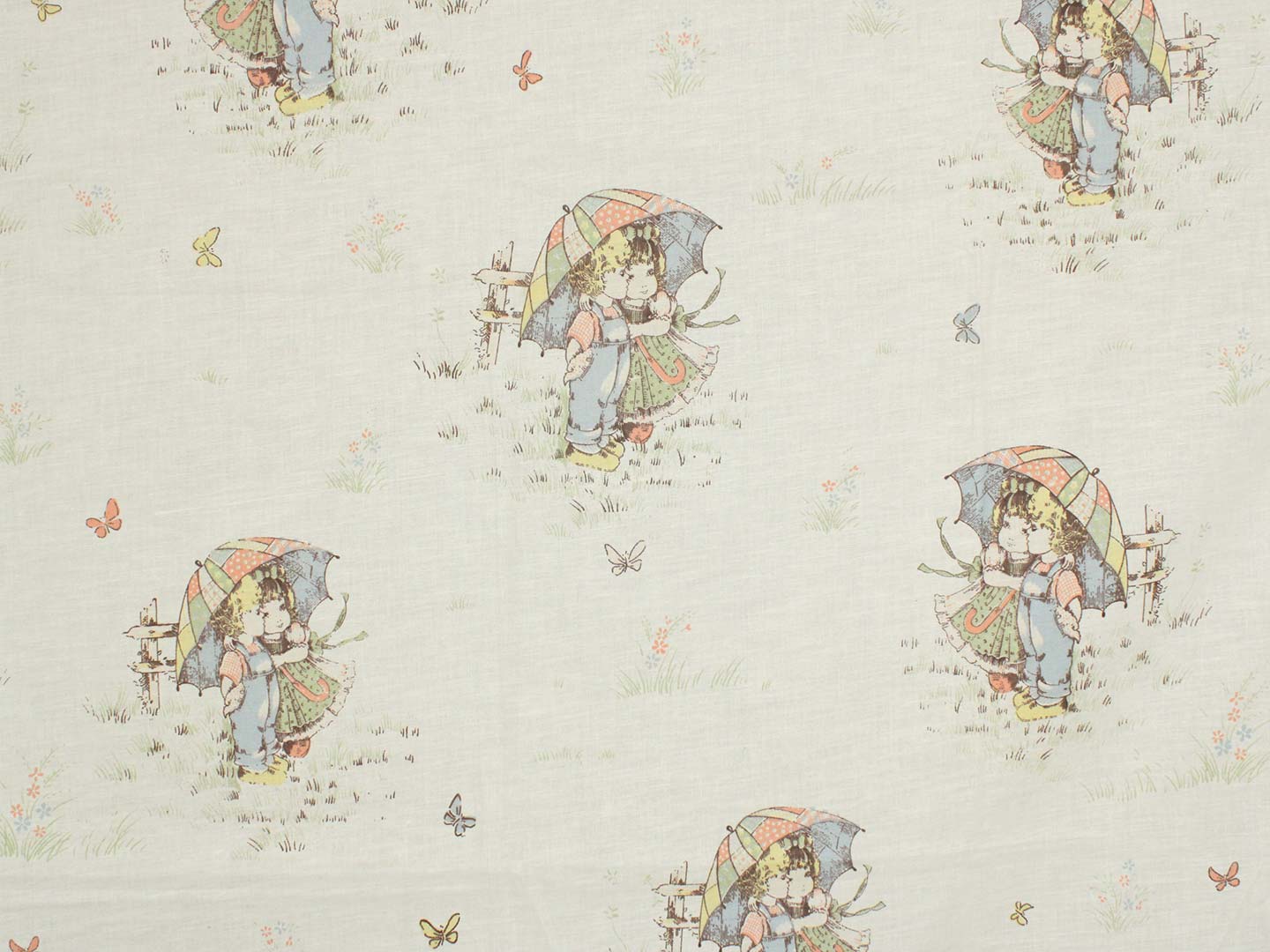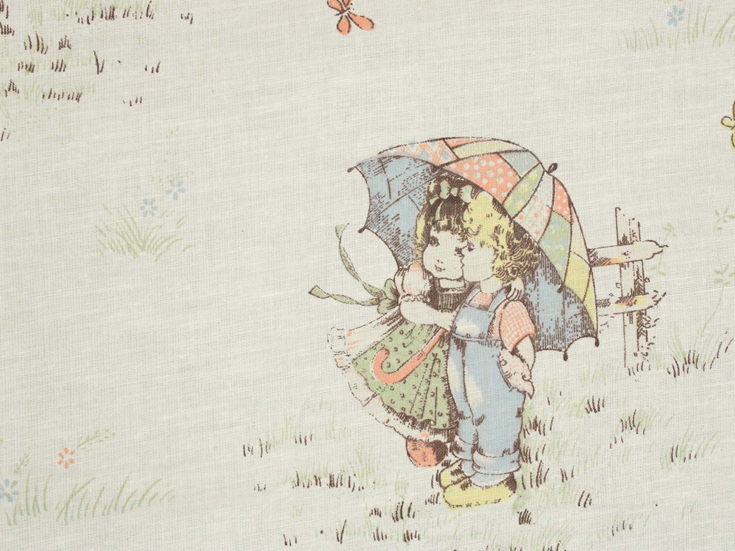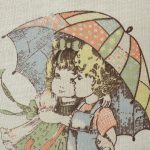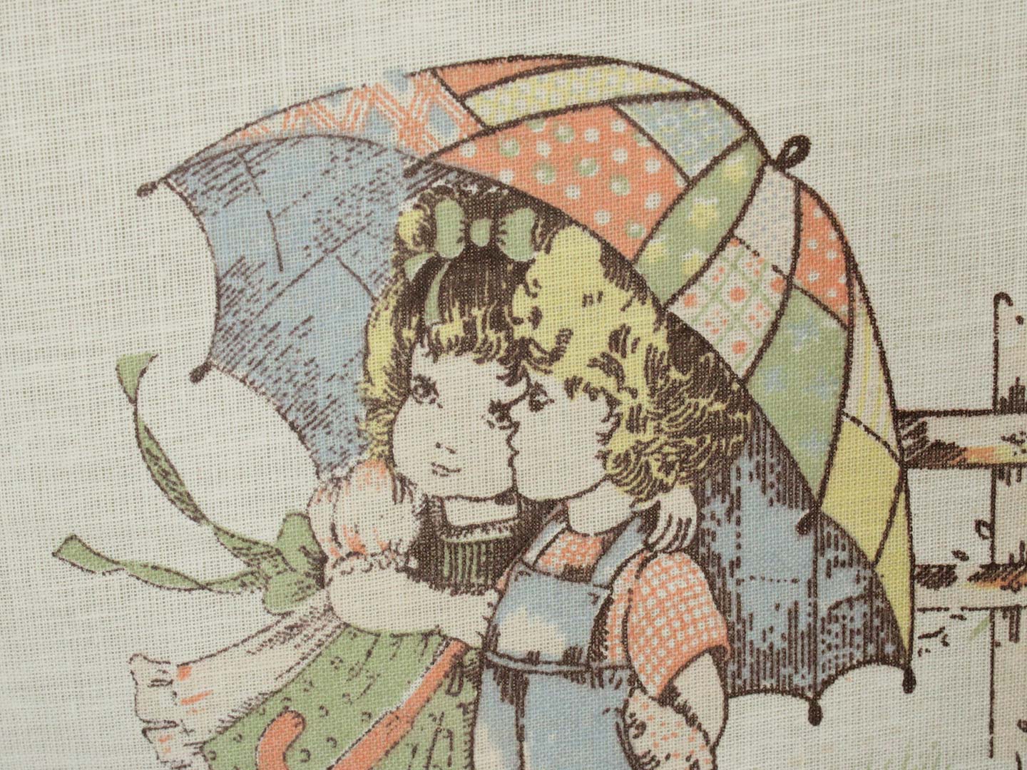 100*85 レトロ 少年少女 傘 セピア パッチワーク