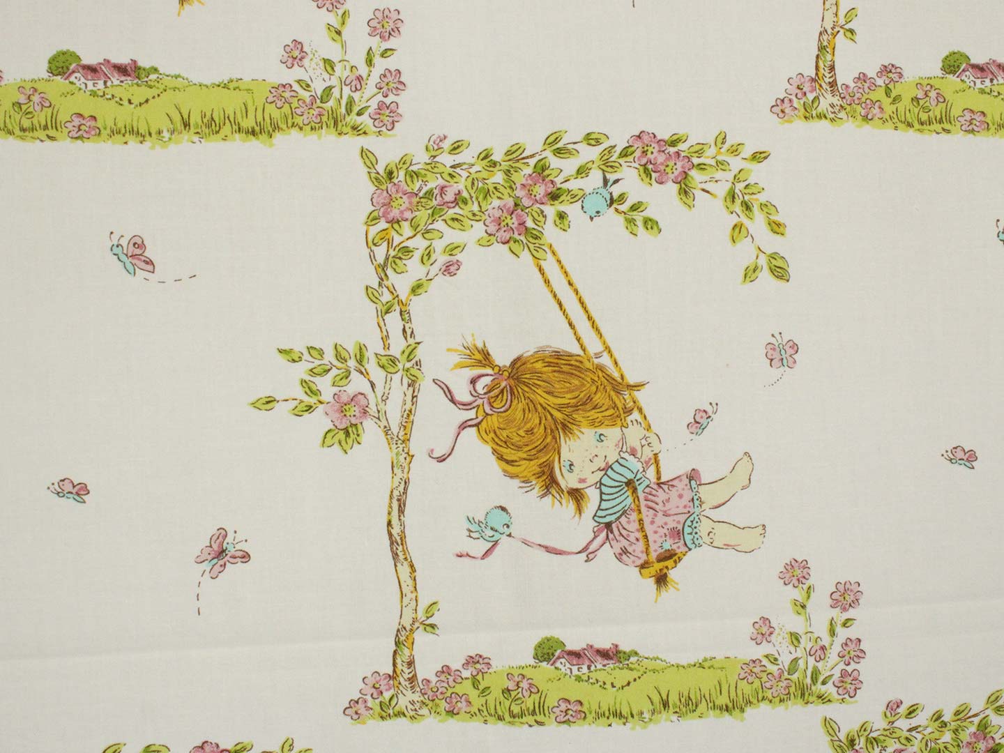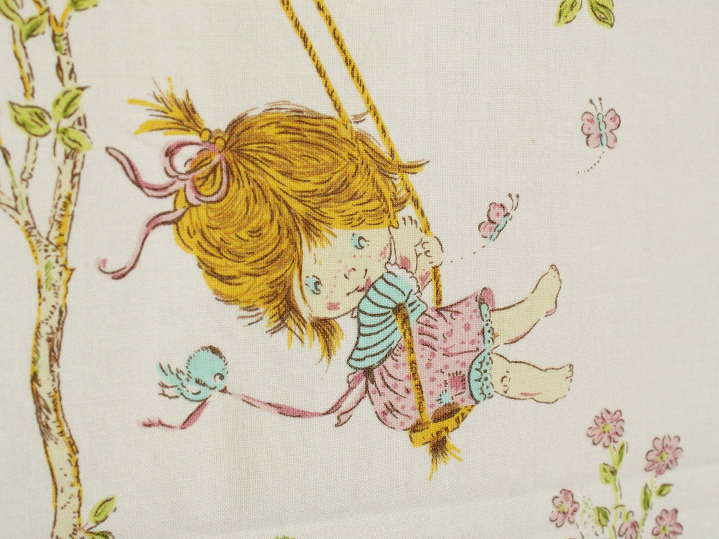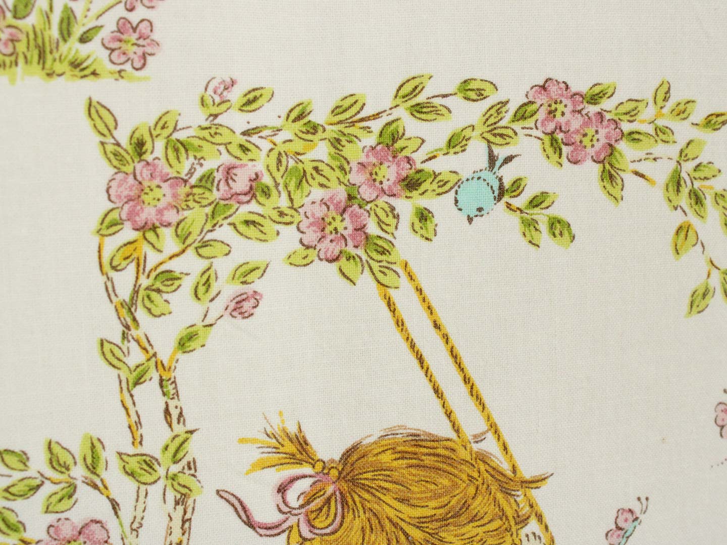 ブランコに乗った少女が描かれたヴィンテージファブリックです。