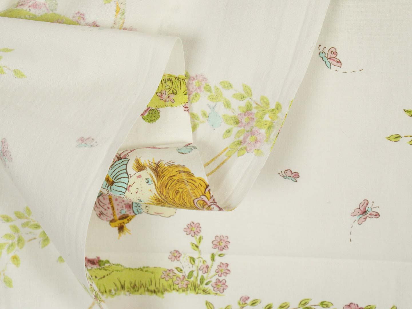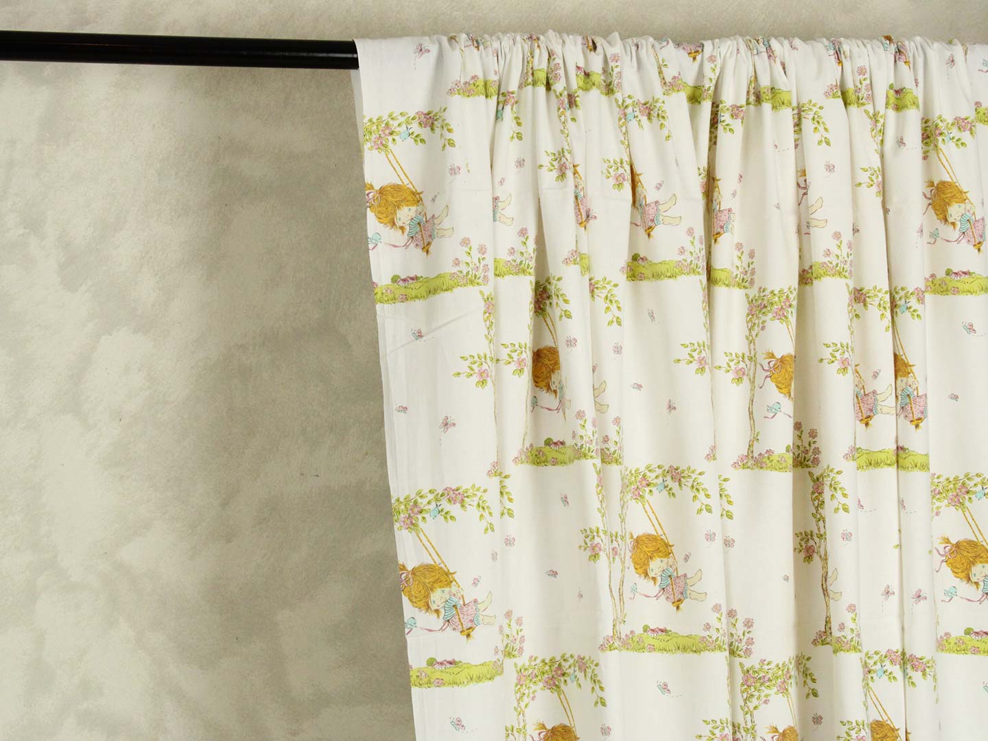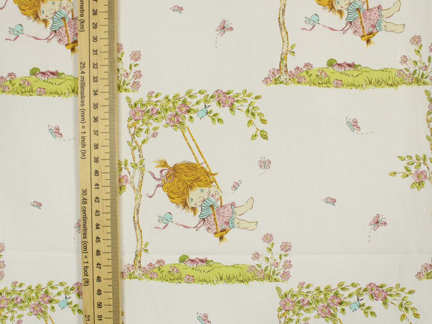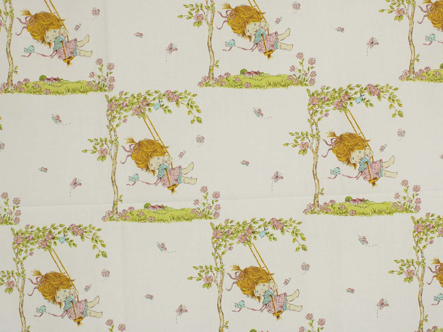 ブランコに乗った少女が描かれたヴィンテージファブリックです。
