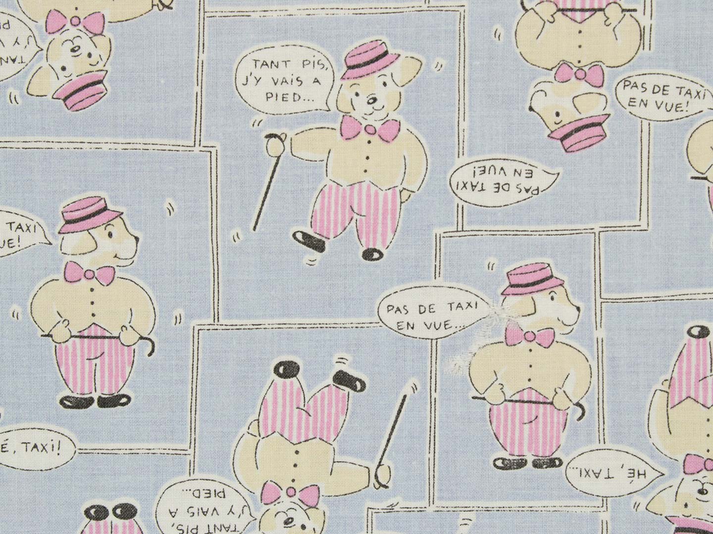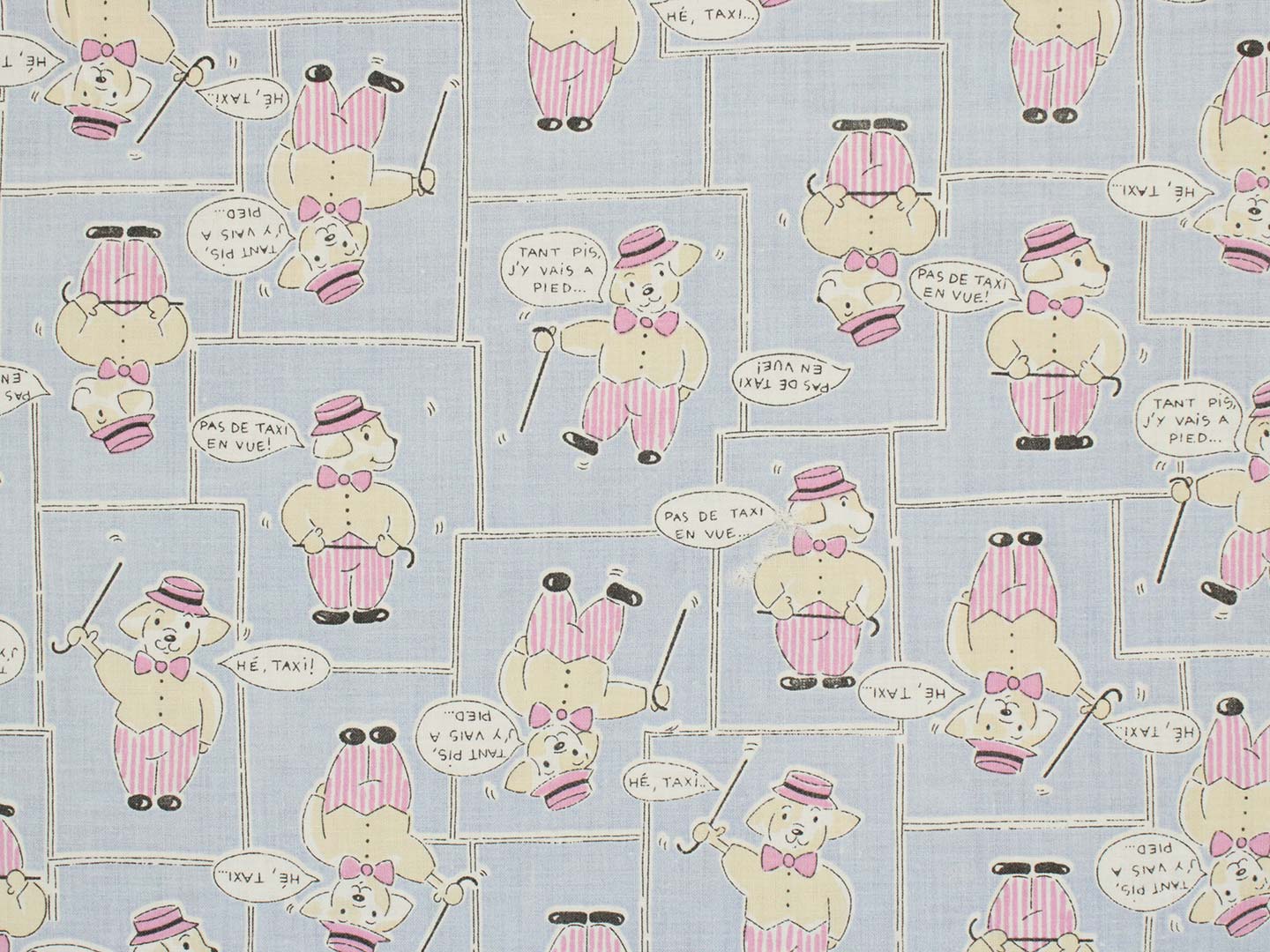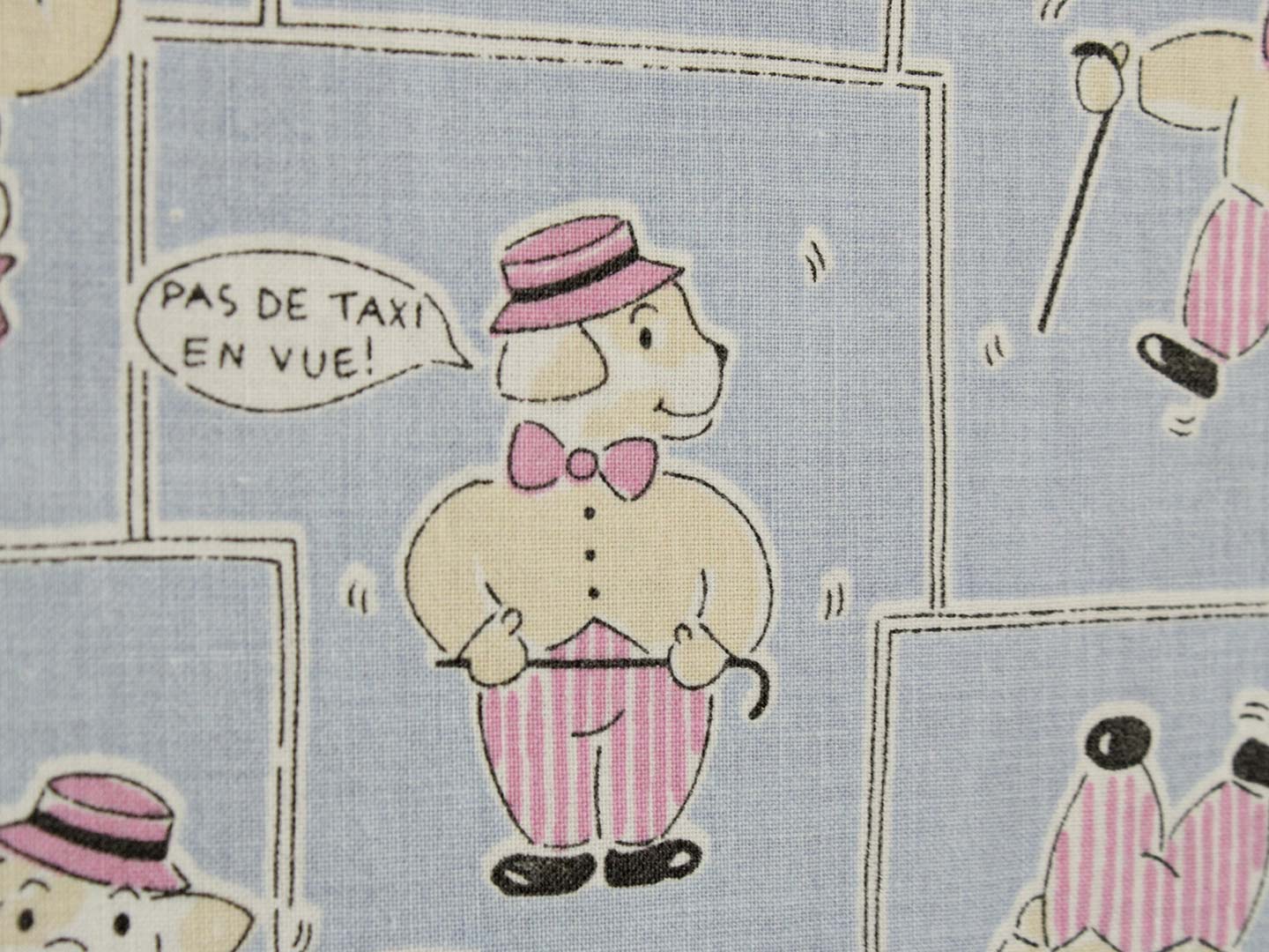 シルクハットをかぶったワンちゃん柄のファブリック。