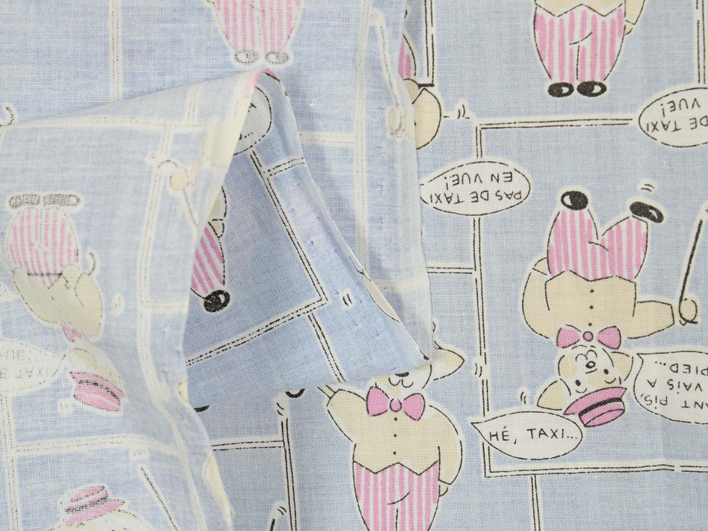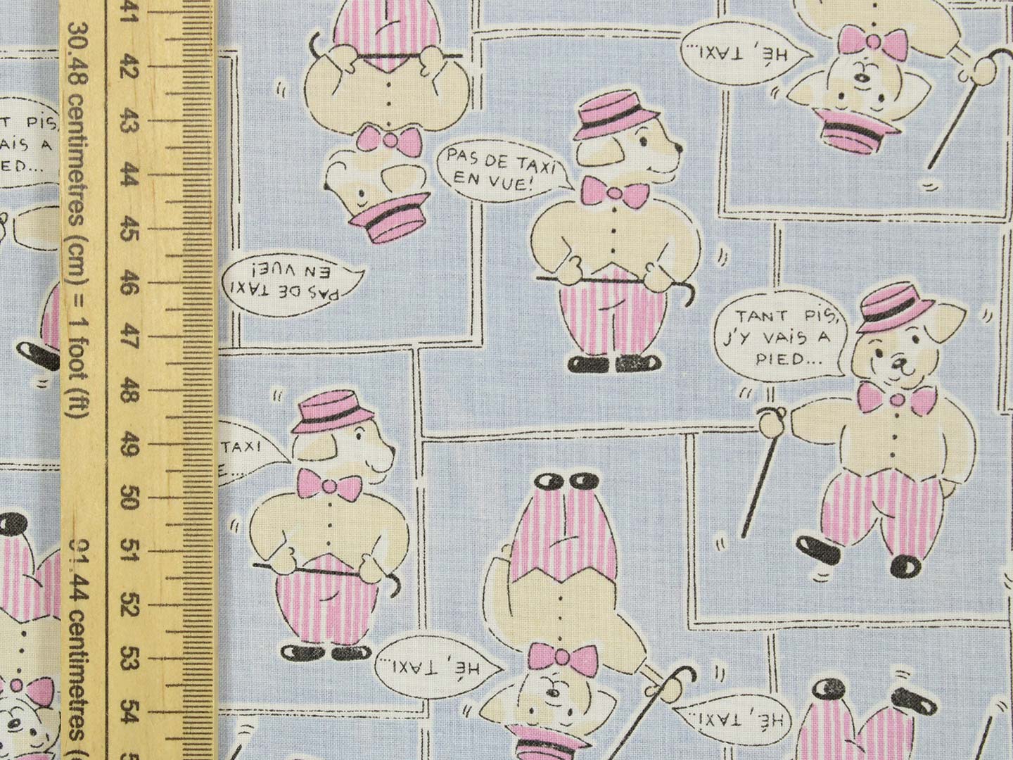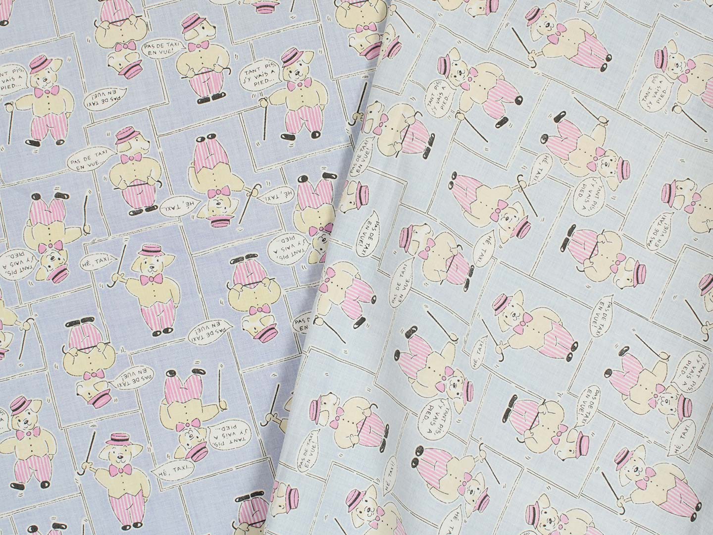 シルクハットをかぶったワンちゃん柄のファブリック。
