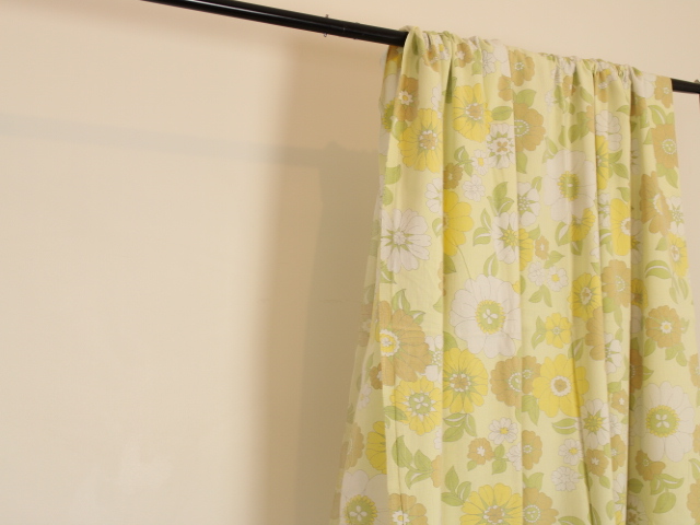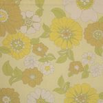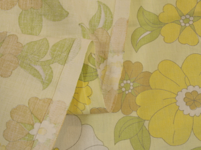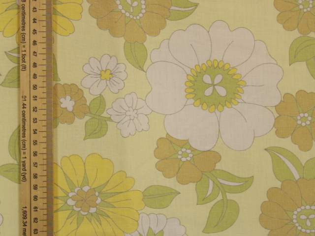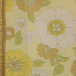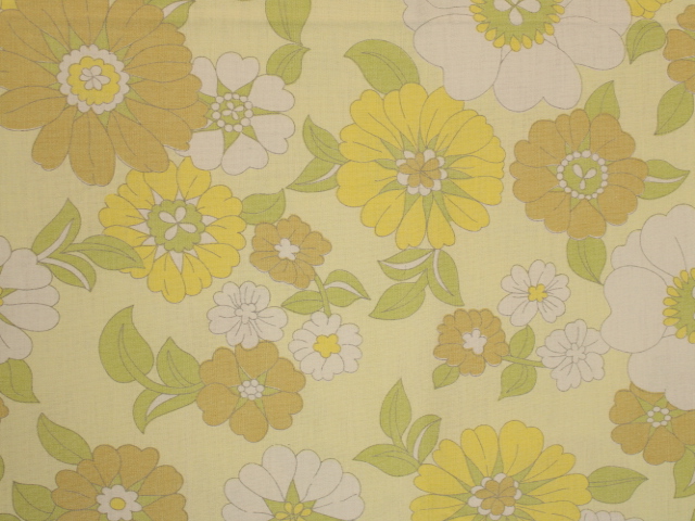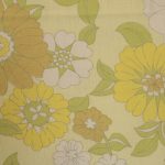 うすい黄色地にレトロな花柄ファブリック。