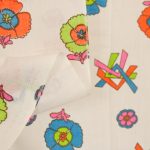 レトロポップな花柄パターン。蛍光色のようなハッキリとした色合いが可愛いデザインです。