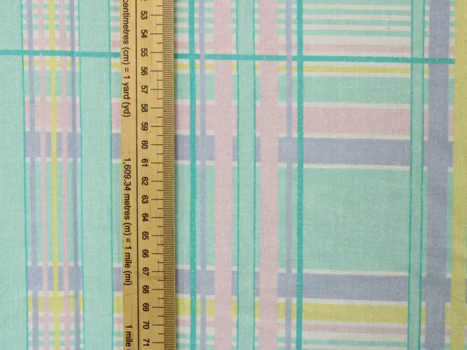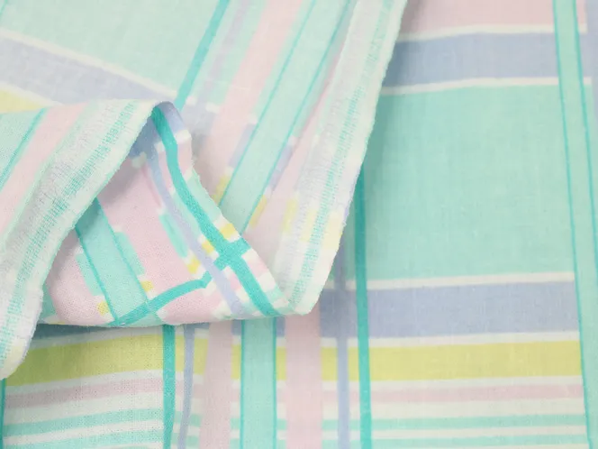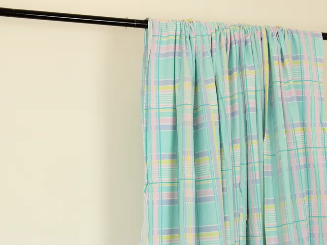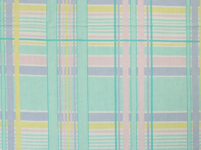 ミントグリーン、ピンク、黄色のパステルカラーが爽やかなプリントタータンチェック地です。