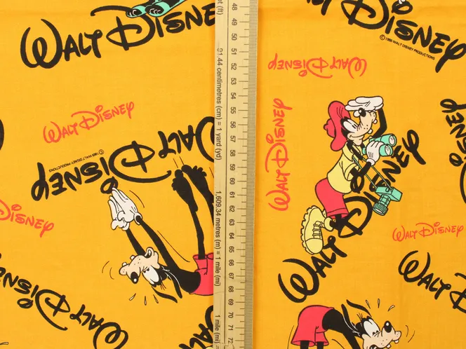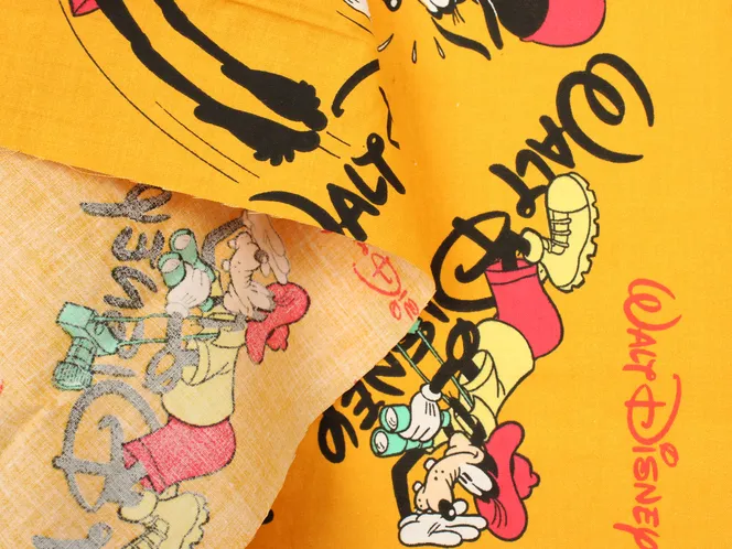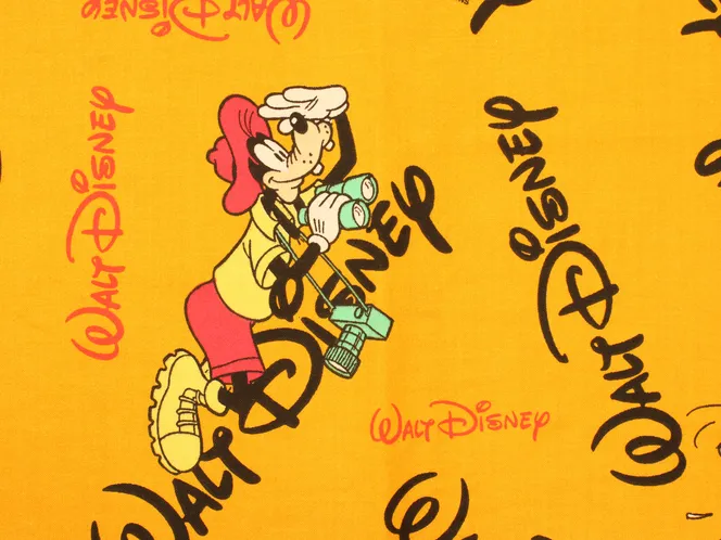 スイミングや探検家、バカンス風のグーフィーが可愛いデザインのヴィンテージファブリック。