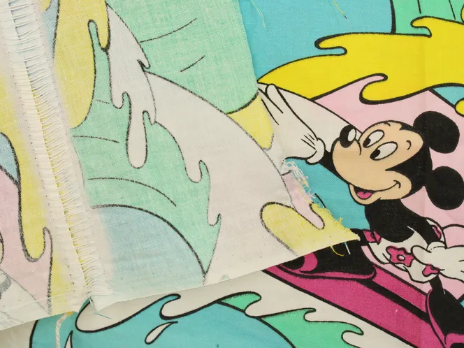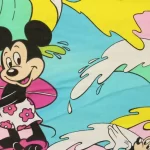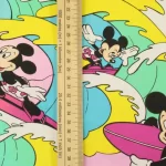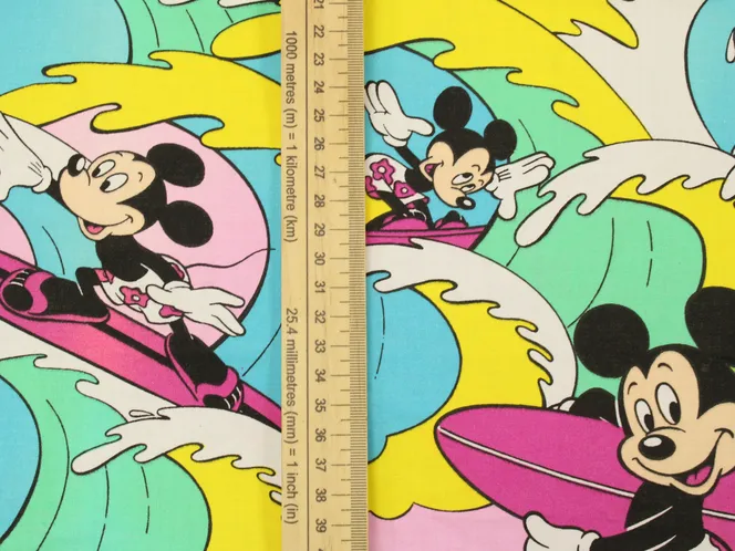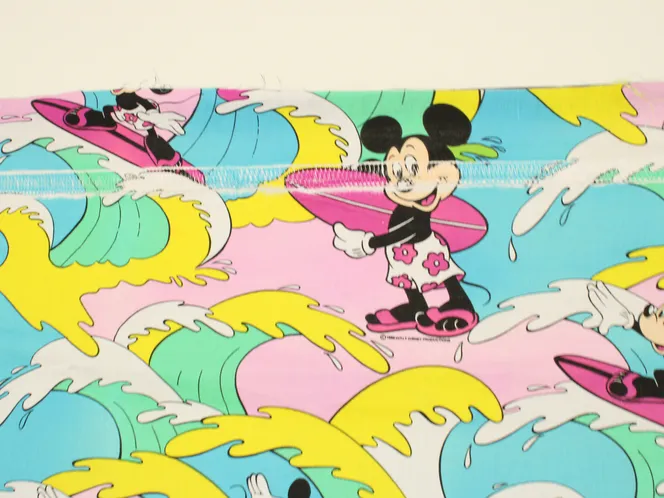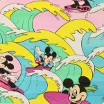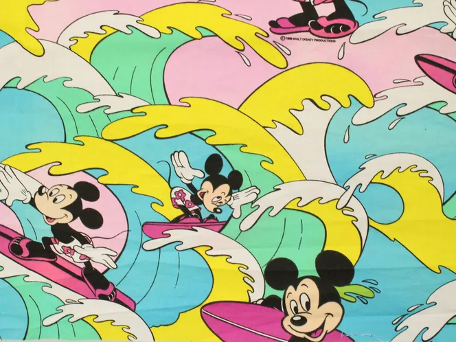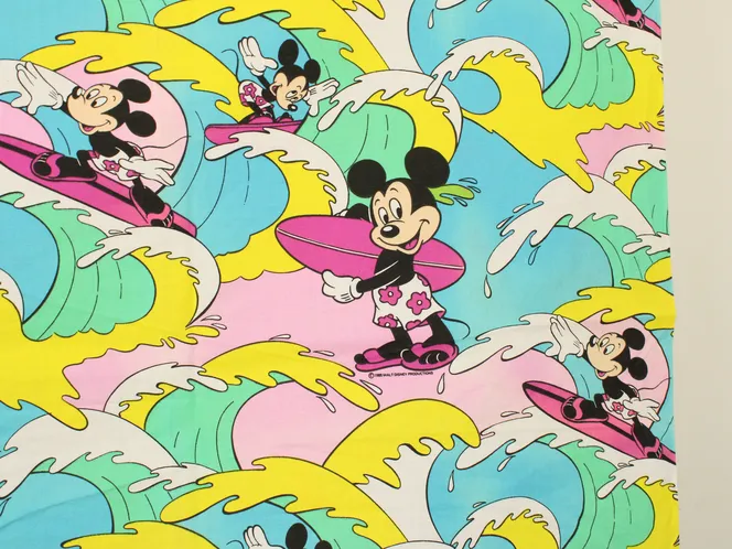 カラフルな波にもまれるサーフィンミッキーのヴィンテージファブリック。ピンクバージョン。