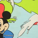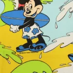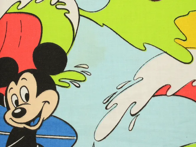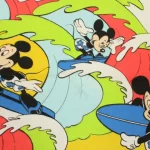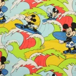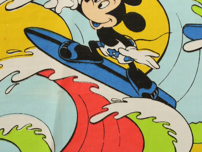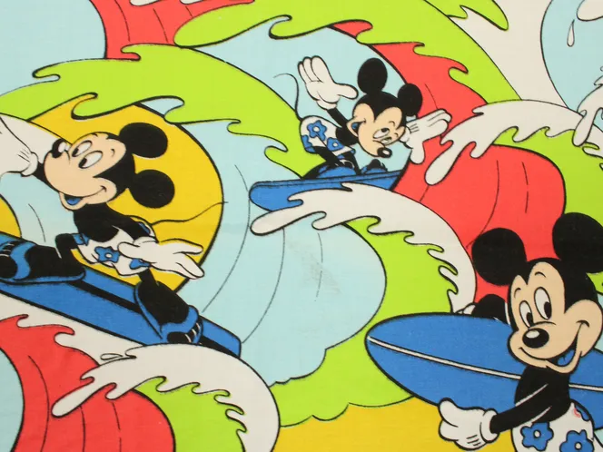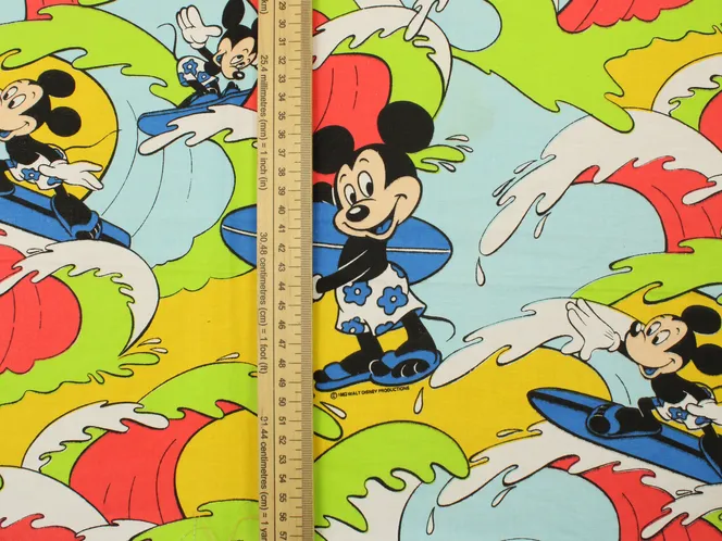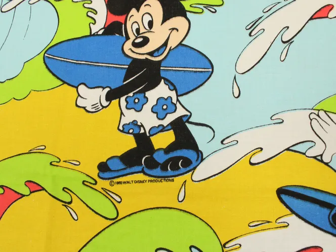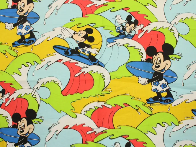 カラフルな波にもまれるサーフィンミッキーのヴィンテージファブリック。ブルーバージョン。