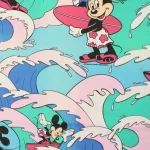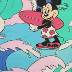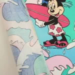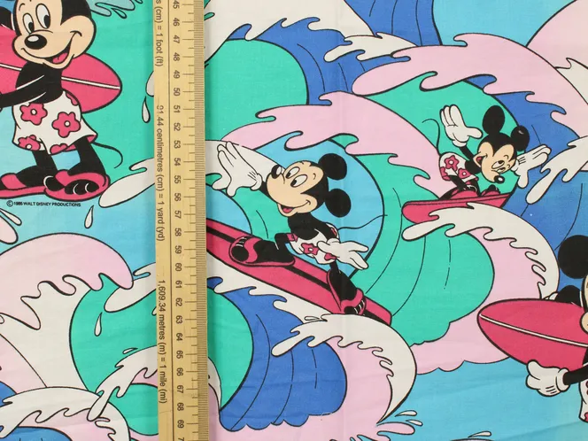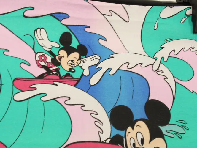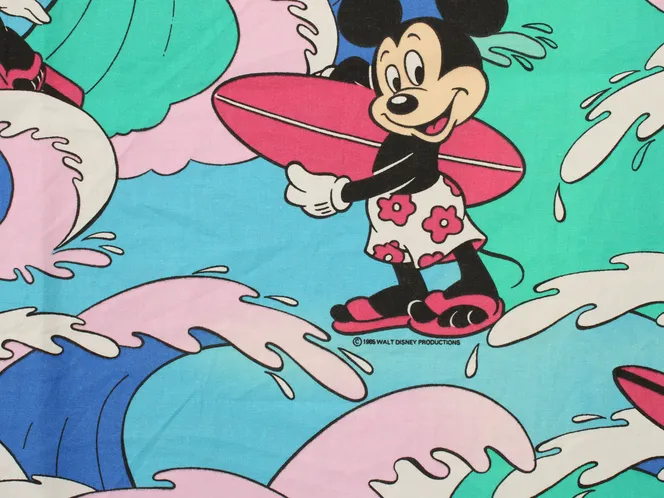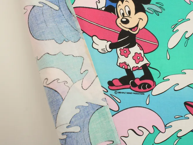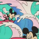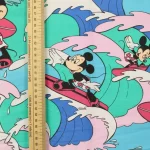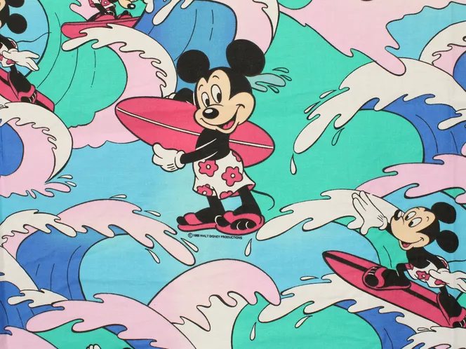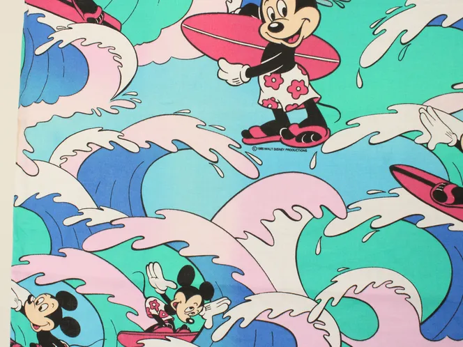カラフルな波にもまれるサーフィンミッキーのヴィンテージファブリック。ピンクバージョン。