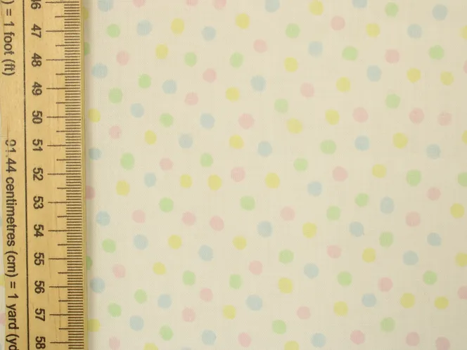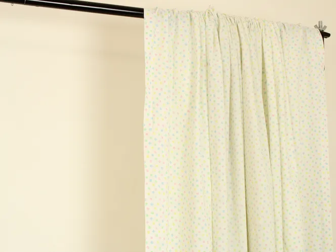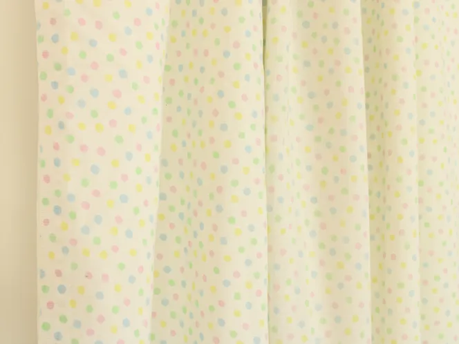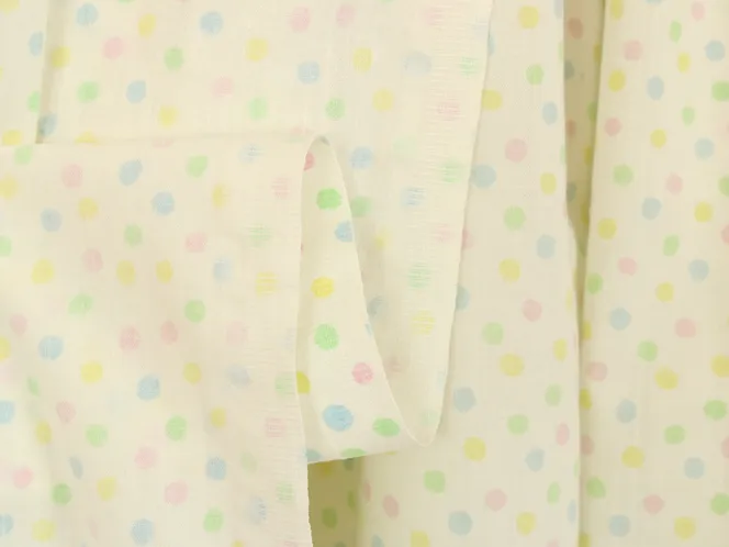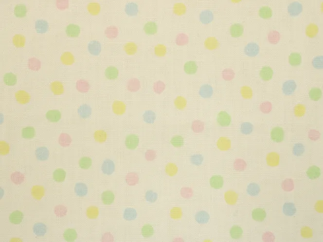 白地に淡いパステルカラーの小さなドット模様。