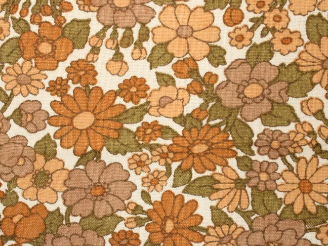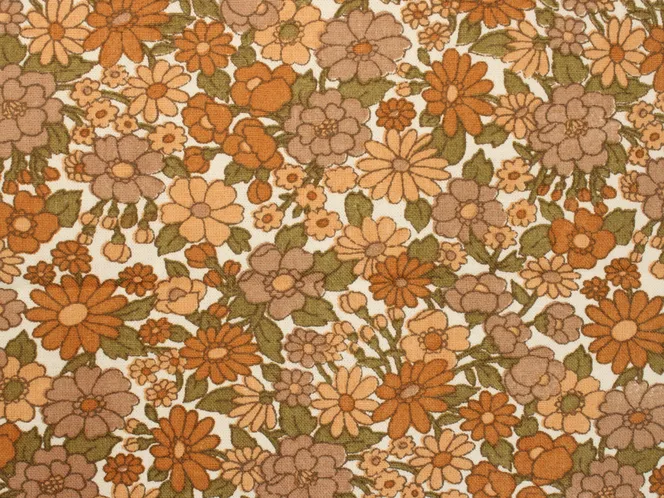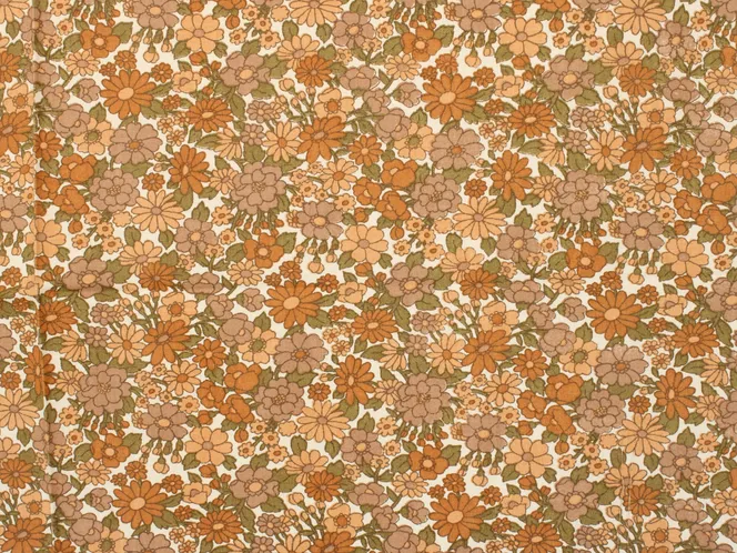 くすみがかったピンクと濃茶、モスグリーンがシックな印象の小花柄。