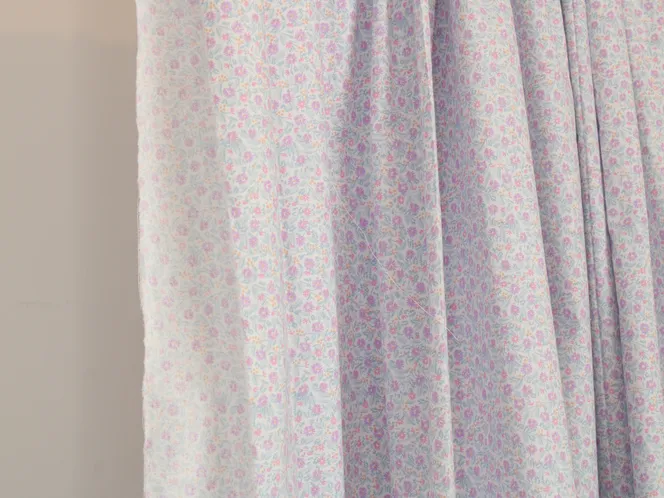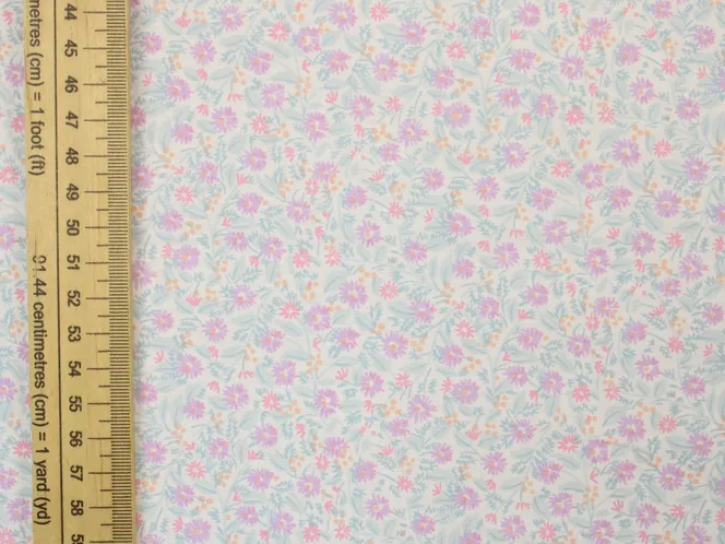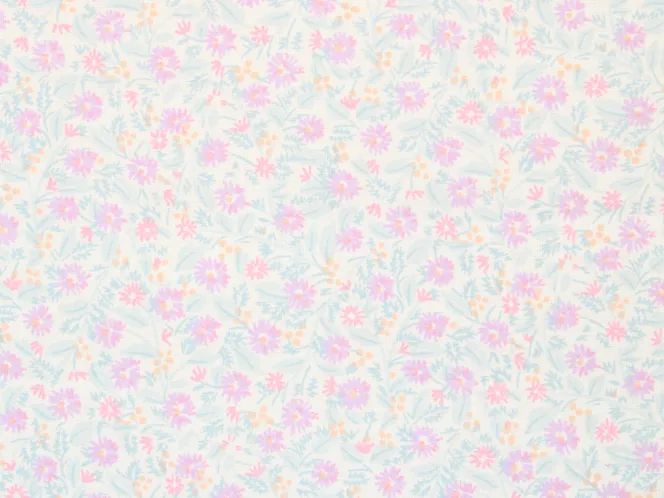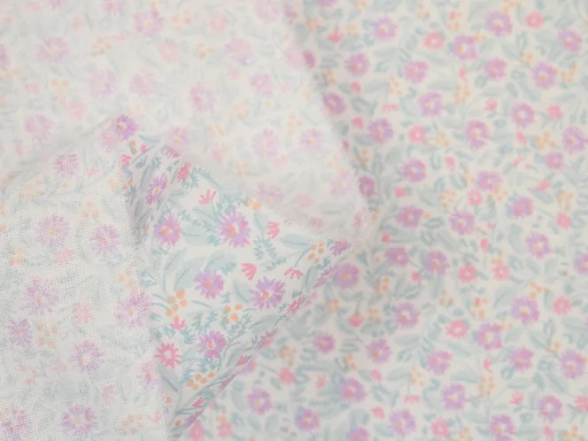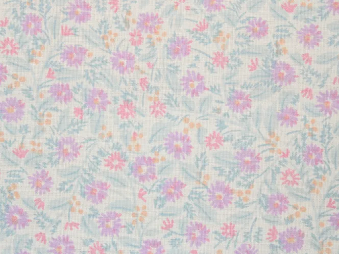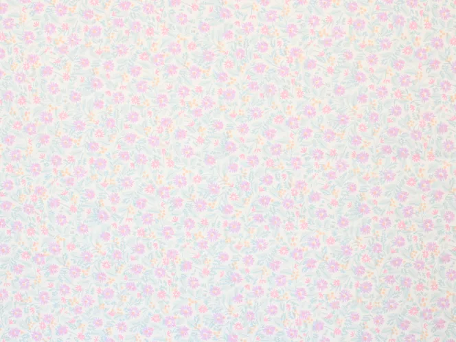 小さくて繊細な小花柄。ピンクとパープル、オレンジの明るく可愛い印象です。