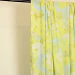 明るい黄色と水色の爽やかな色合い。