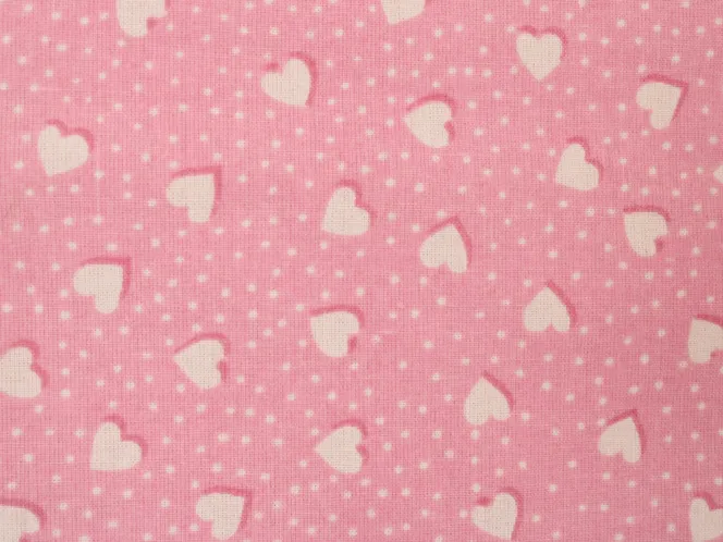 ドット背景に、小さなハートがランダムに並んだ可愛いデザインです。