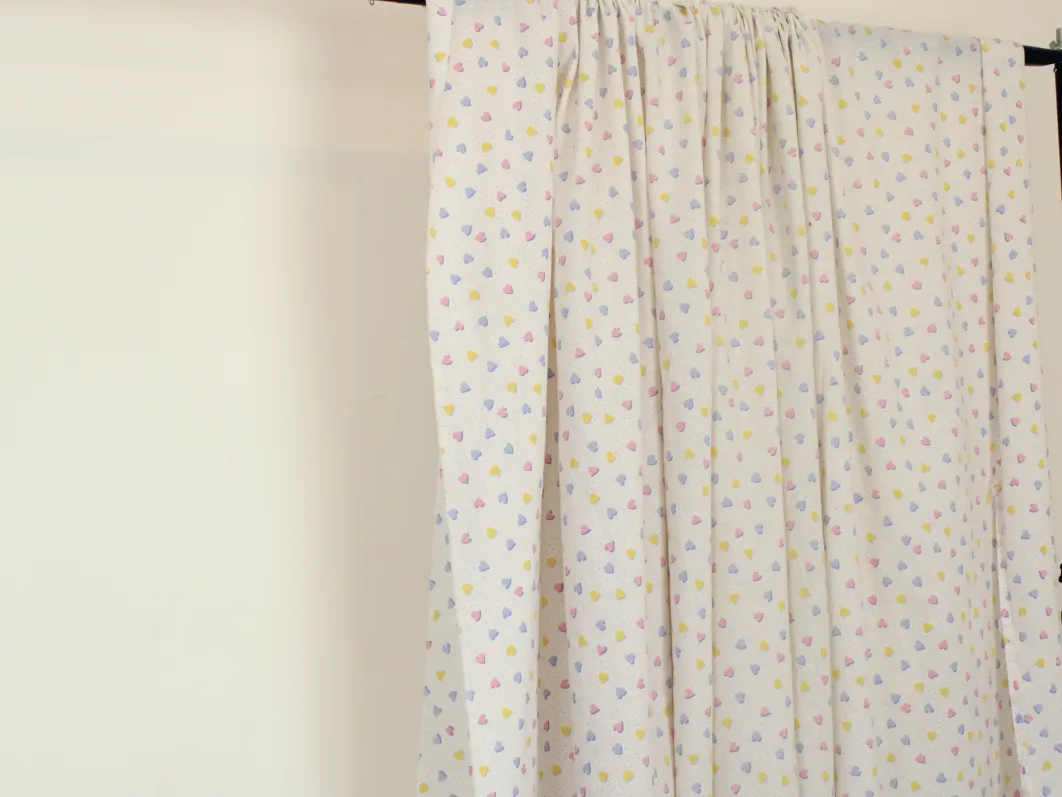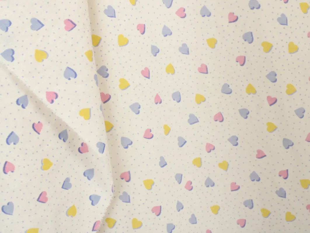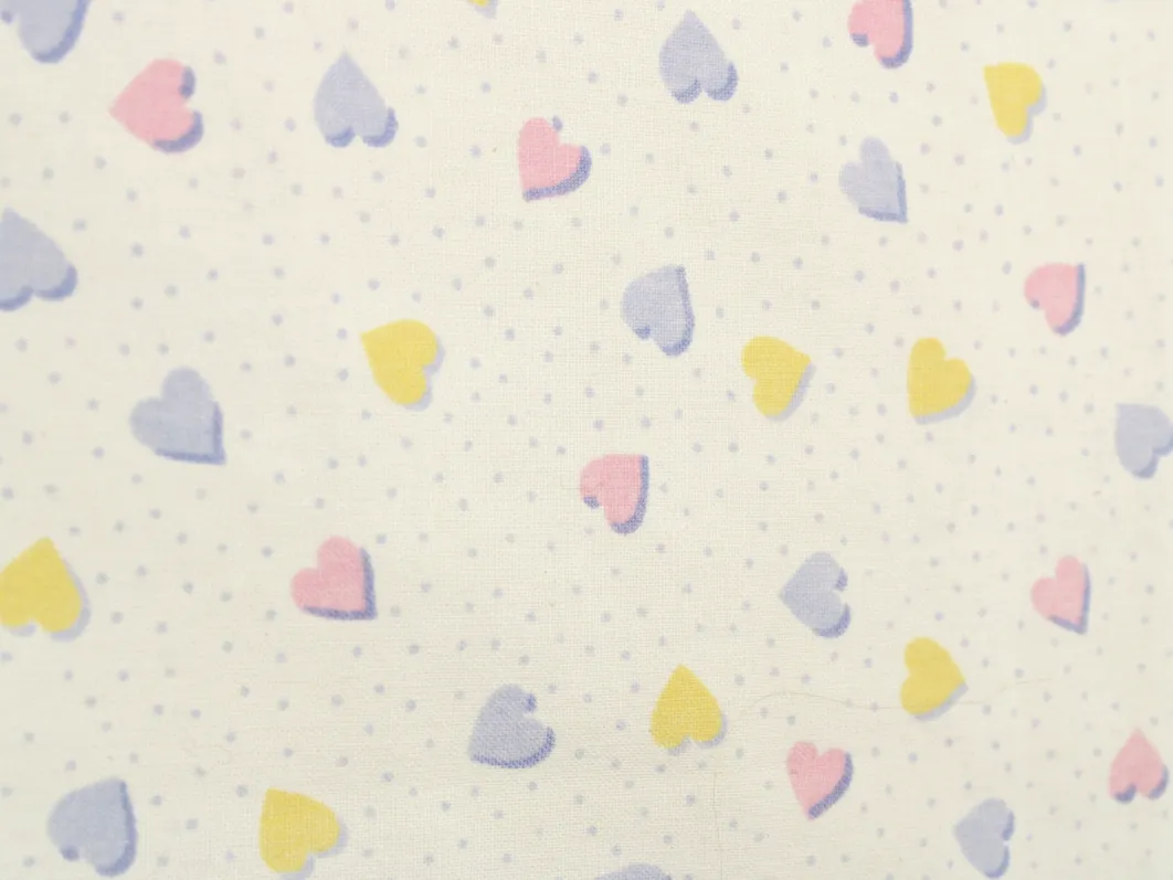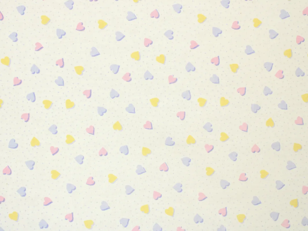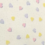 ドット背景に、小さなハートがランダムに並んだ可愛いデザインです。
