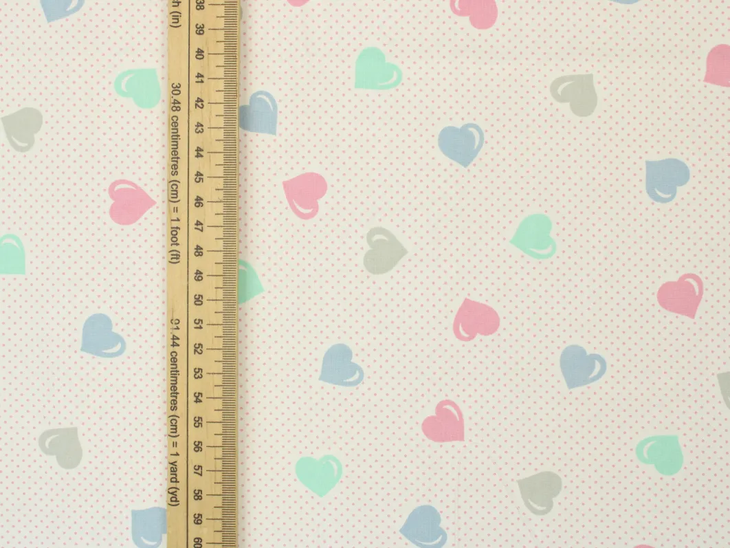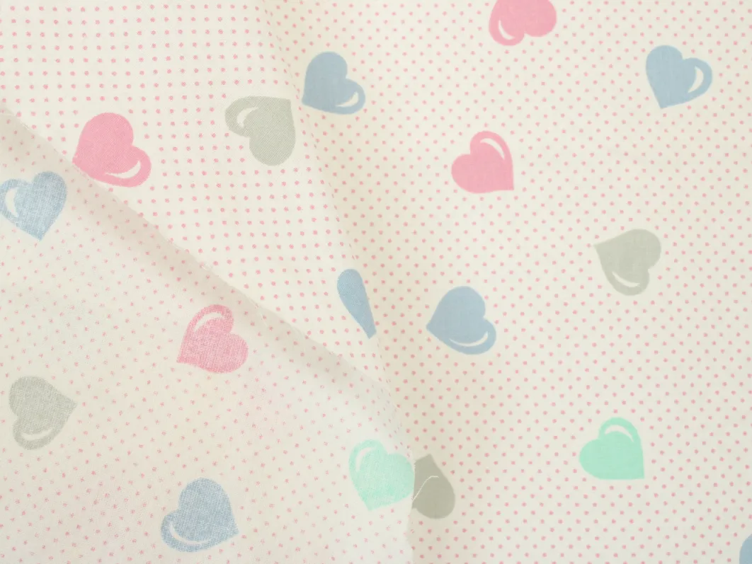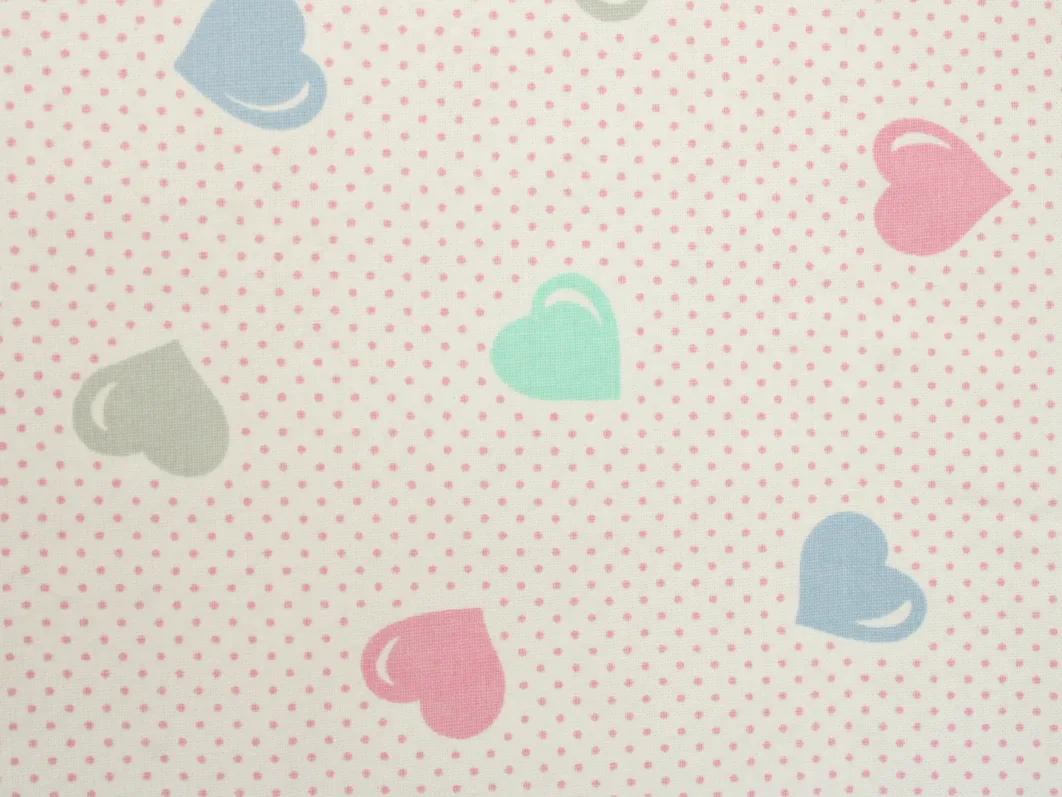 ピンクのドット地にまるいハートが可愛らしいデザイン。