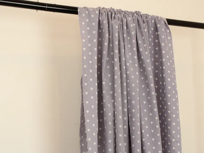 くすみがかった紫地に白いハートが並んだ、シンプルなデザイン。