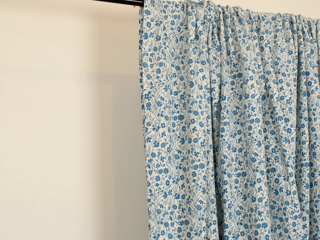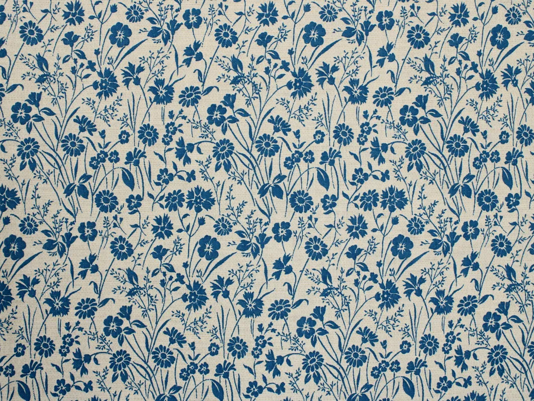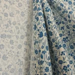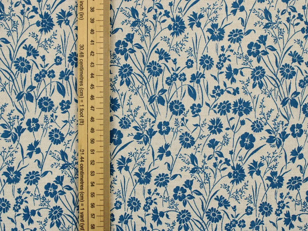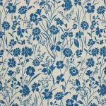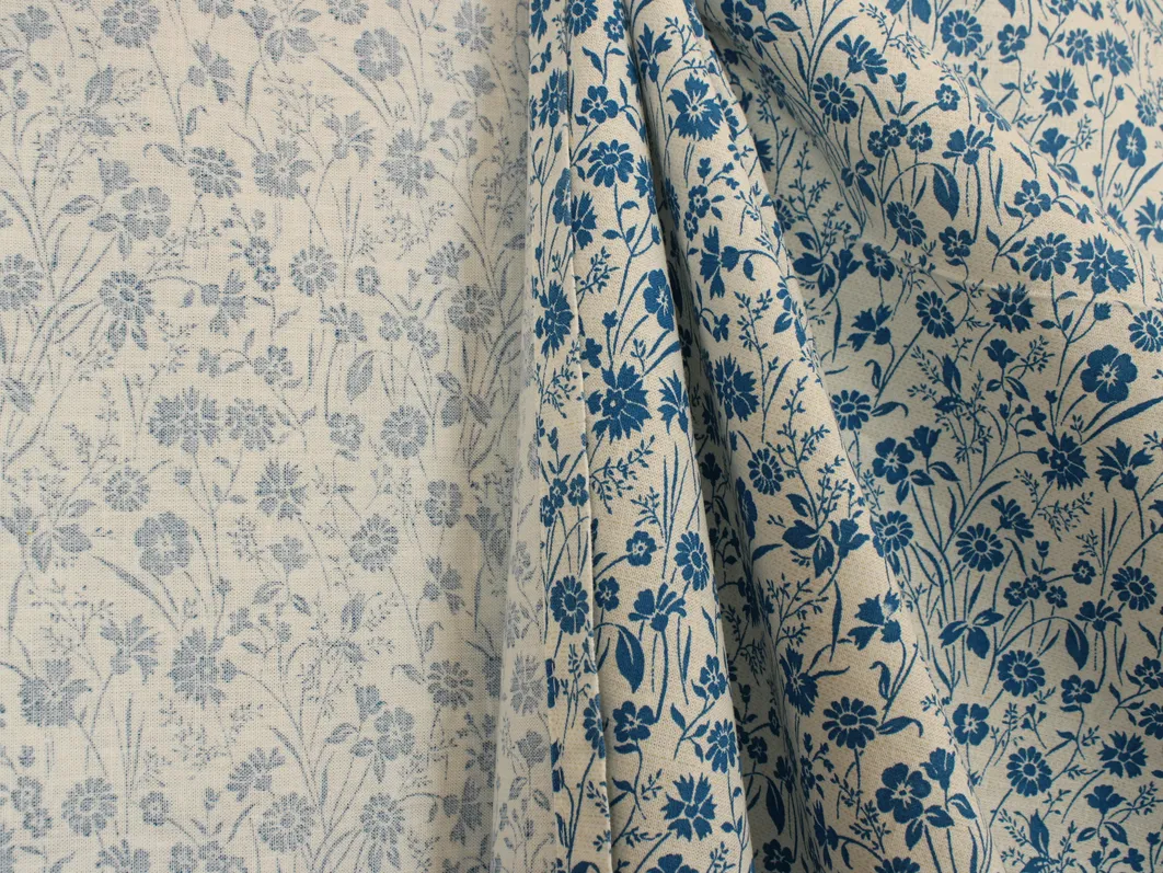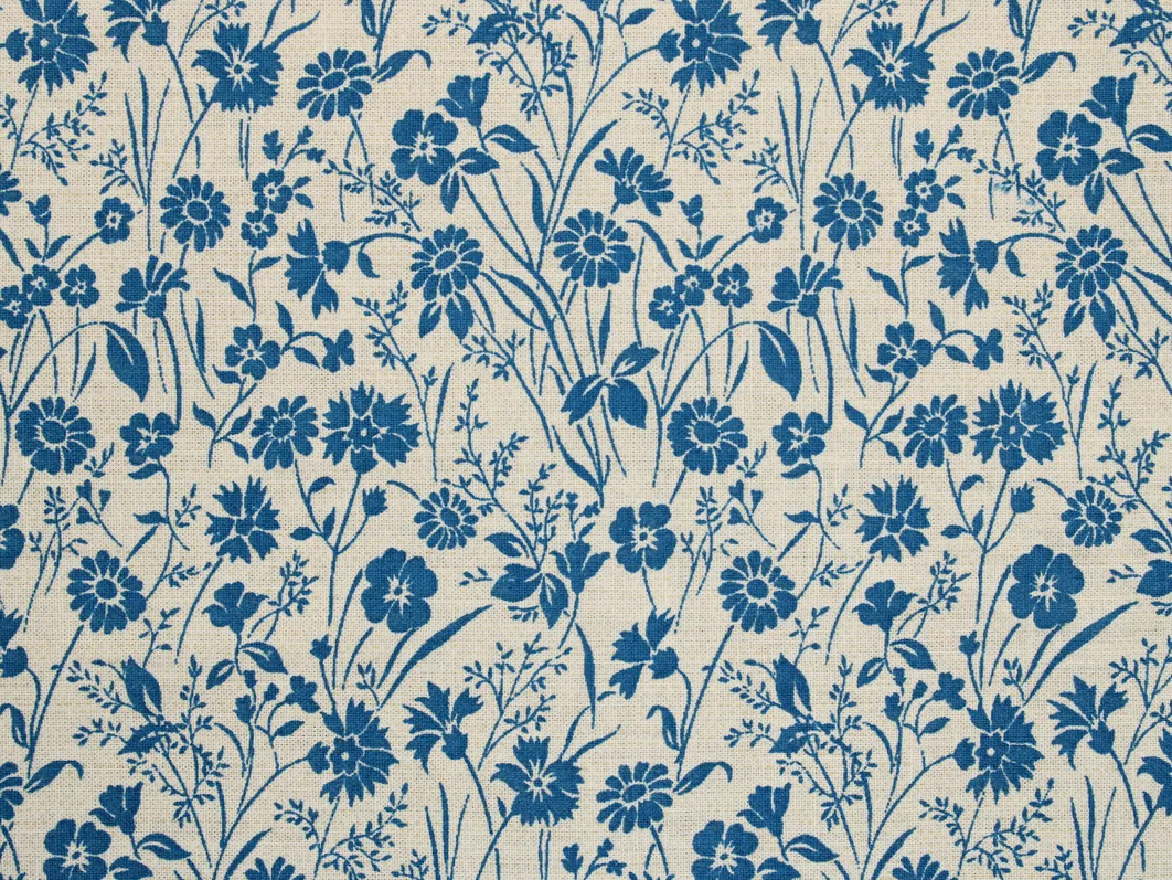 地色はベージュの自然な風合いで、花は少し緑味がかった深みのある青色です。