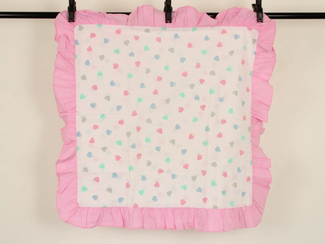 周囲にフリルのついたピローカバーです。