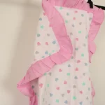 ピンクのドット地にハート柄。