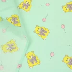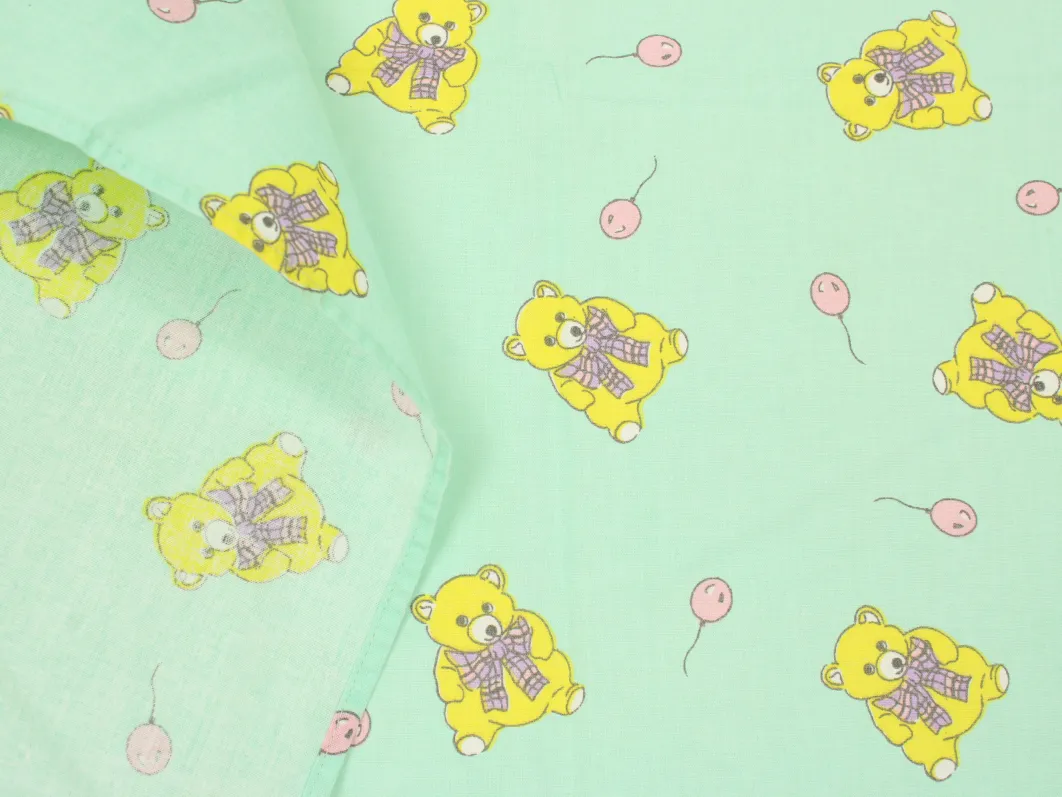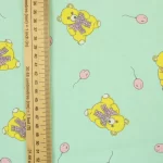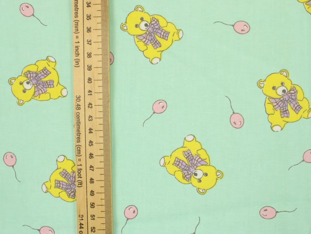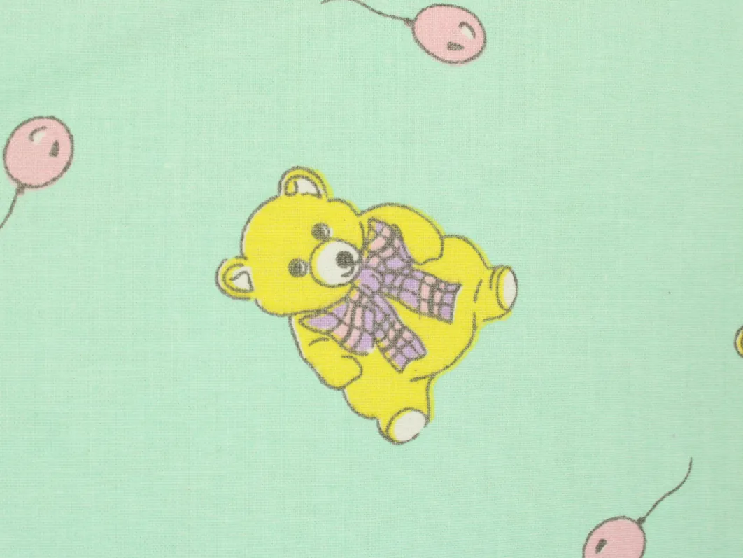 エメラルドグリーン地に小さな風船とテディベア柄。