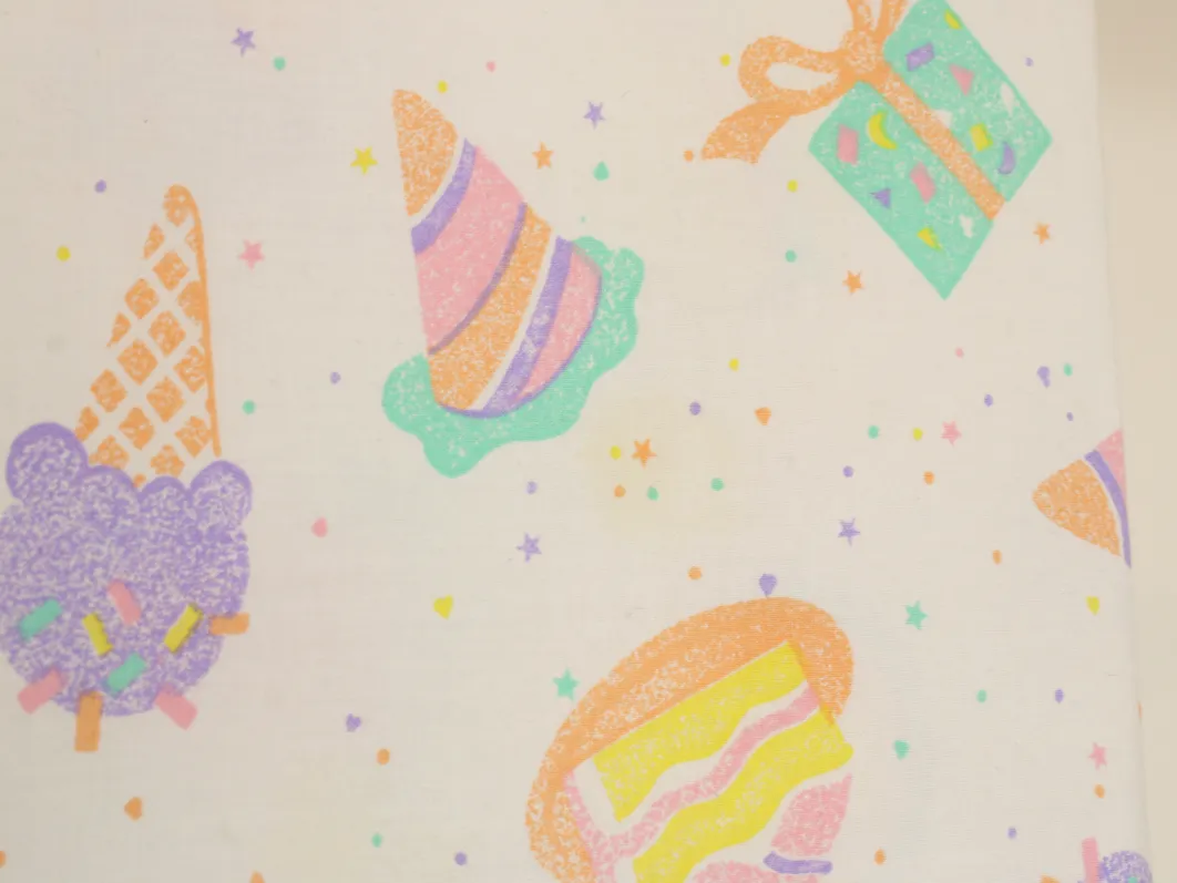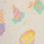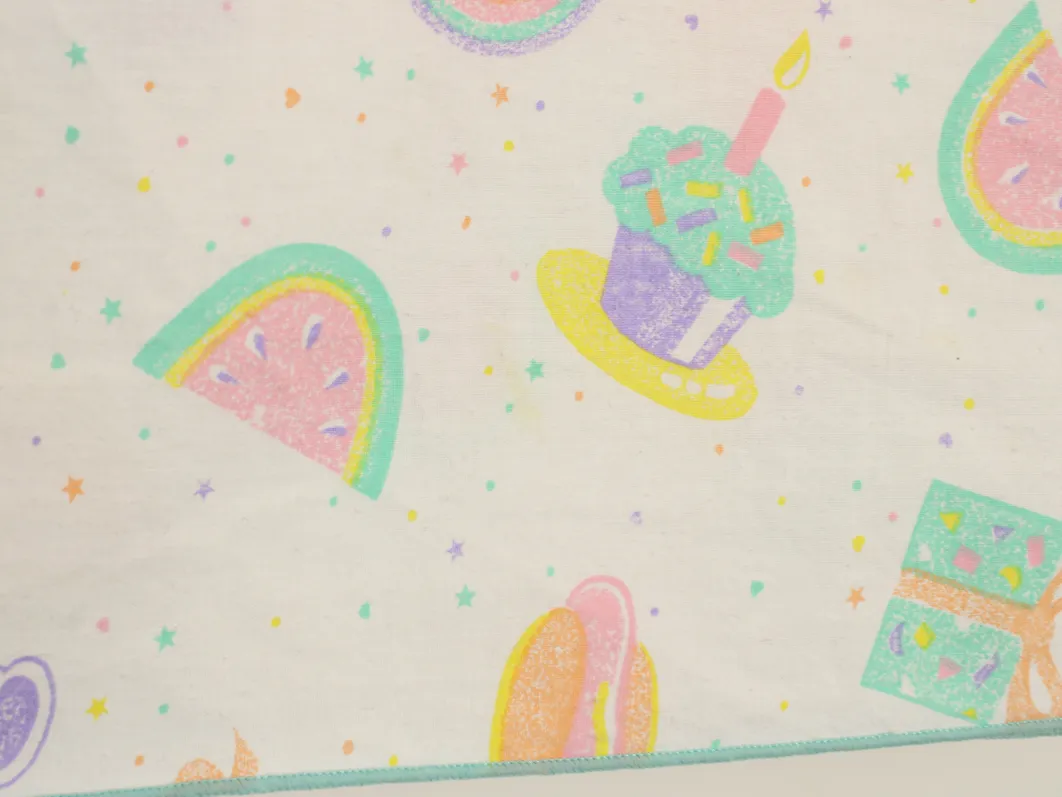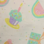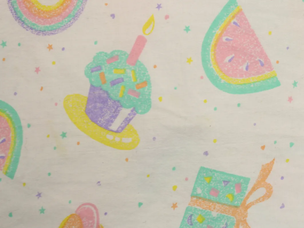 パステルカラーのたべものや星柄。