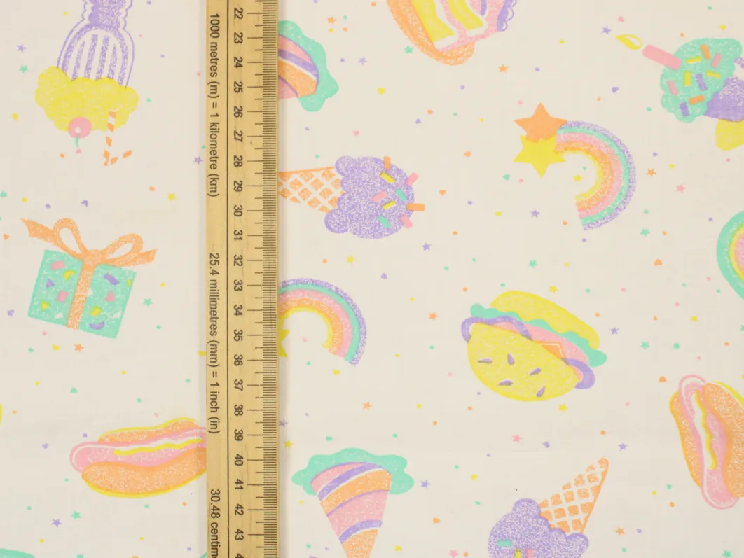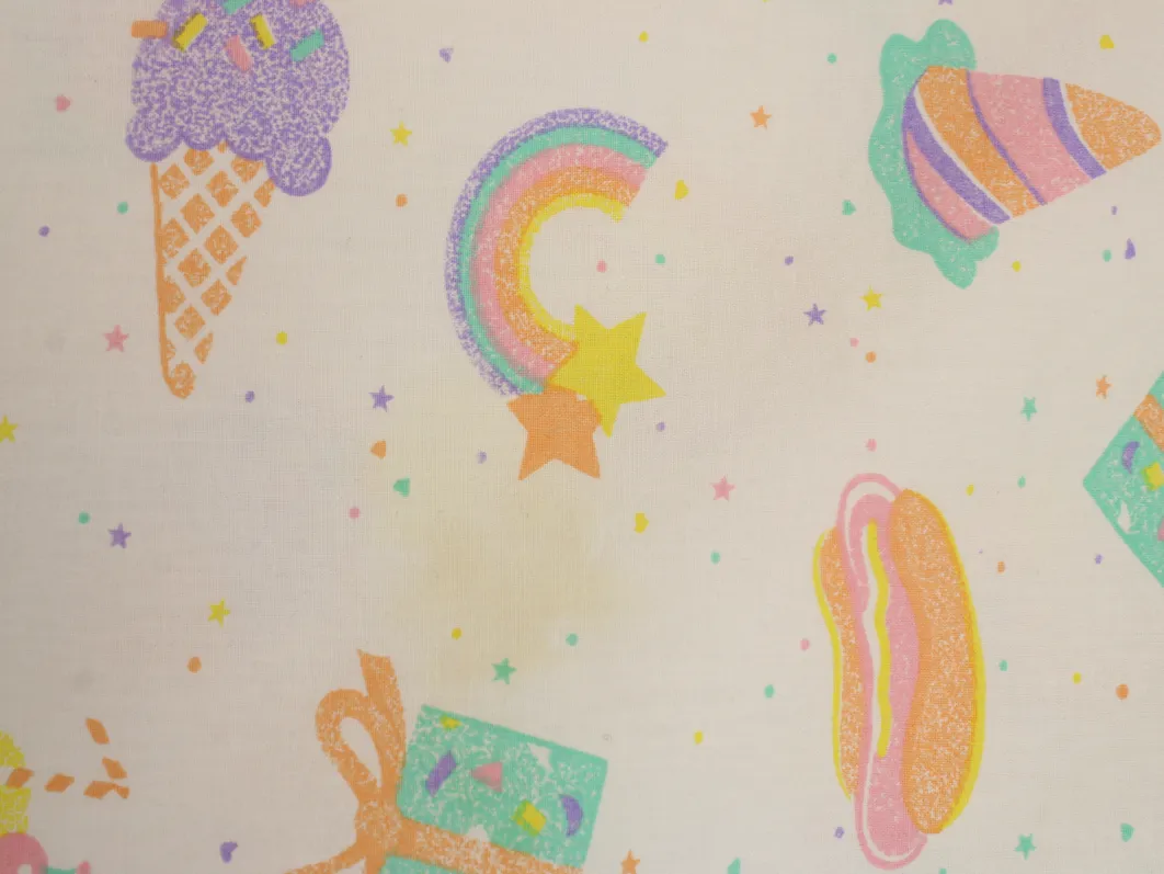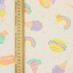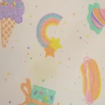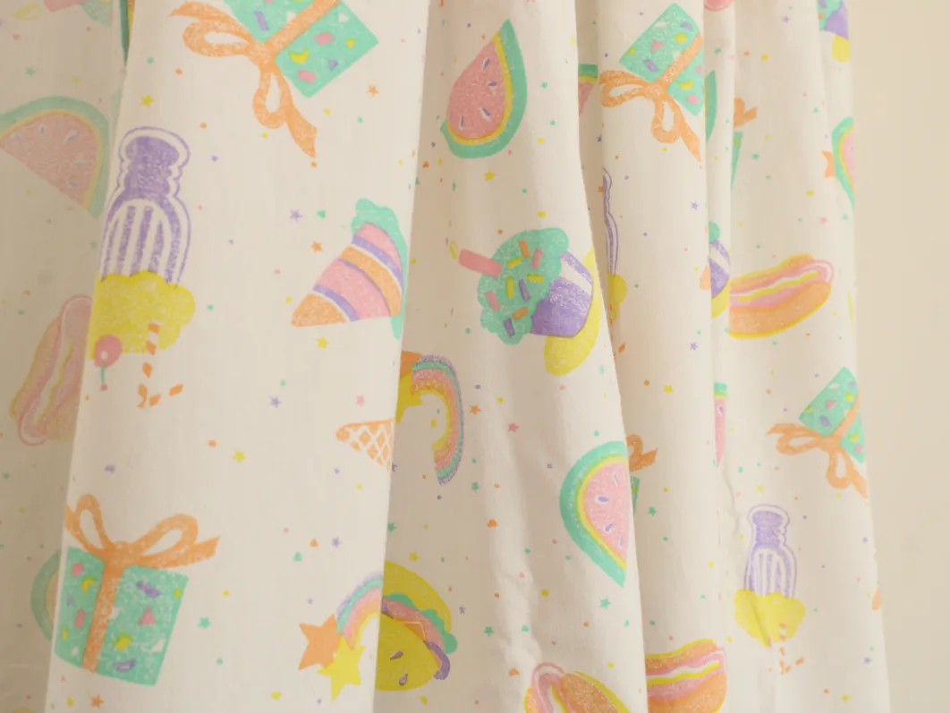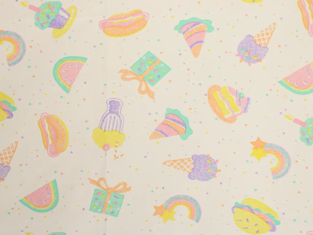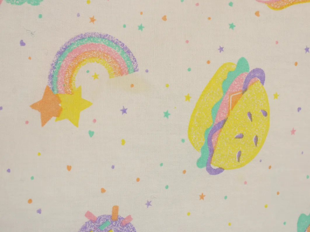 パステルカラーのたべものや星柄。