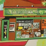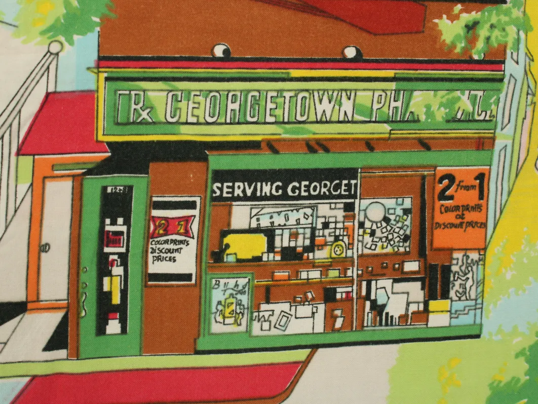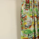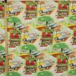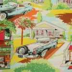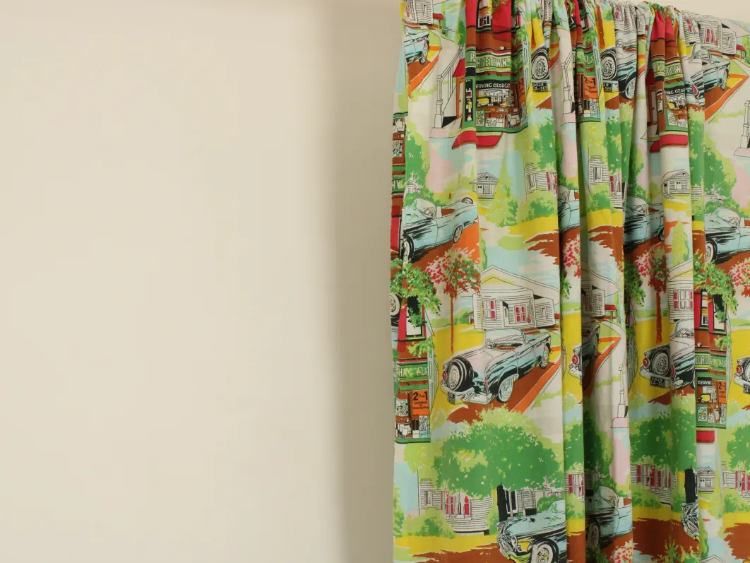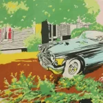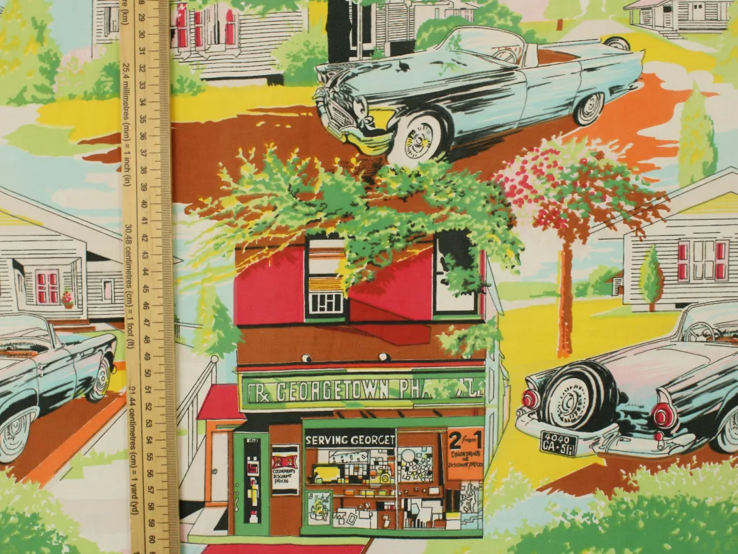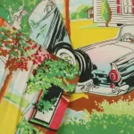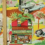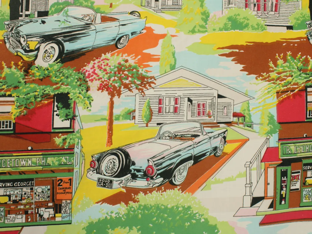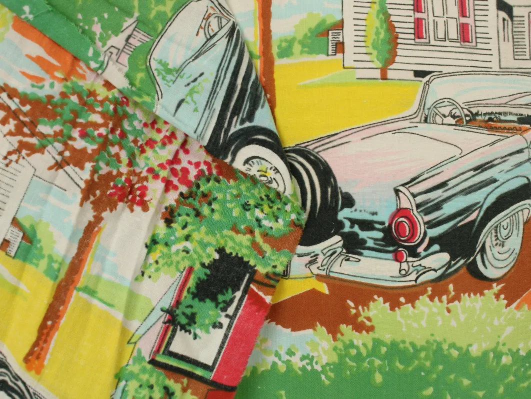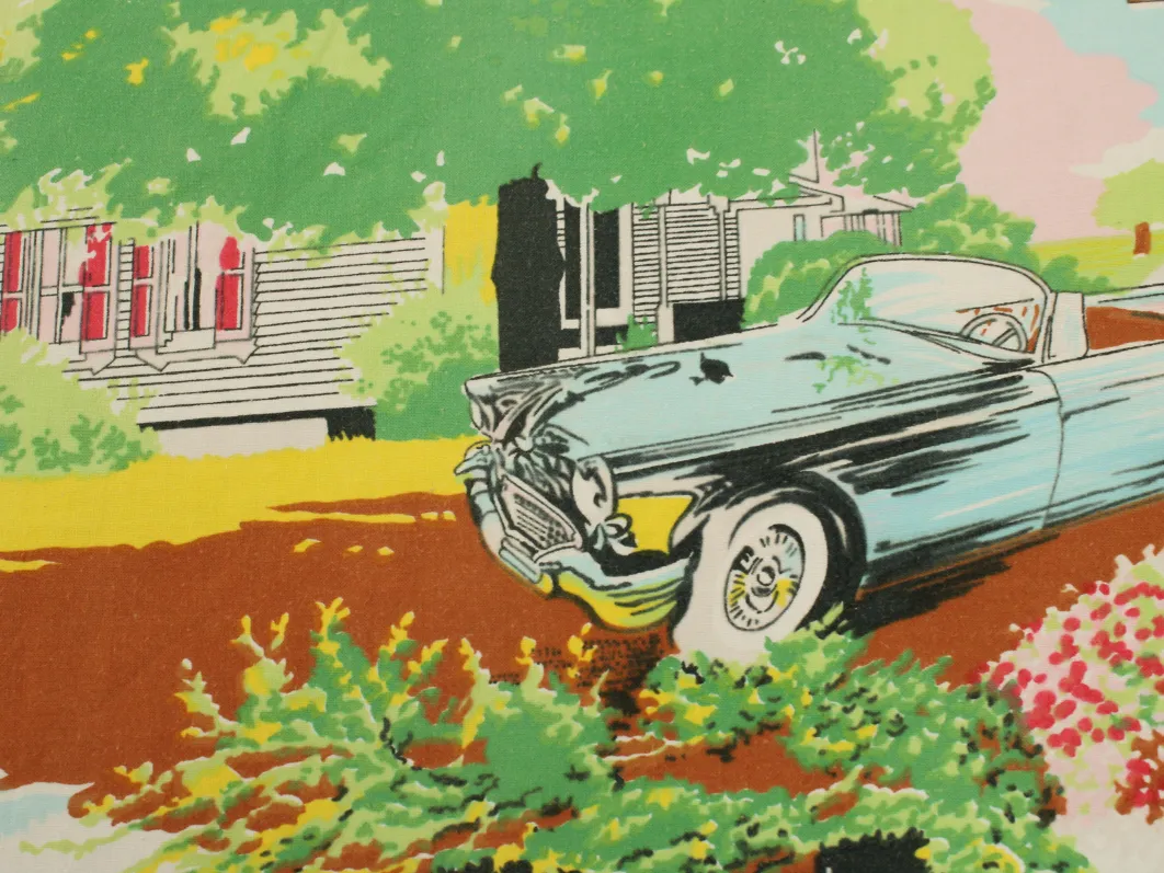 オープンカーのある風景が描かれた、レトロなイラスト柄。