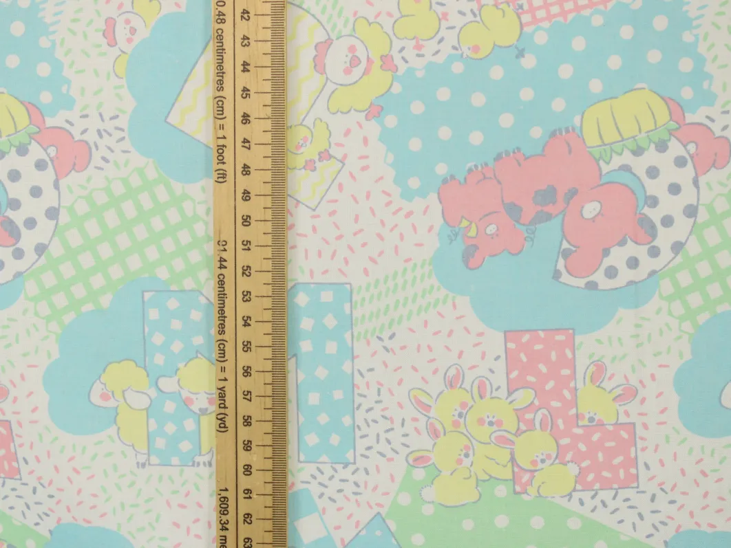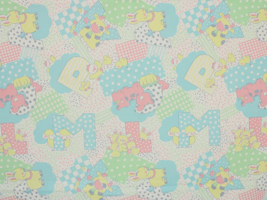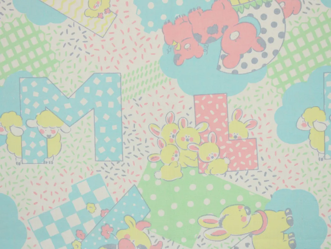 ウサギやヒツジなどの動物たちとアルファベットのベビー柄。