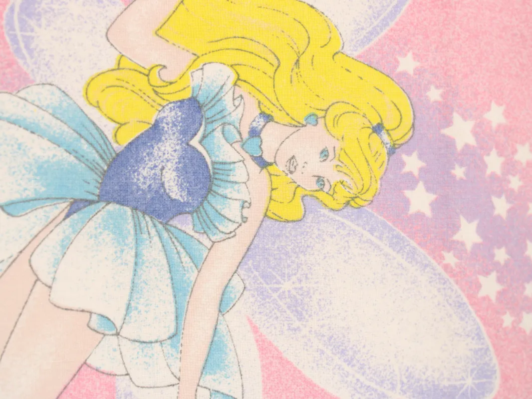 グラデーションピンクのキラキラとした背景がレトロファンシーなデザインです。