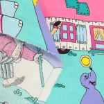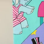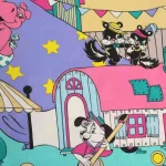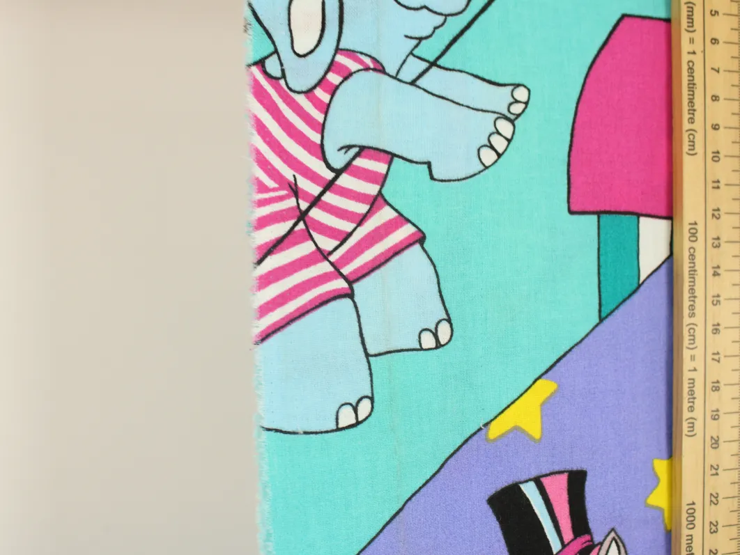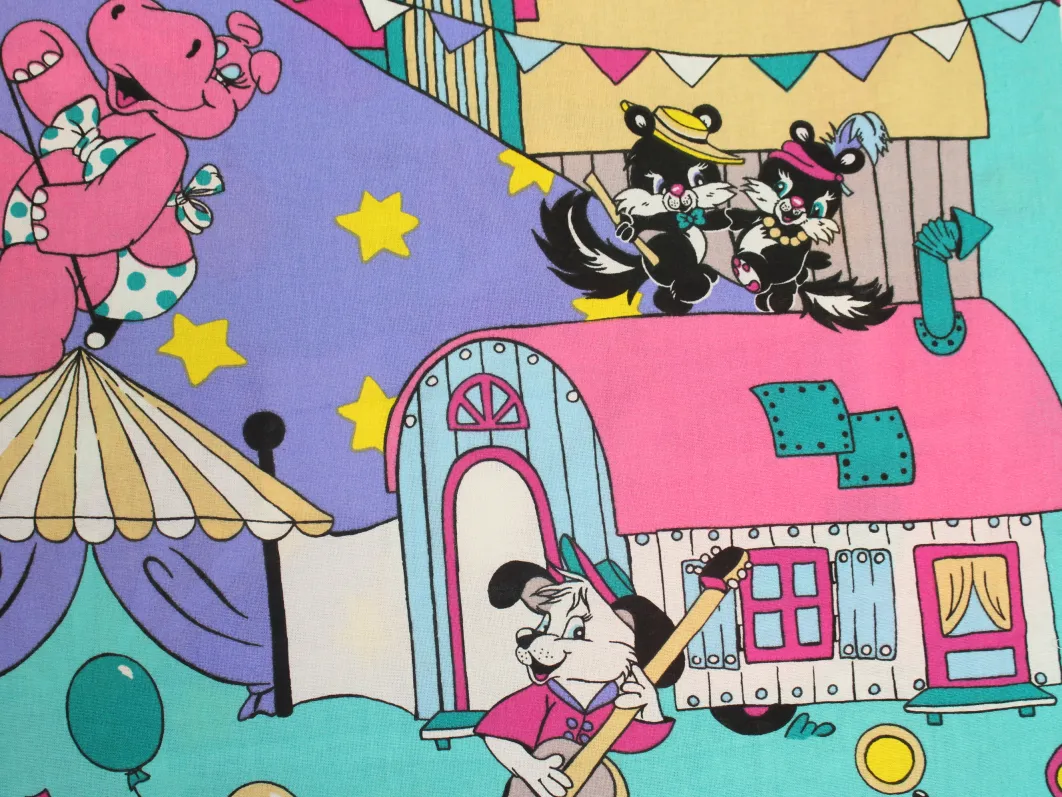 カラフルポップな動物たちのサーカス柄。