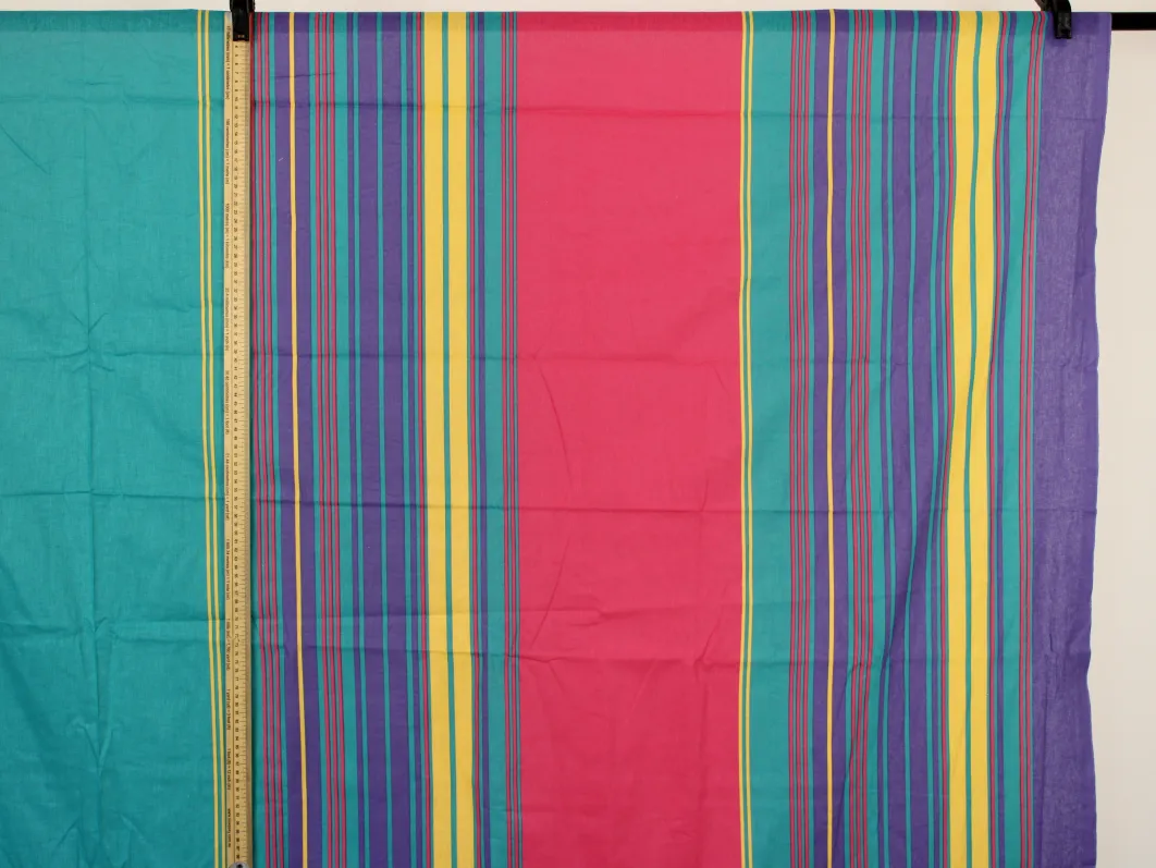 カラフルでレトロな色合いの変則ストライプ。