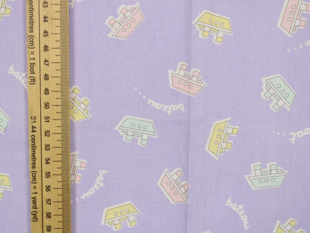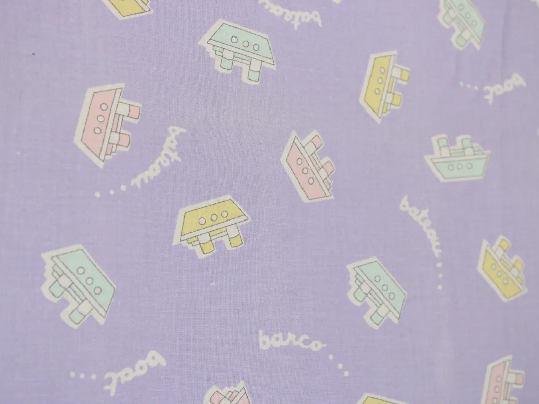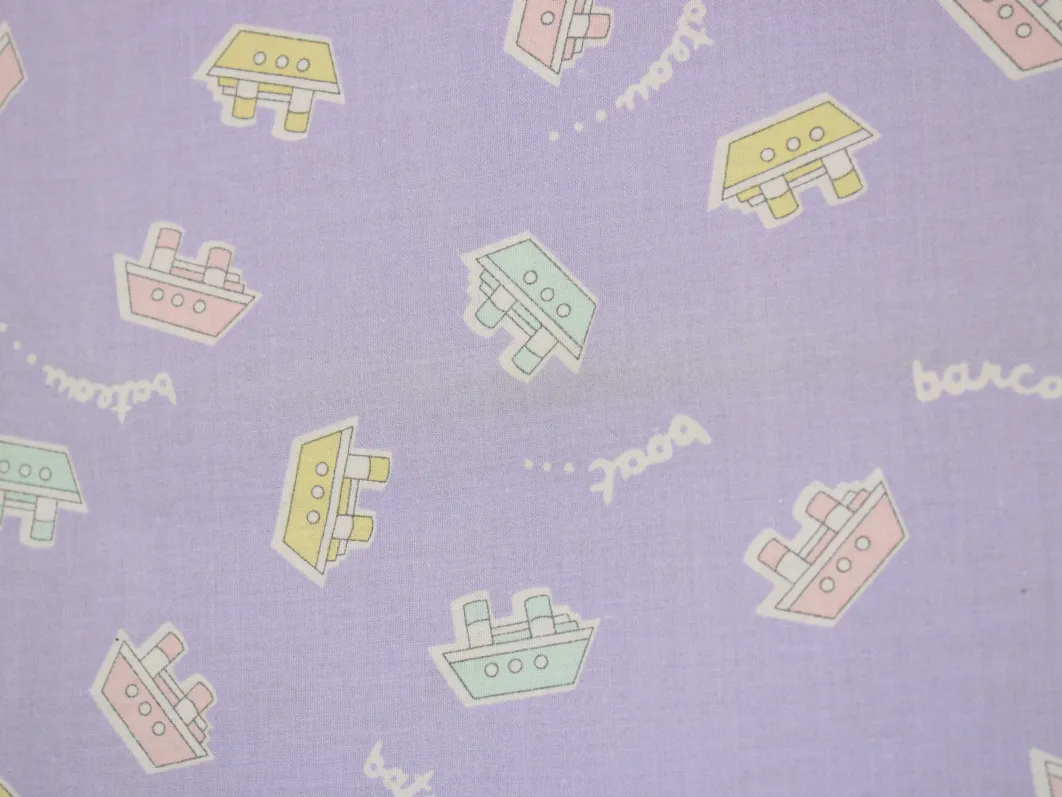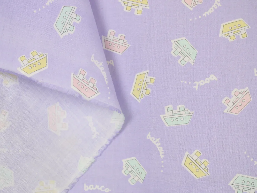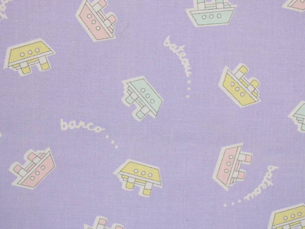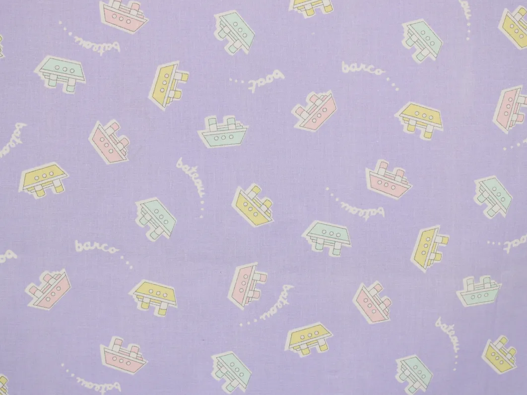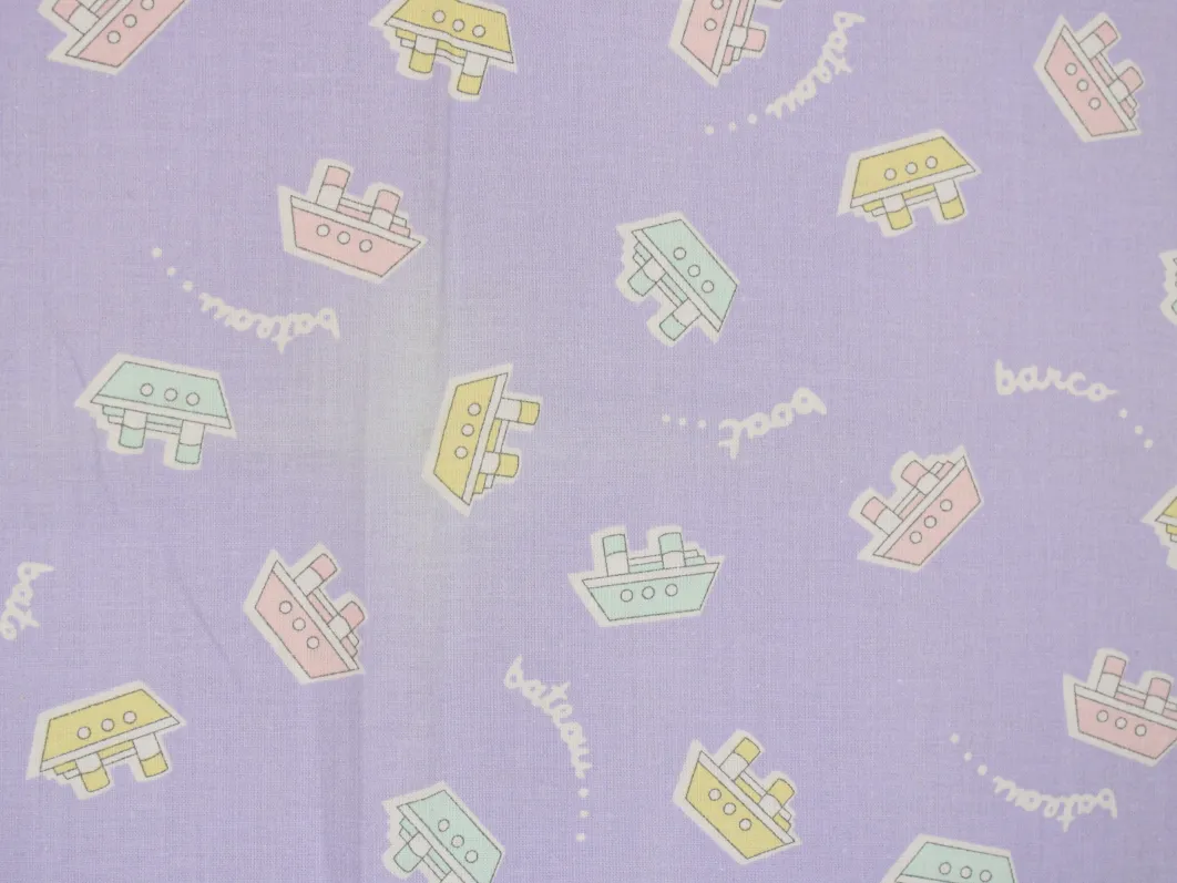 薄紫地にパステルカラーのボート柄。