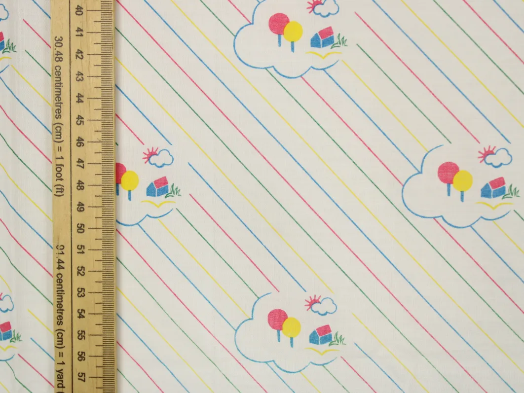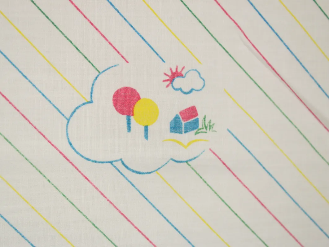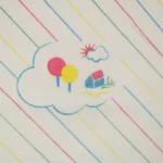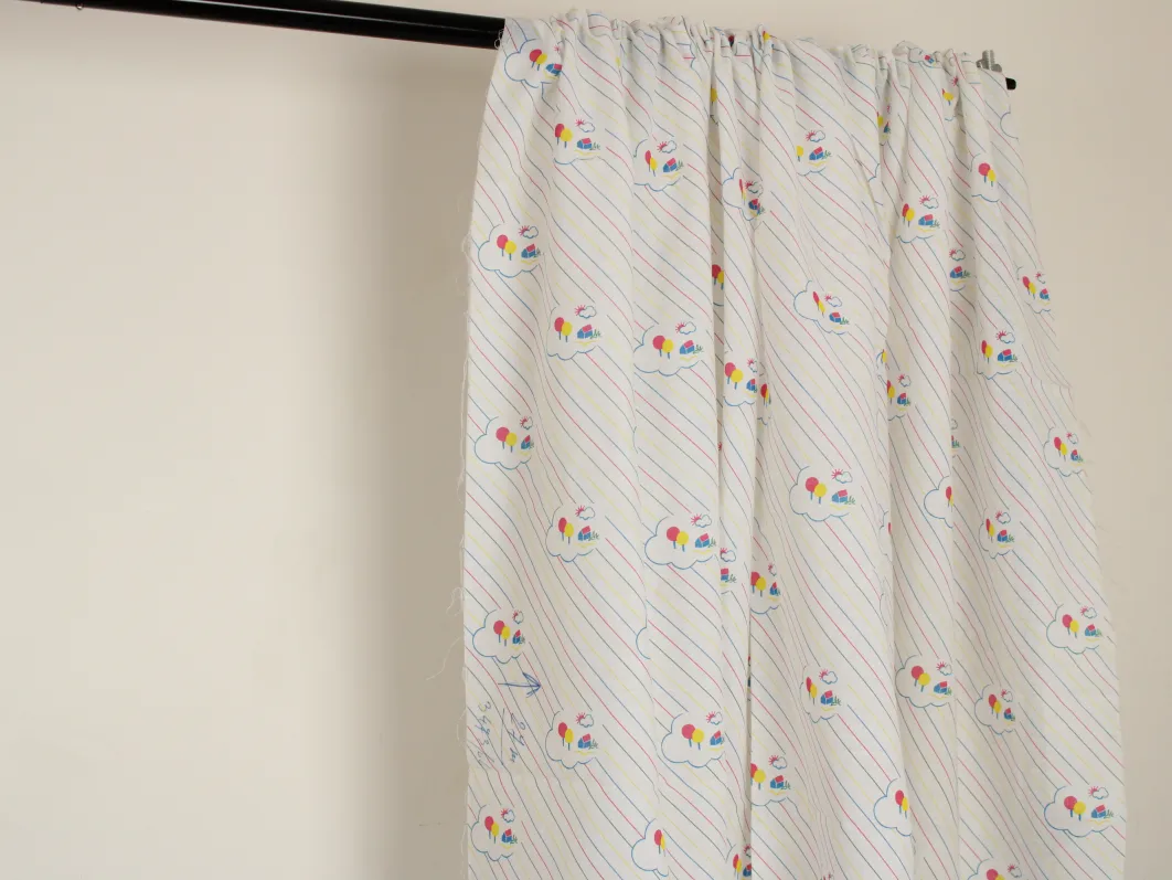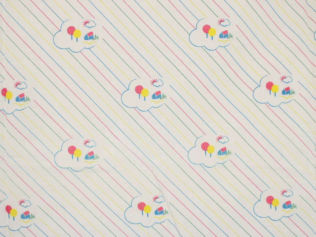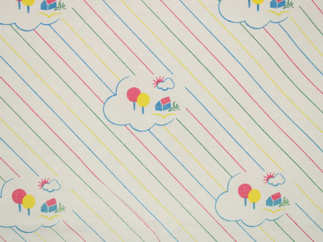 雲と家、木のシンプルなパターン柄。