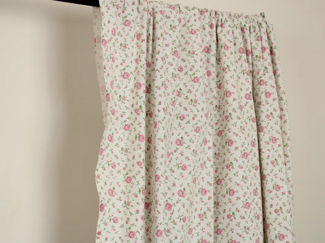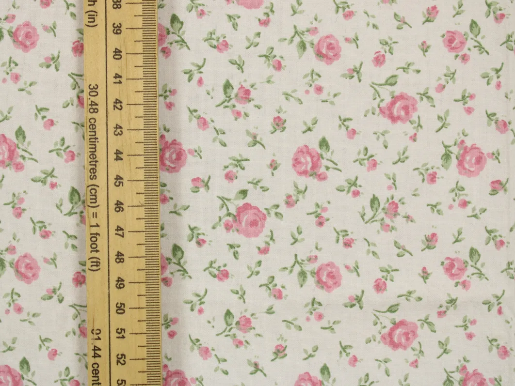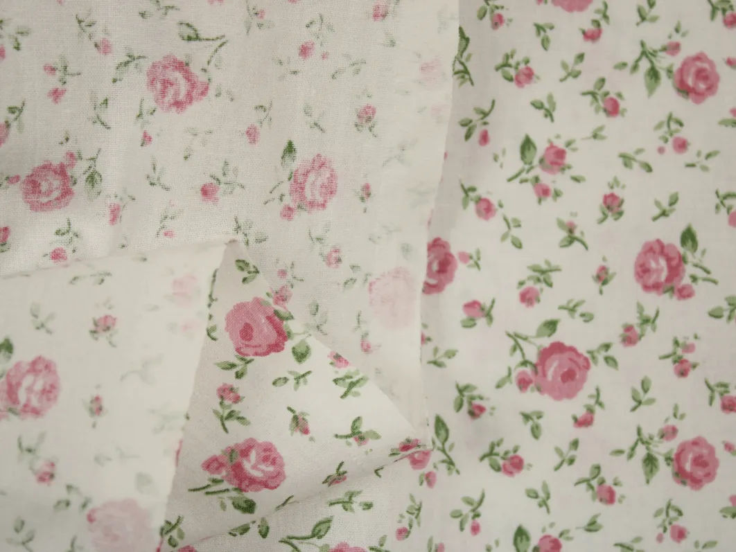 シンプルシックな小さなピンクのローズ柄ファブリック。