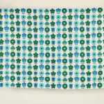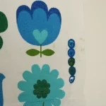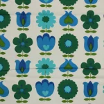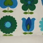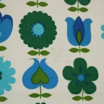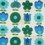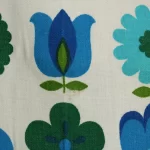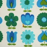 青と緑のレトロな花柄パターン。