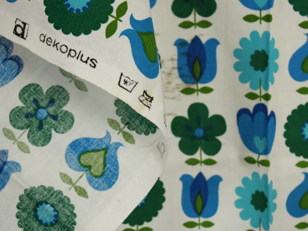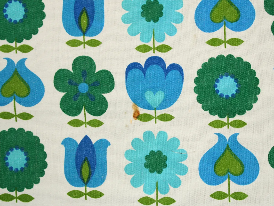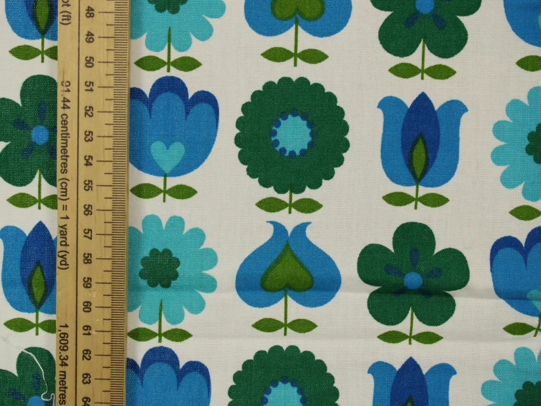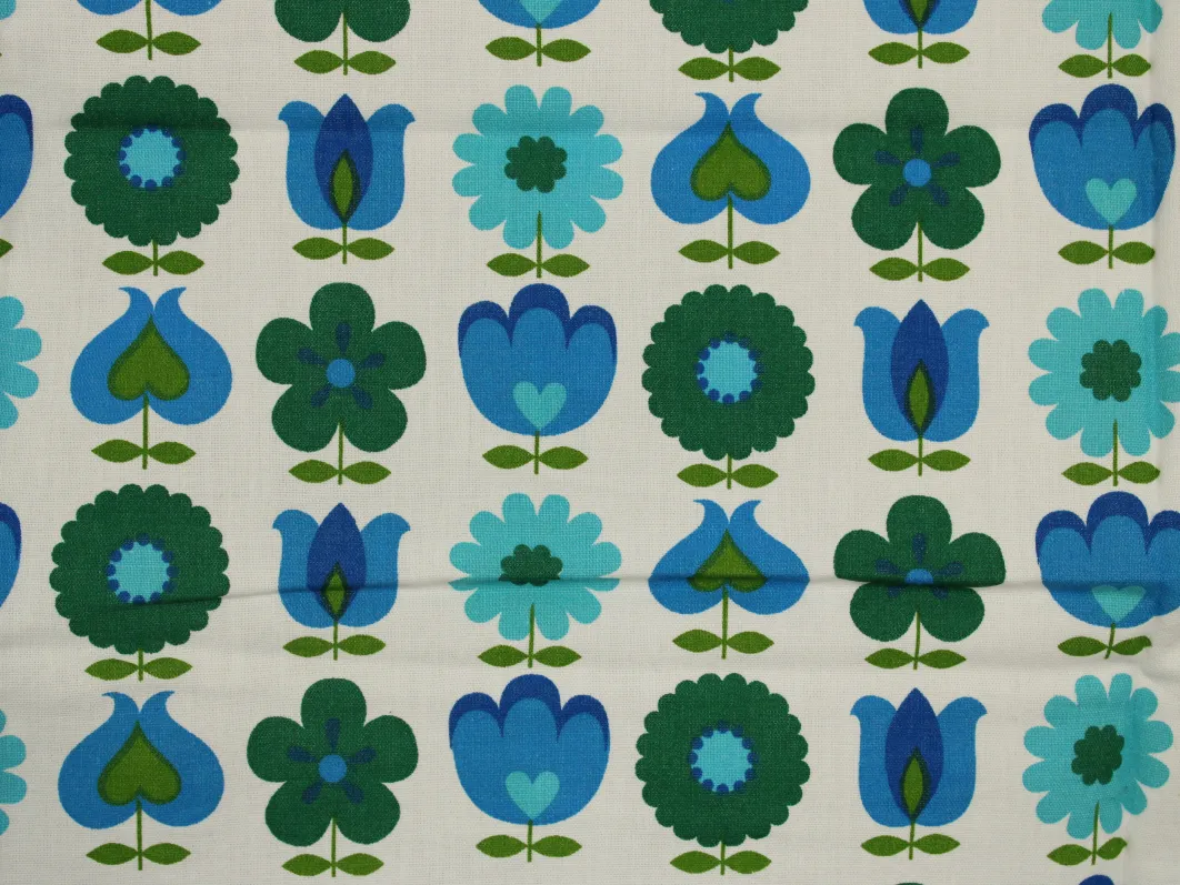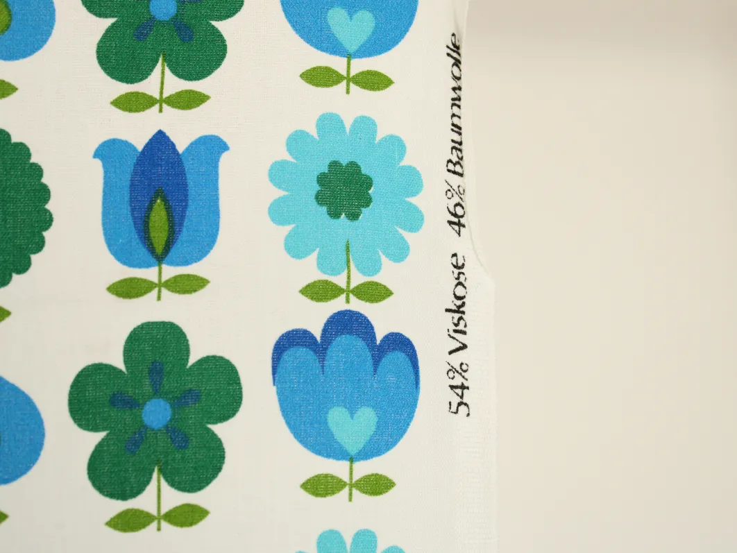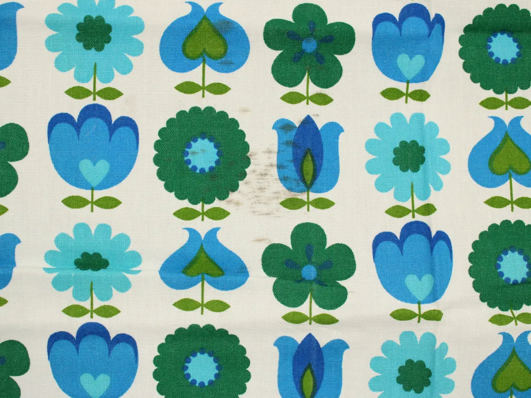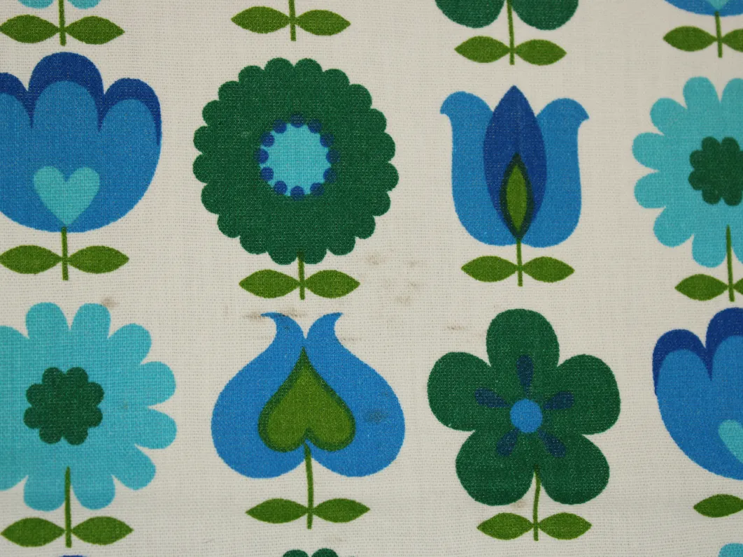 難あり 110*65 レトロ 花のパターン ブルー グリーン dekoplus