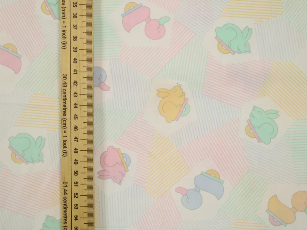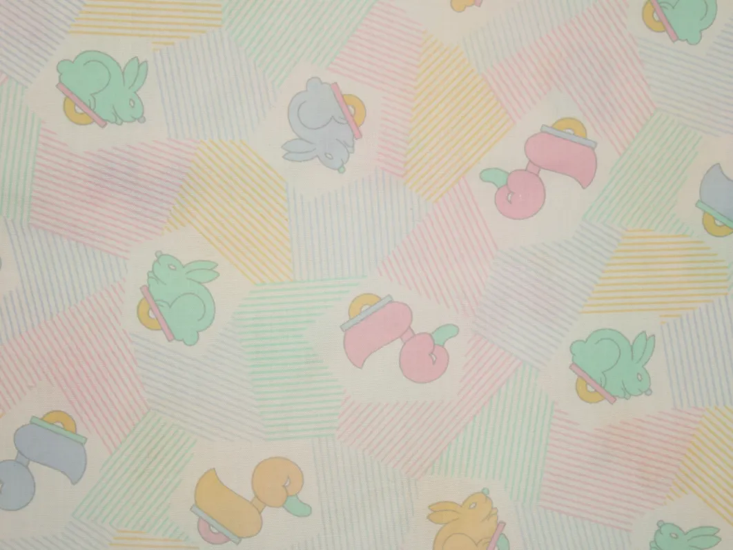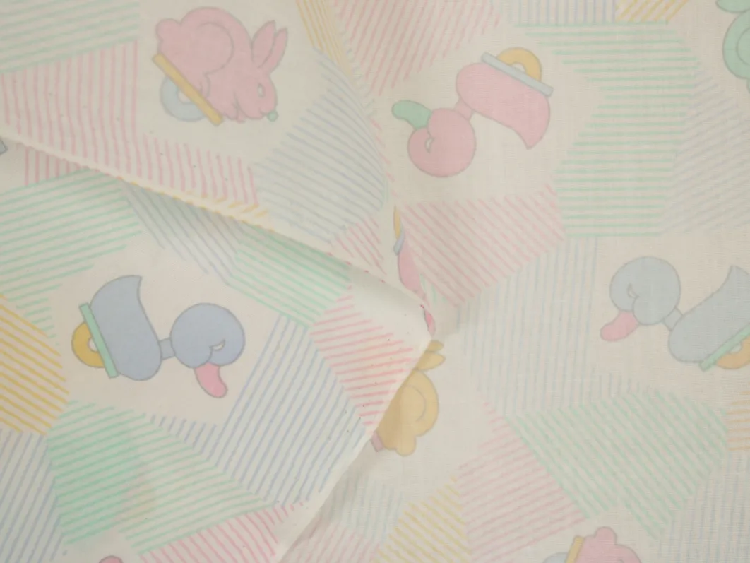 アヒルとウサギのおもちゃが描かれたベビー柄。