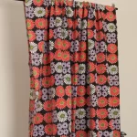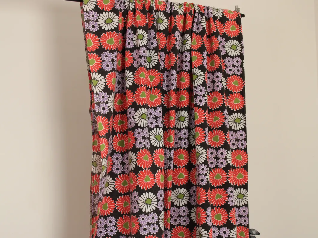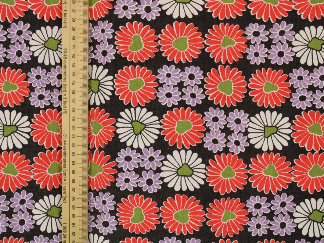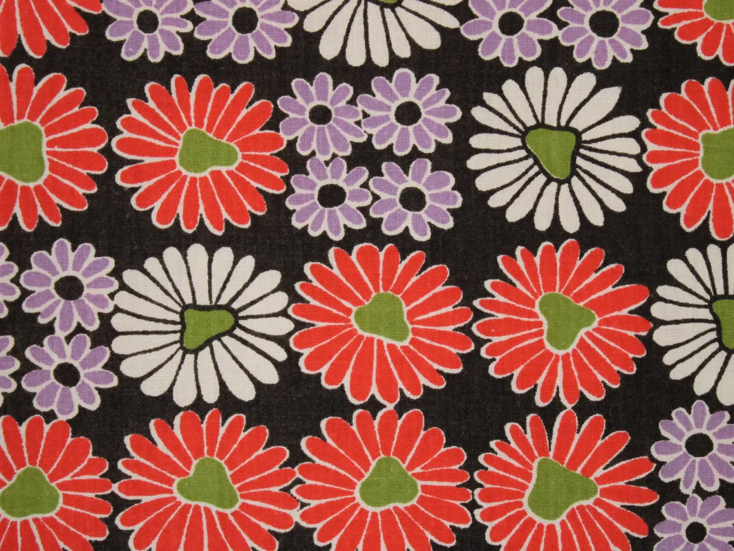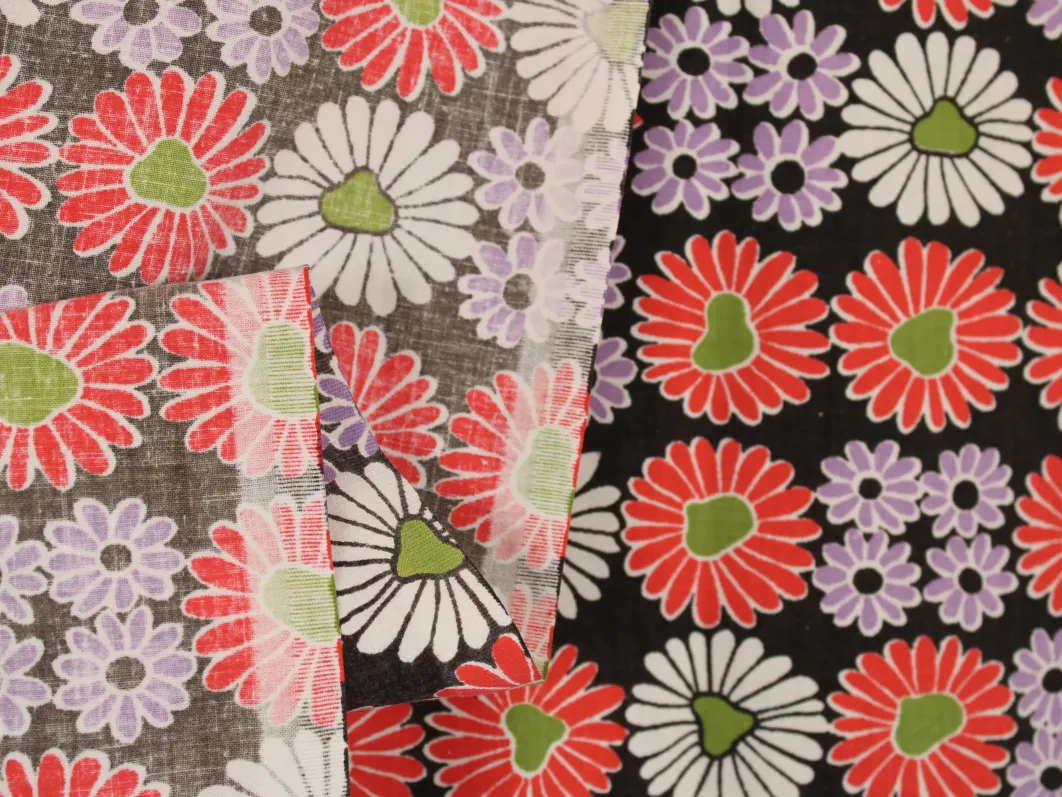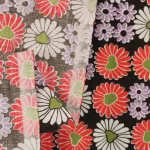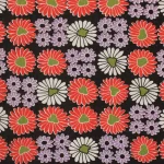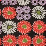 濃い紫地に赤と白の花が並んだ、オリエンタルな雰囲気のあるデザイン。